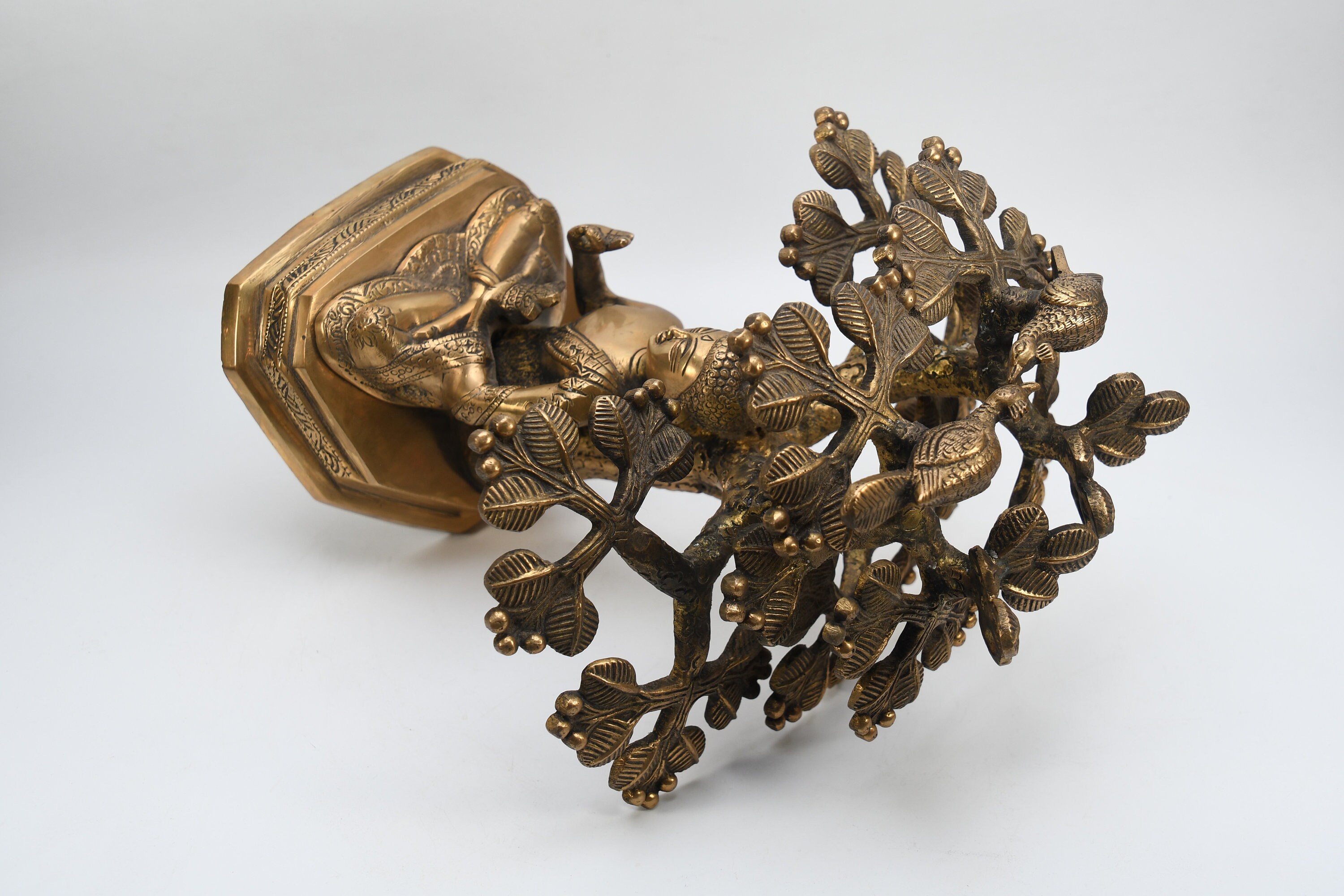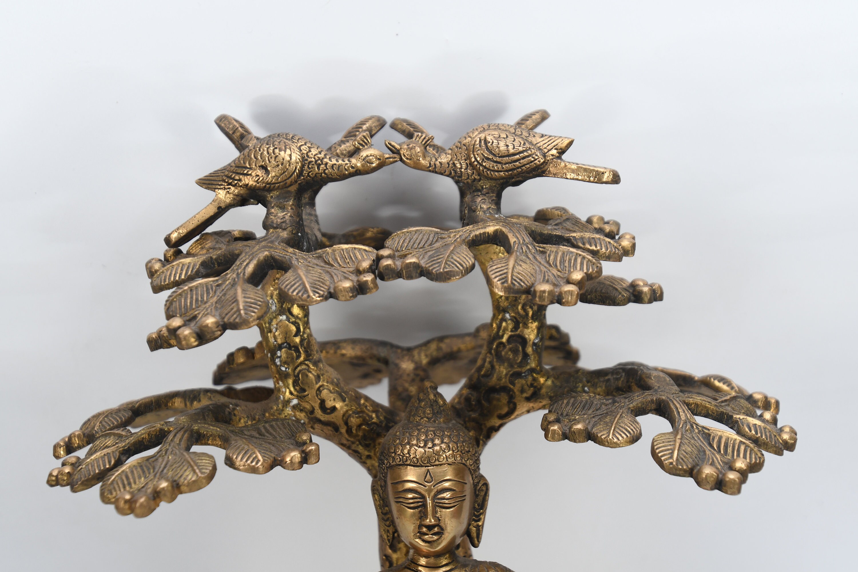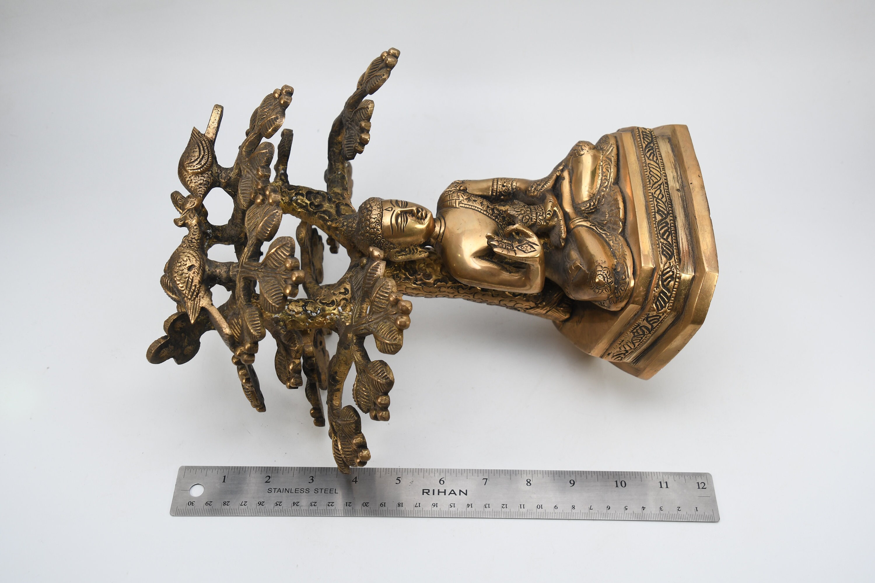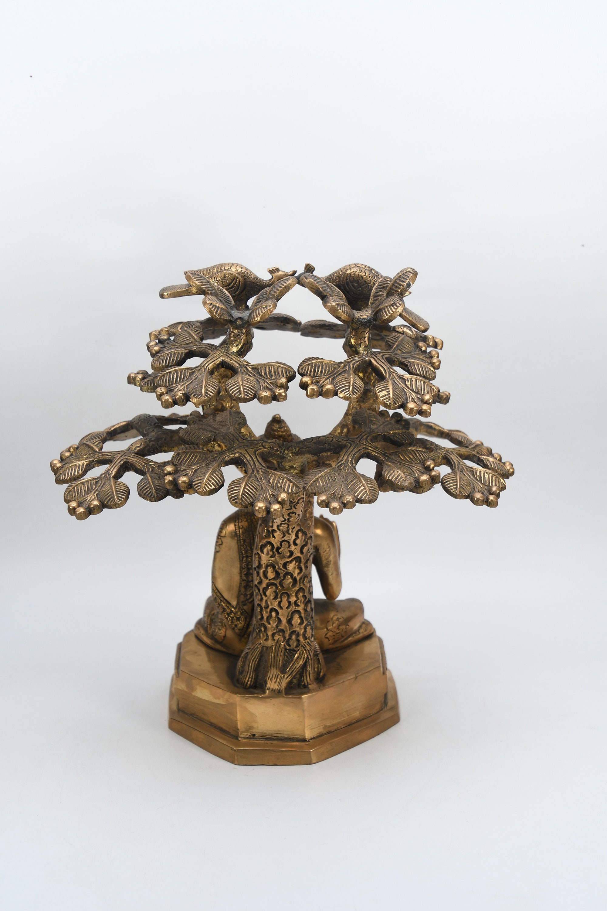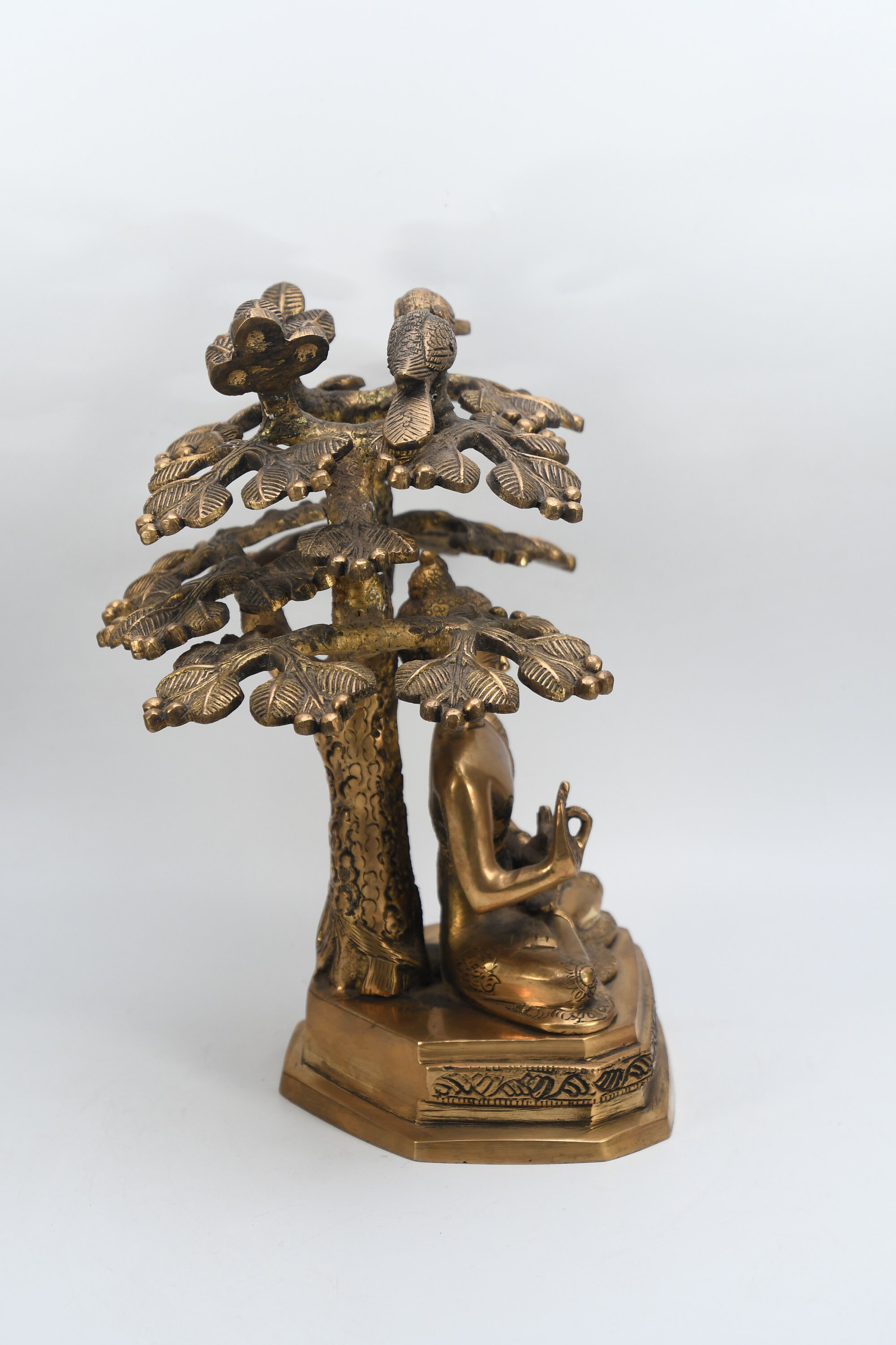 Meditating Buddha Statue under Bodhi Tree, Handmade Tibetan Sculpture