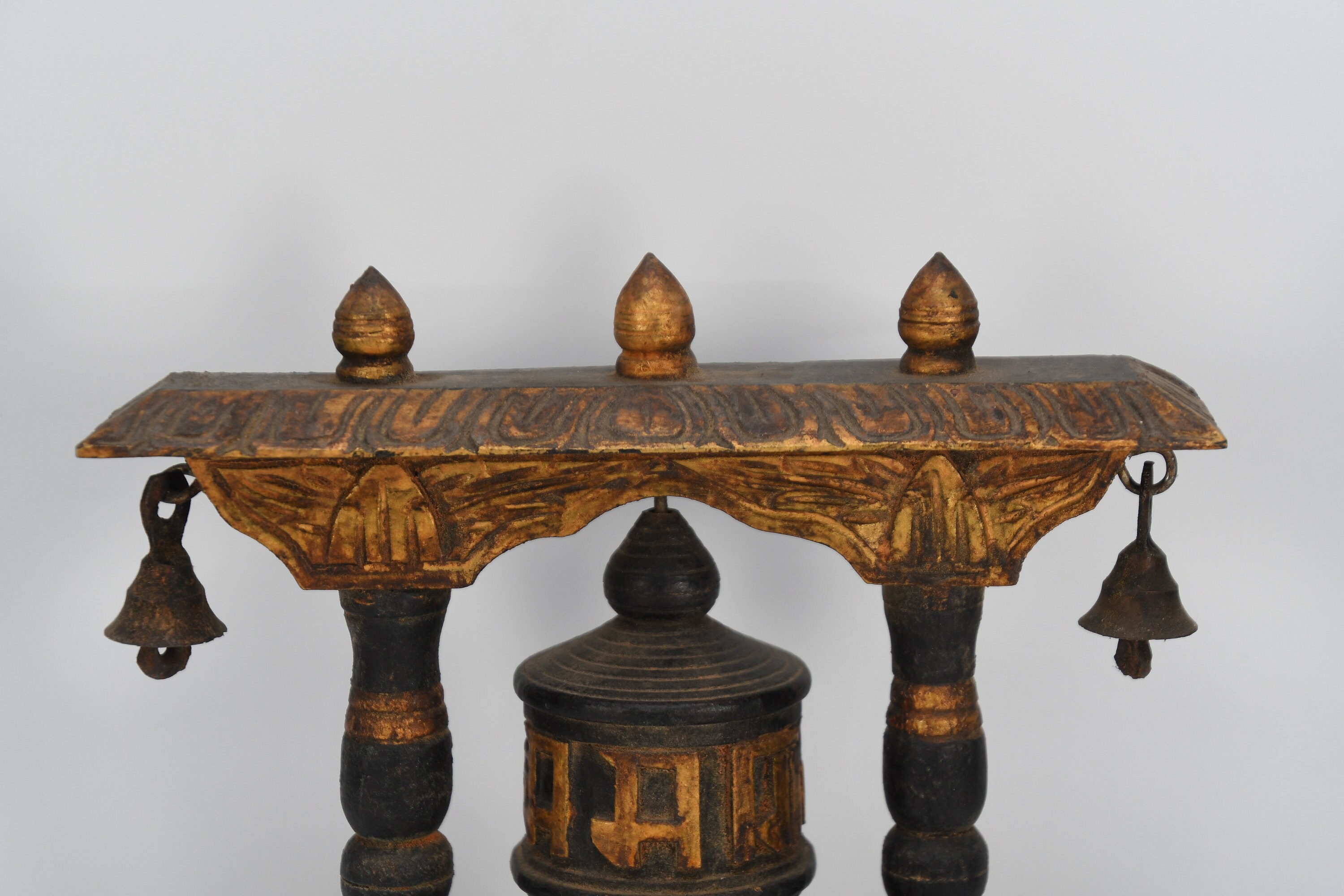 Prayer wheels are an exclusively Tibetan Buddhist praying instrument and usually bears the mantra "OM MANI PADME HUM"