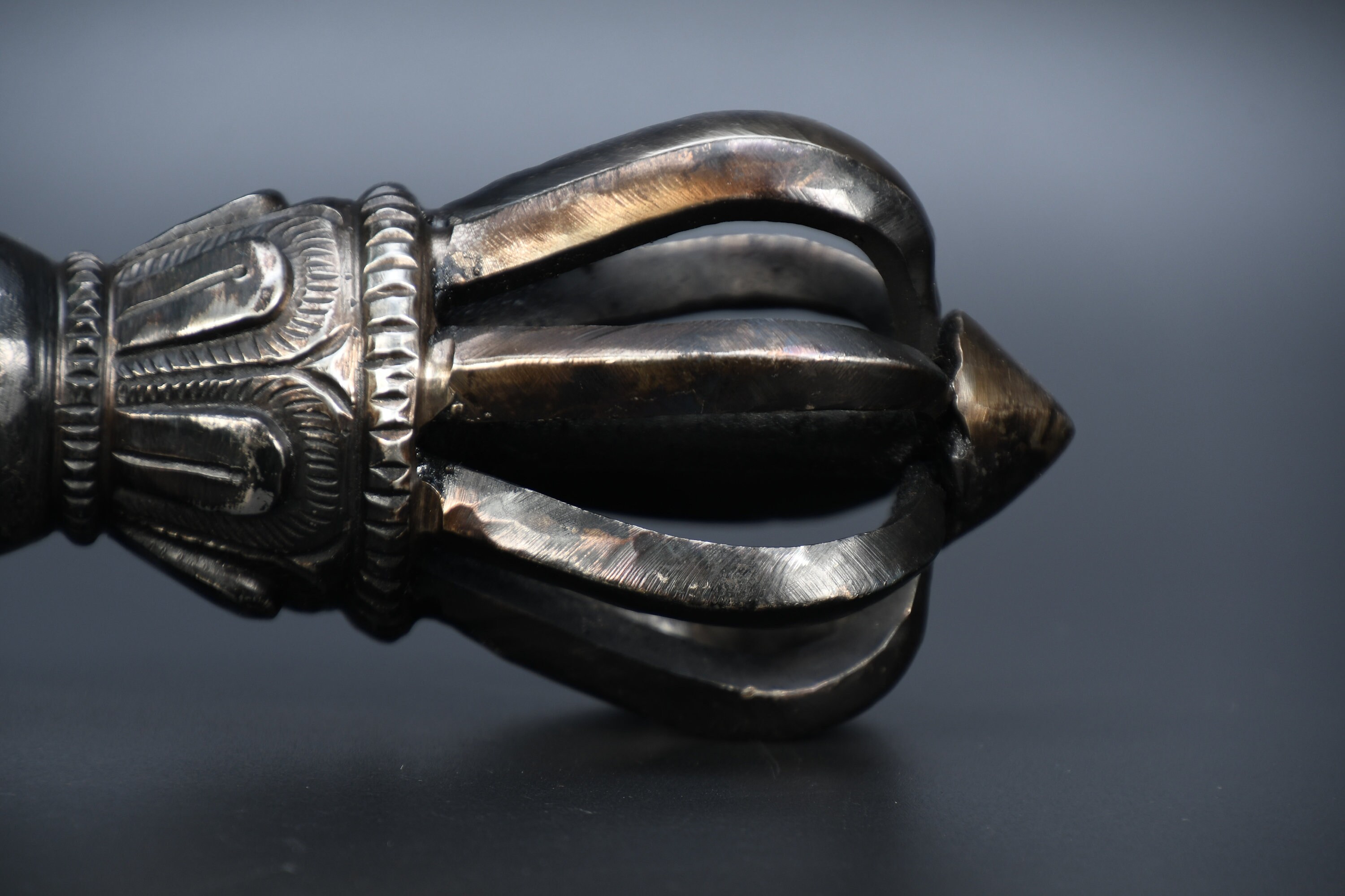 Vajra is a Sanskrit word meaning both thunderbolt and diamond. It is a weapon that is used as a ritual object to symbolize both the properties of a diamond (indestructibility) and a thunderbolt (irresistible force). The five-pronged vajra is the most commonly seen vajra.