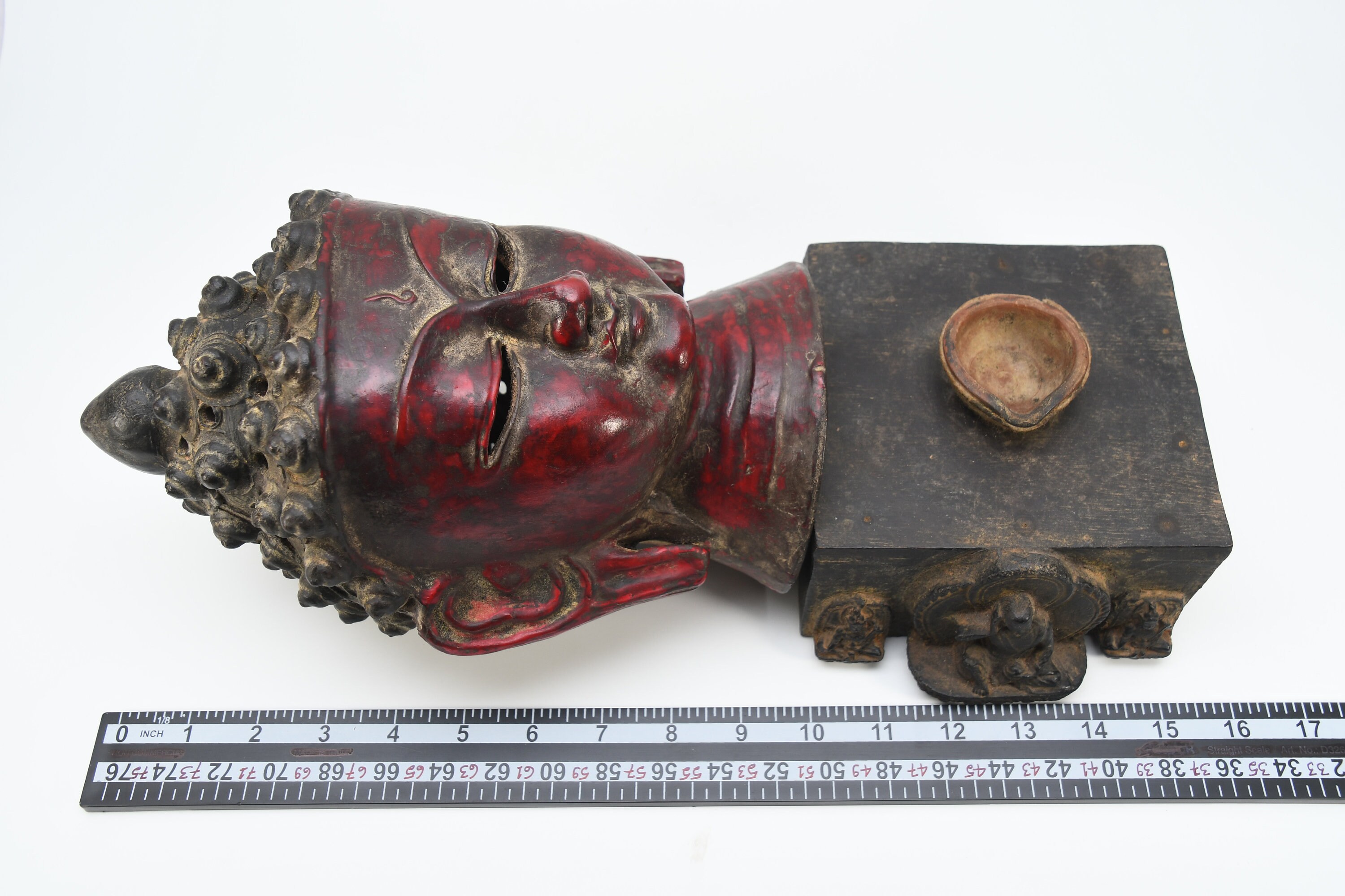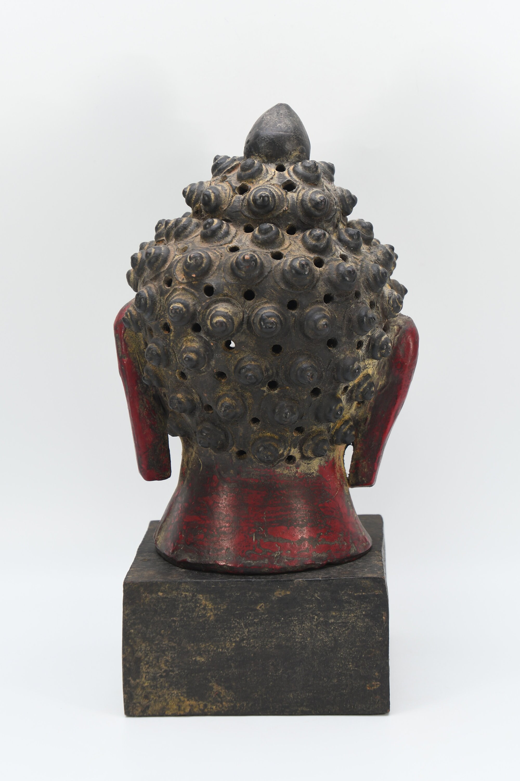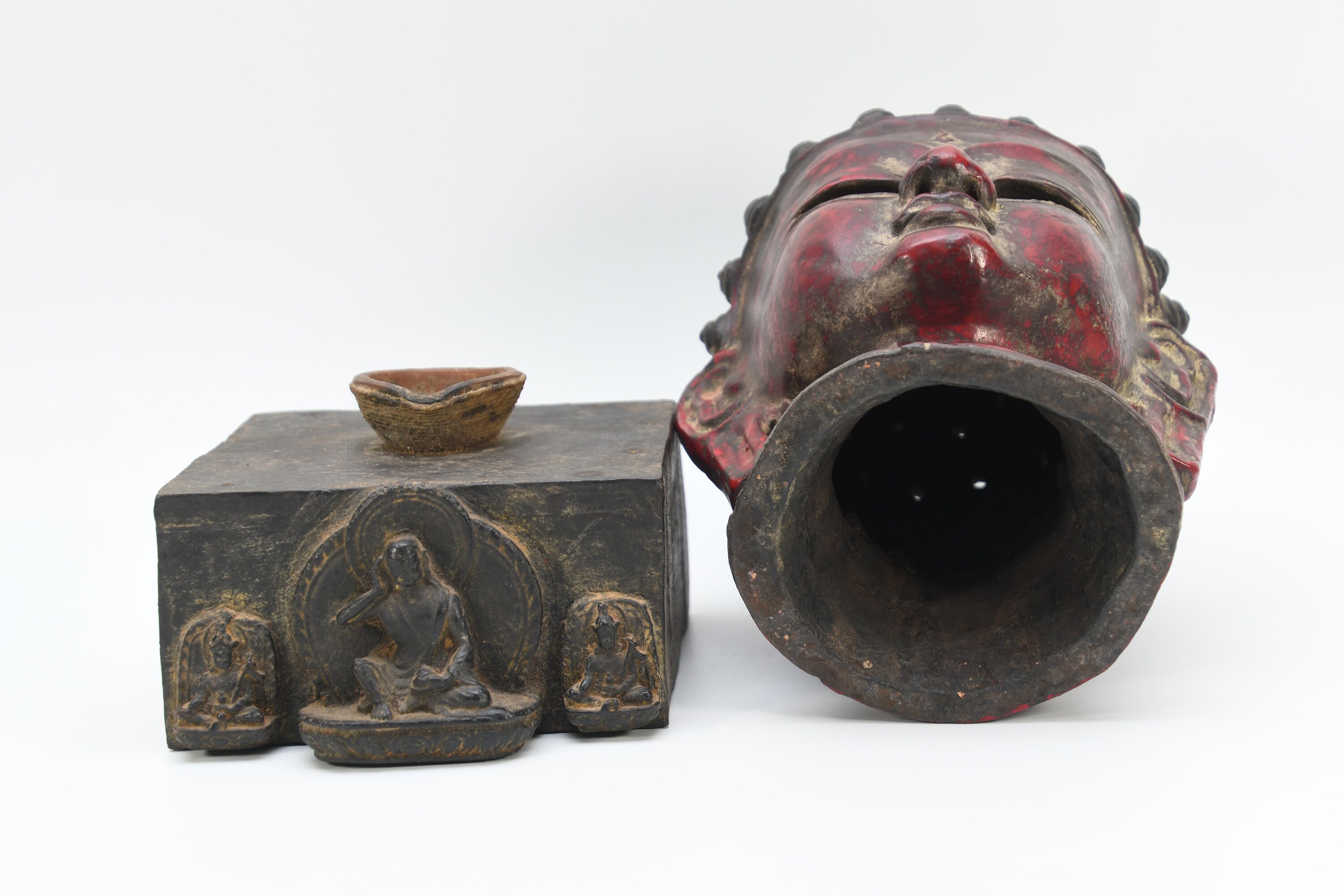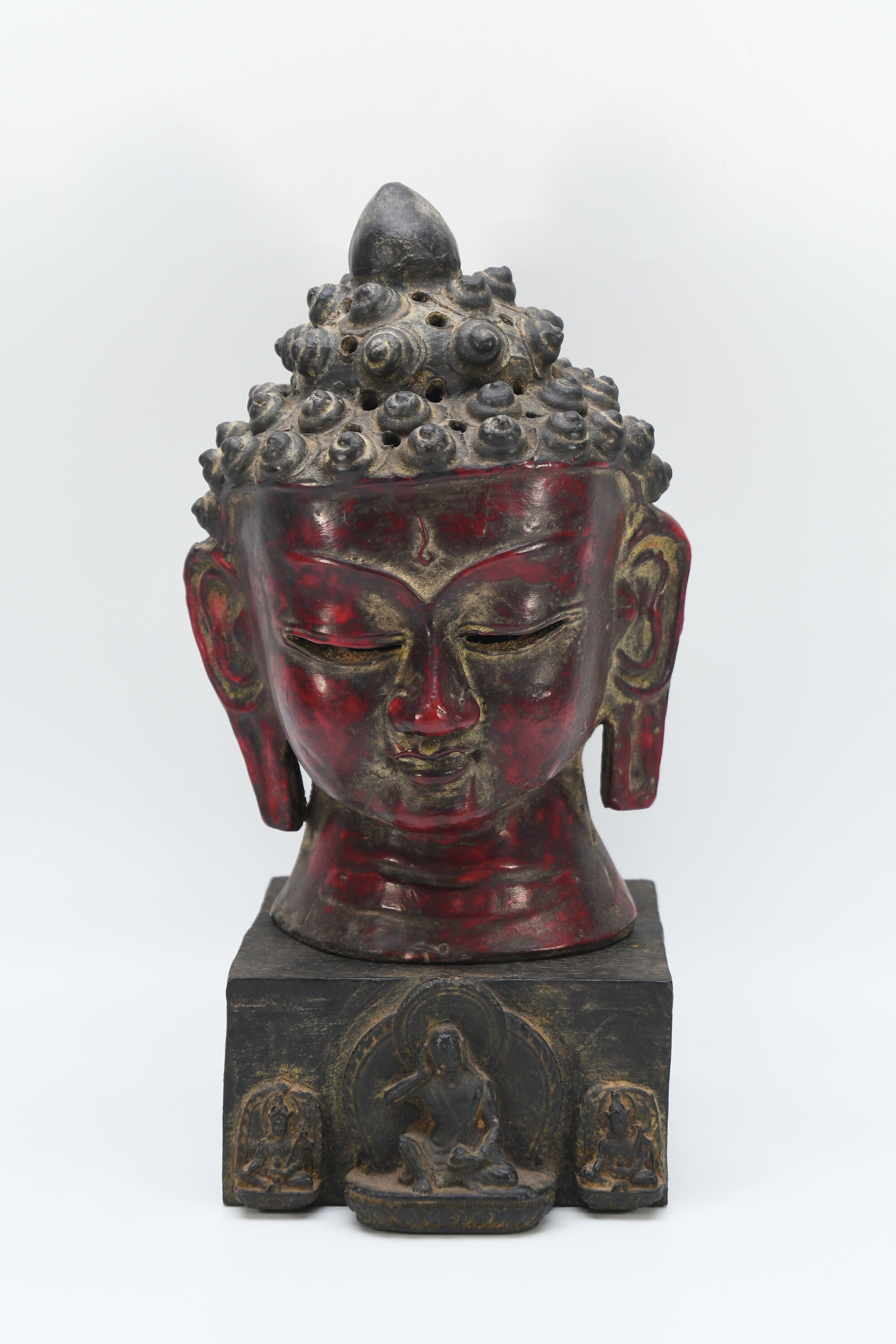 Handcrafted Clay Buddha Head Incense Burner with Wooden Base