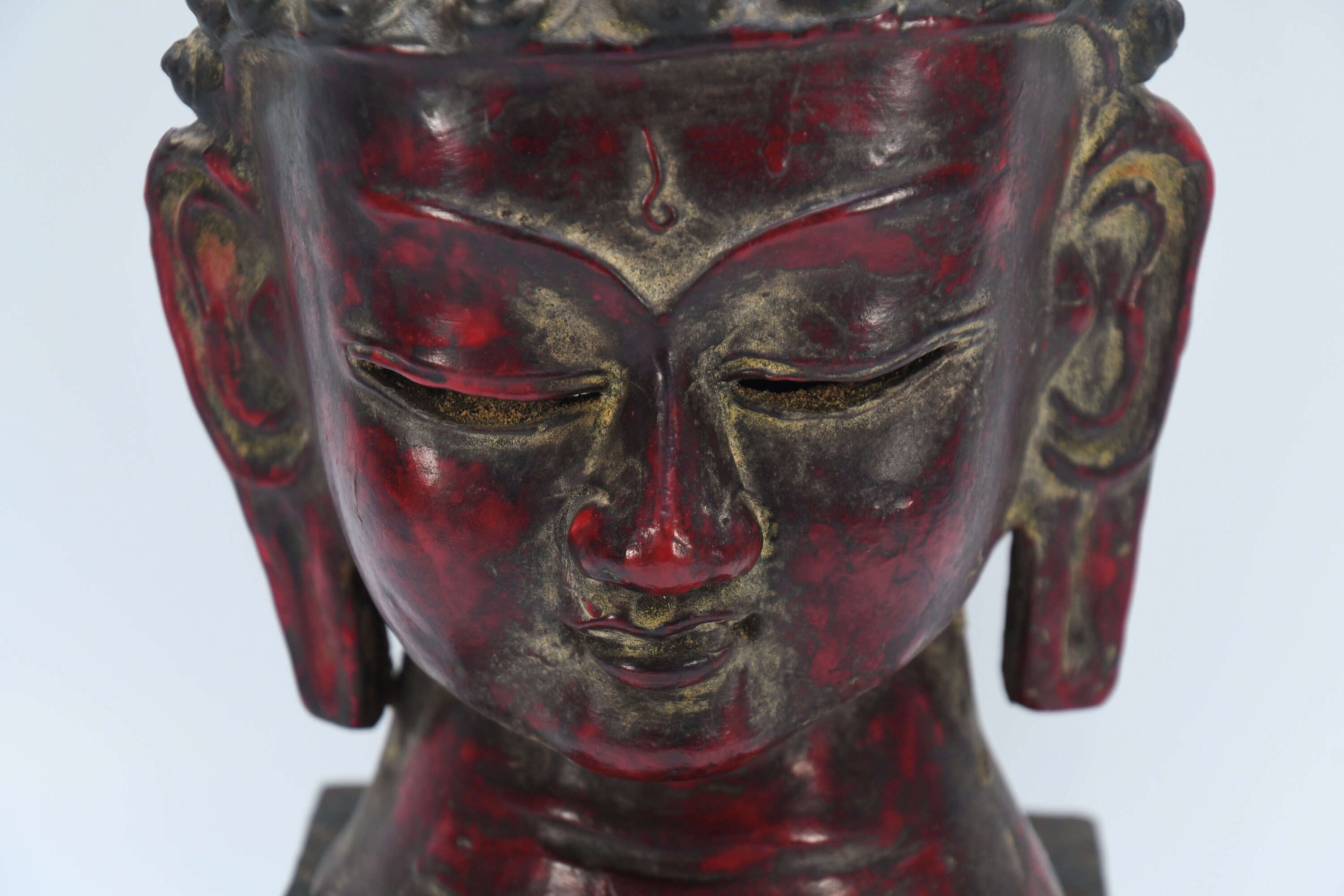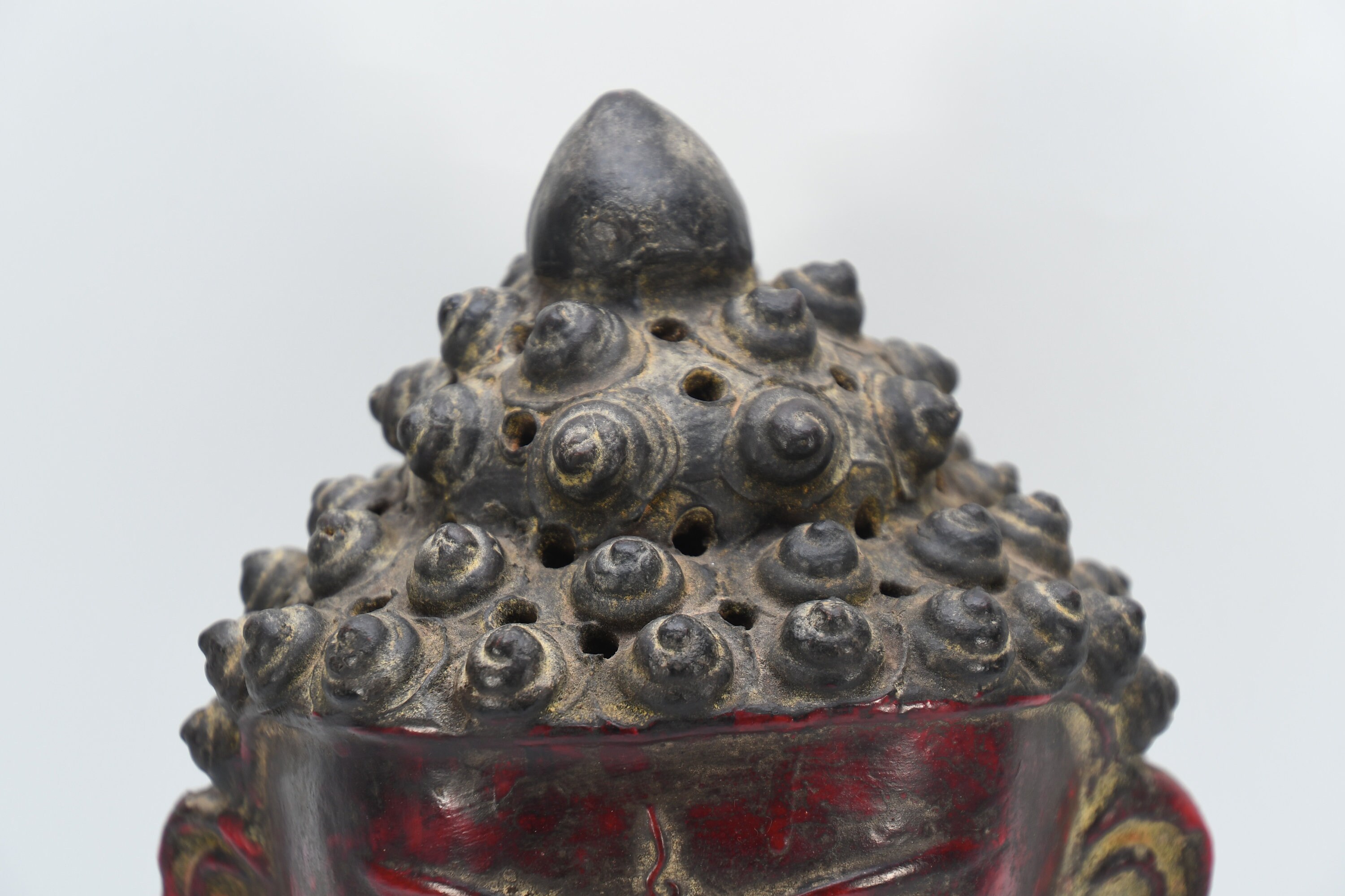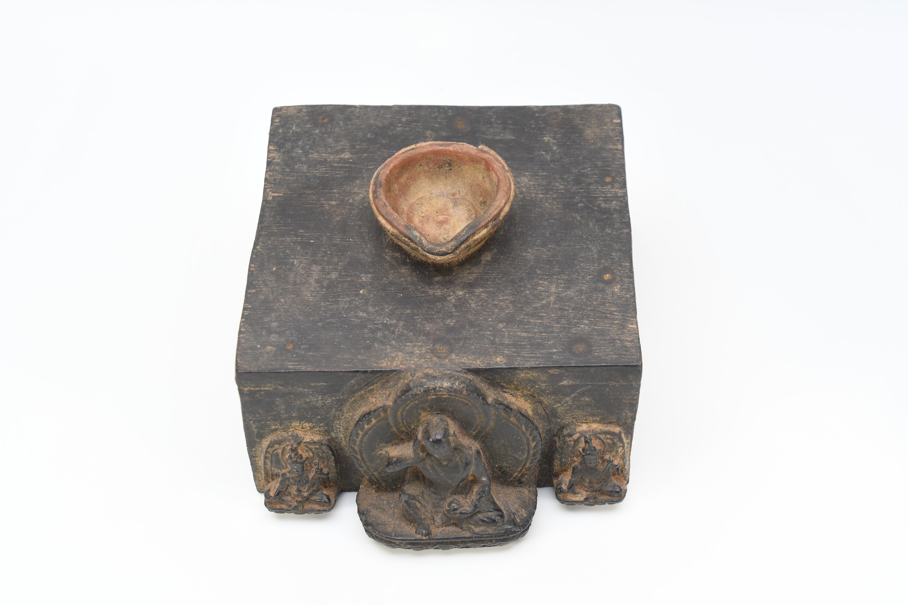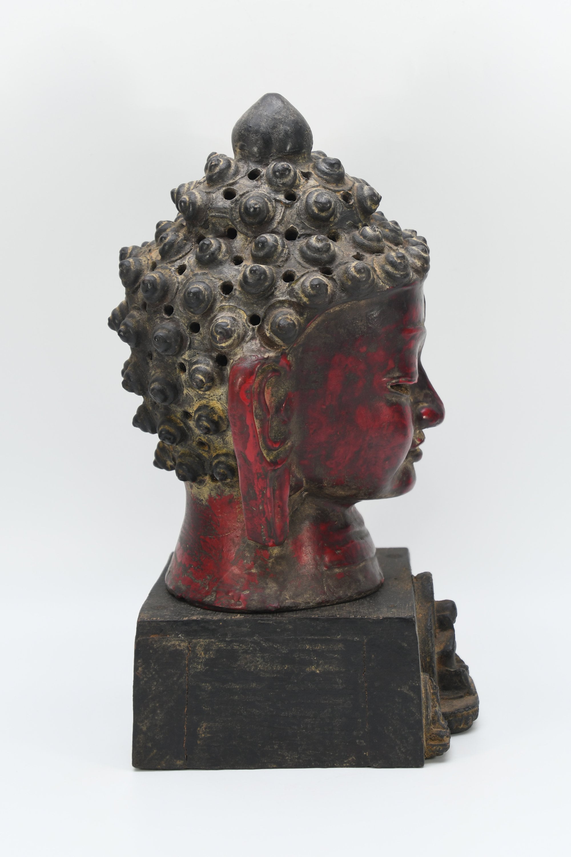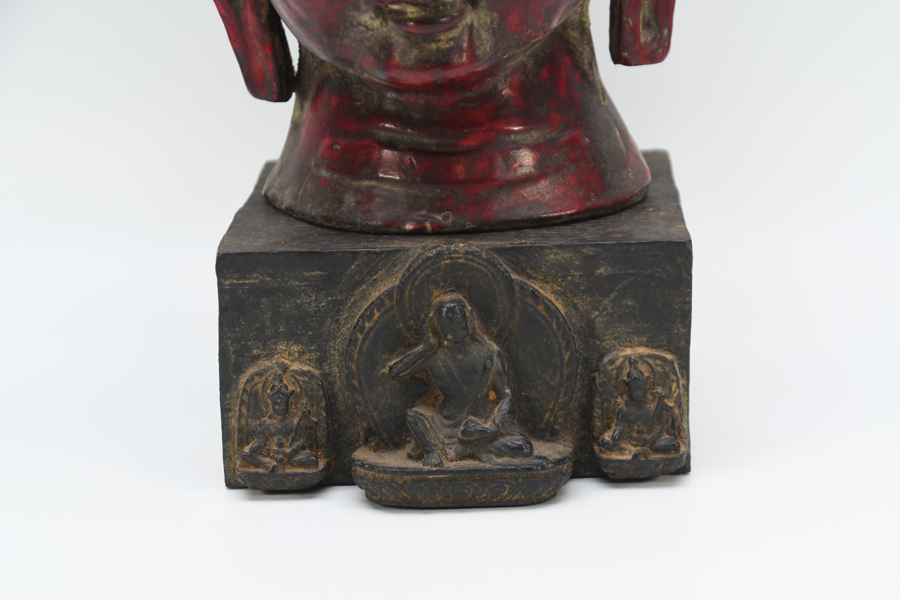 Handcrafted Clay Buddha Head Incense Burner with Wooden Base