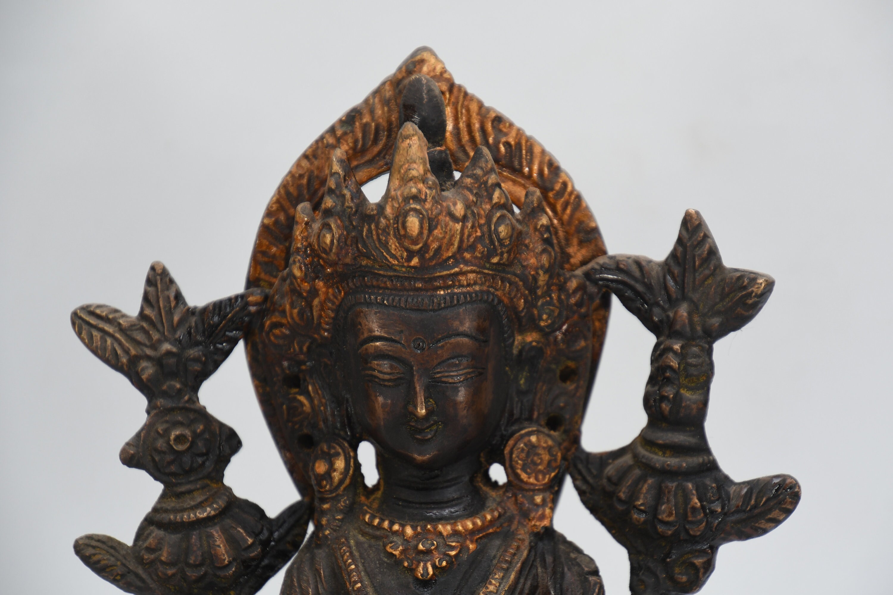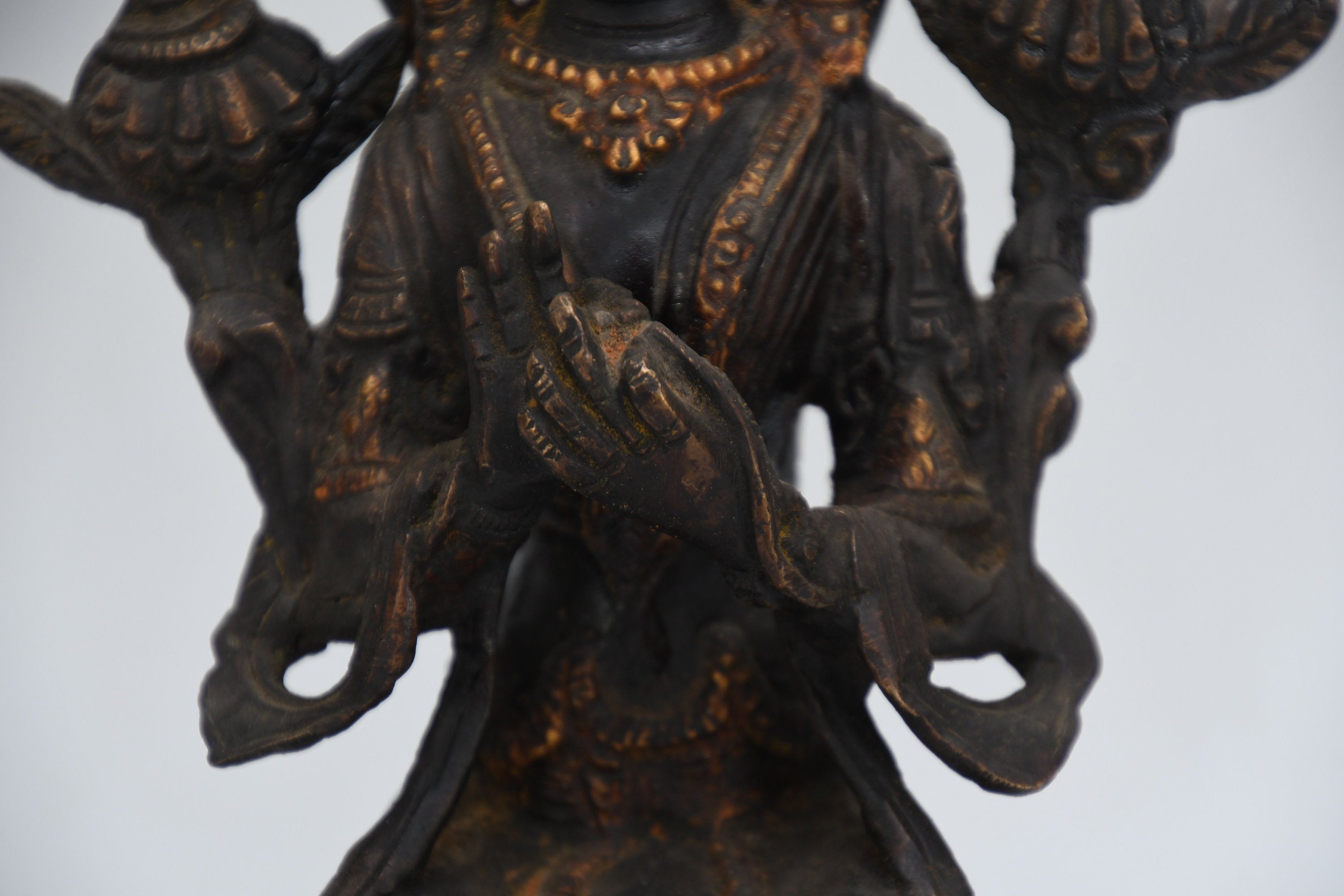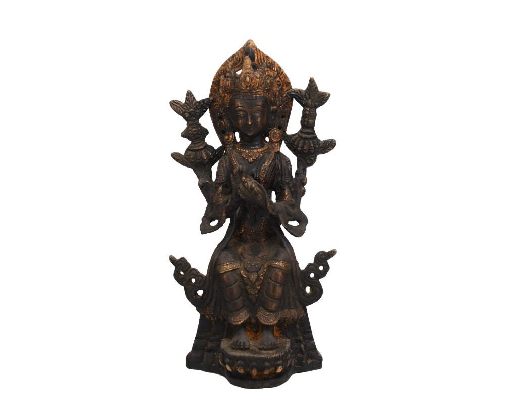 Hand Carved Maitreya Buddha Statue, Antique Brass Tibetan Sculpture