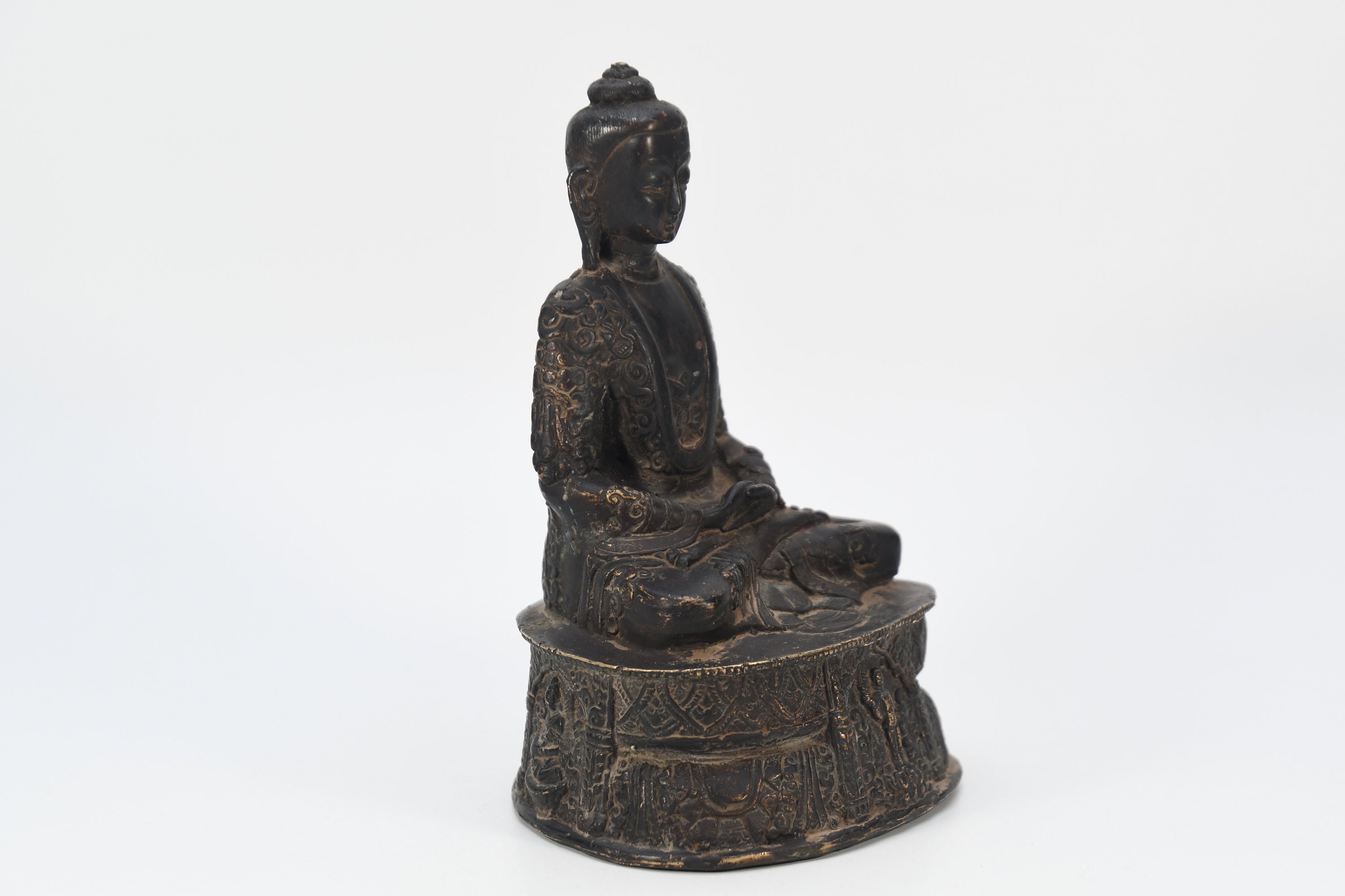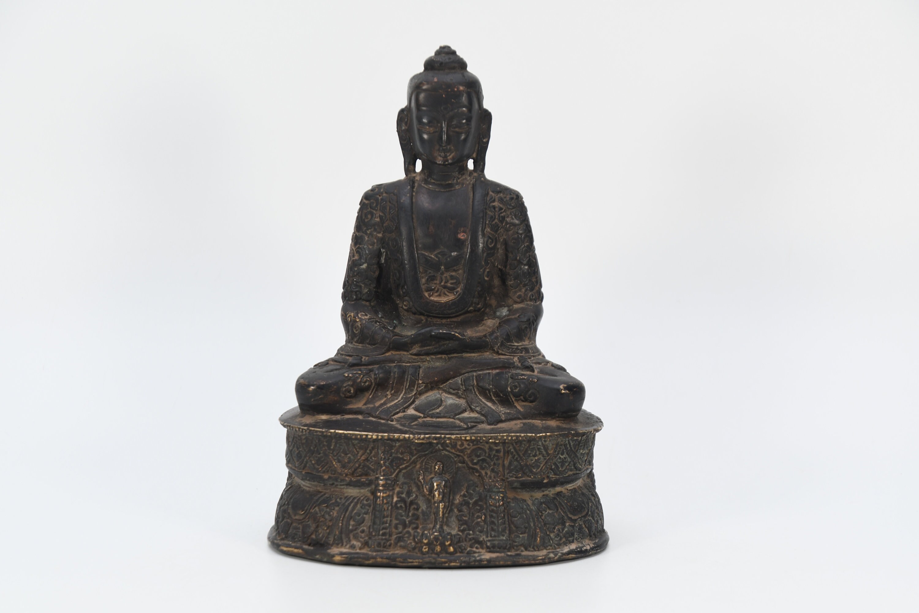Shakyamuni, 'Sage of the Shakyas',founder of Buddhism, is often referred to simply as the Buddha or the Historical Buddha, although many Buddhists believe that more than one Buddha, or 'enlightened one', has existed in this world. Born in Lumbini(in modern Nepal) in the sixth century BC as Prince Siddhartha Gautama of the Shakya clan, he rejected his royal lifestyle in order to pursue a true understanding of the nature of life. He followed several spiritual leaders, some of shom practiced harsh austerities including starvation, but was unsatisfied by their teachings. After years of searching, he achieved spiritual enlightenment, nirvana, after meditating intensely under a papal tree. From then on, he became known as Shakyamuni or the Buddha.