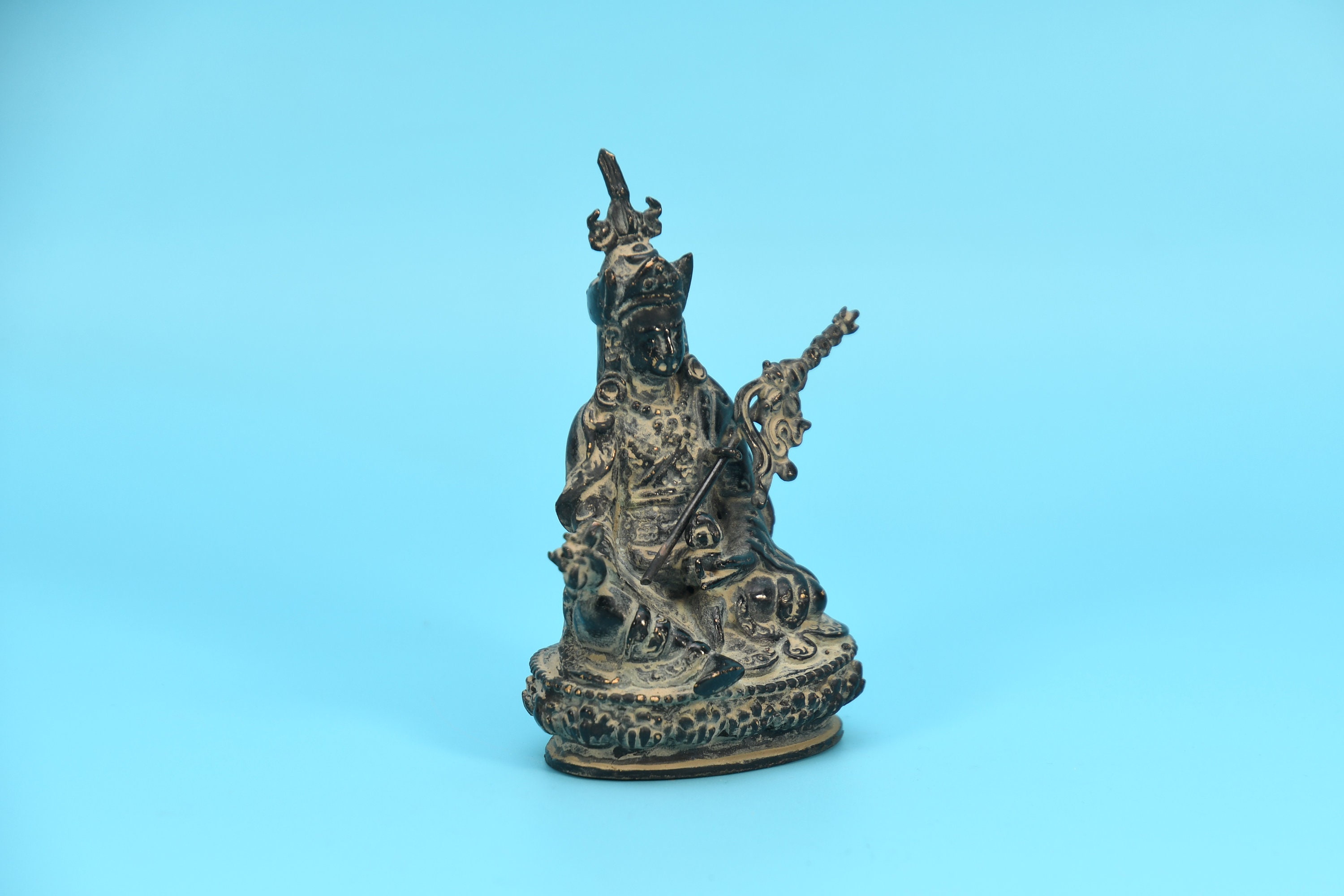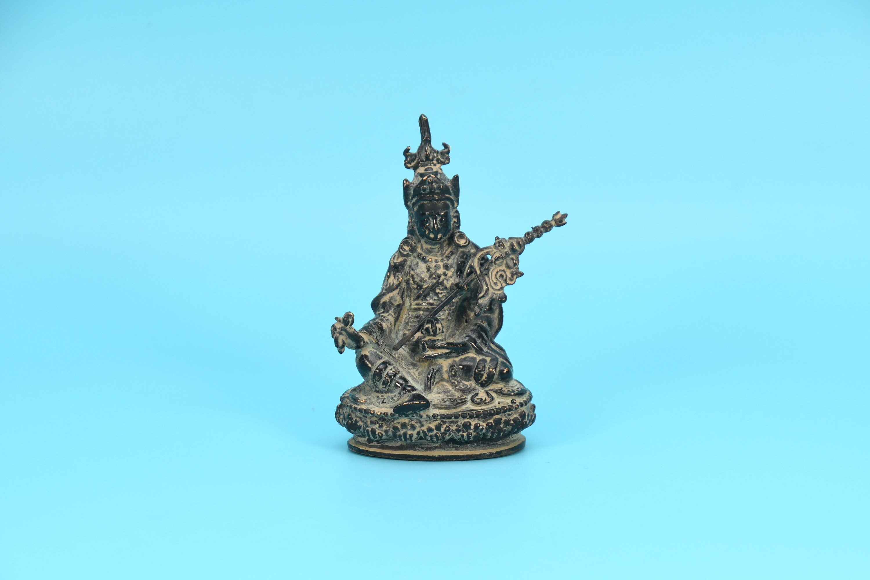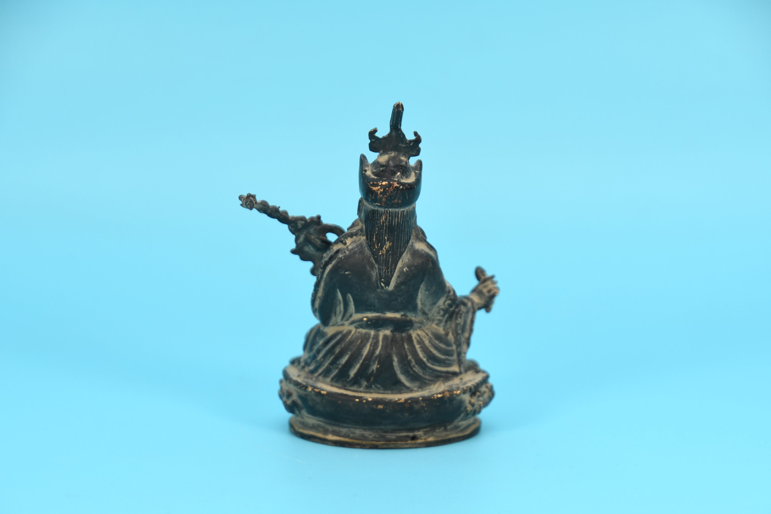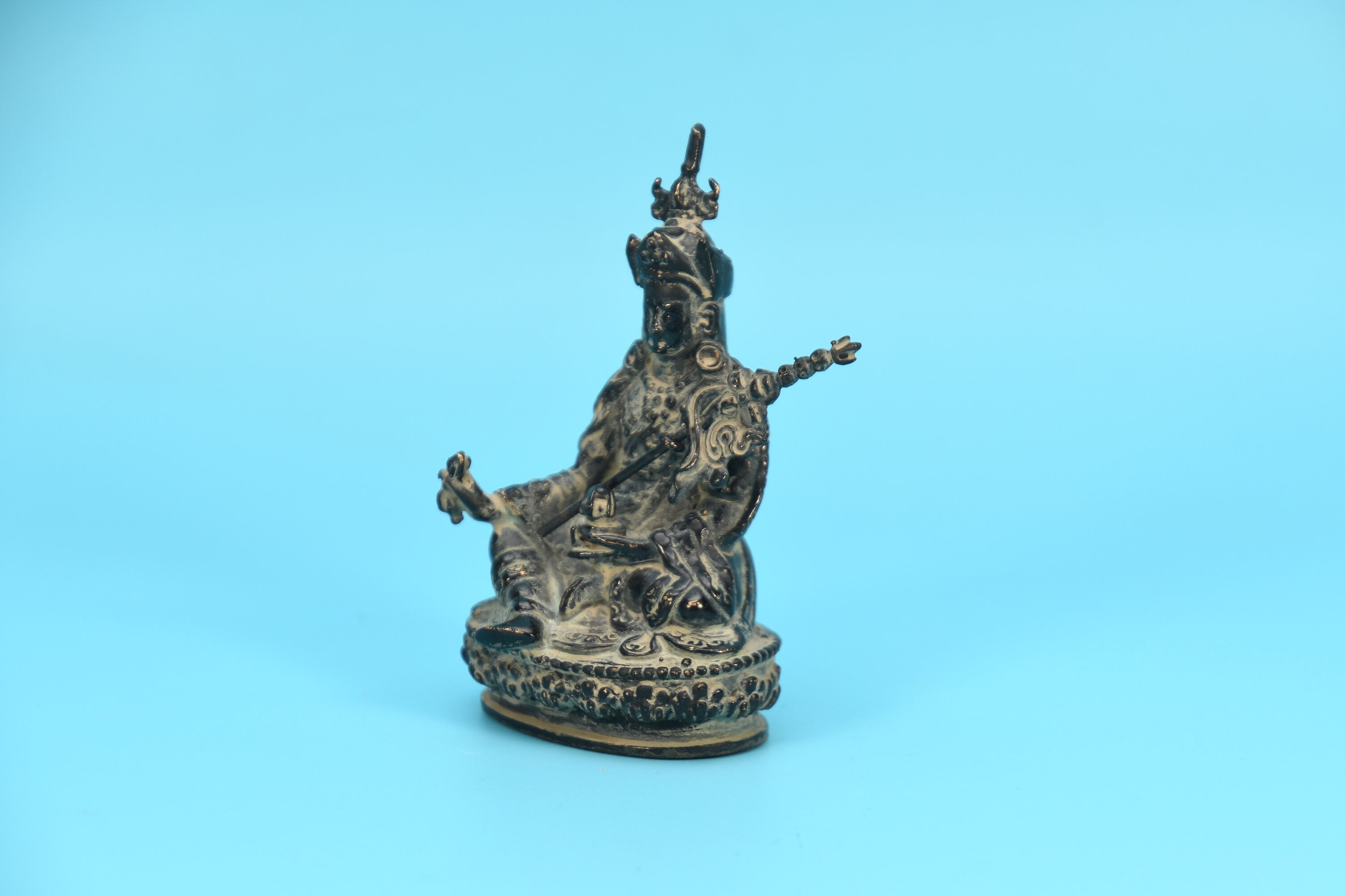 Tibetan Guru Rinpoche Statue, Hand Carved Brass Padmasambhava Figurine