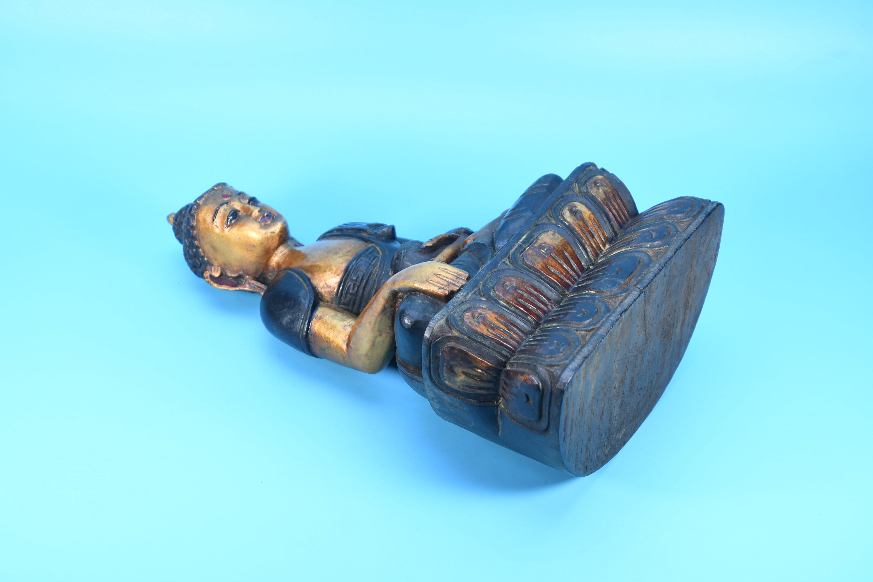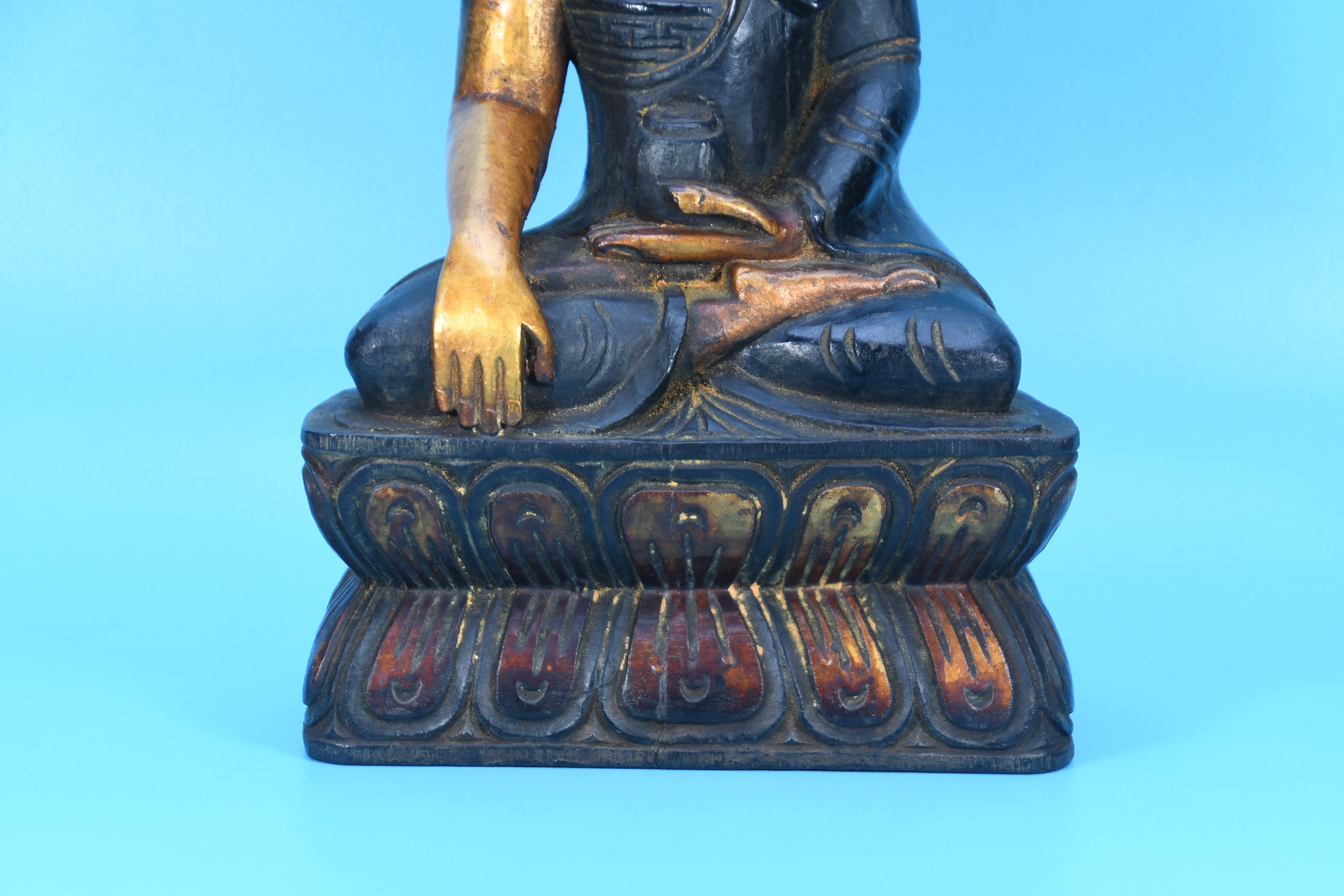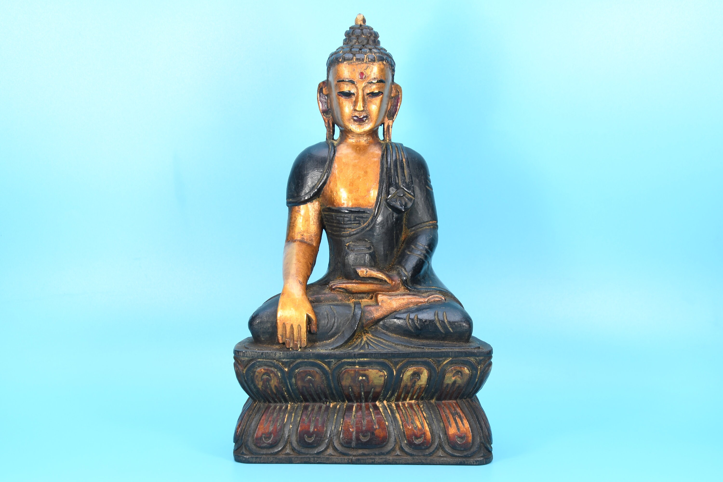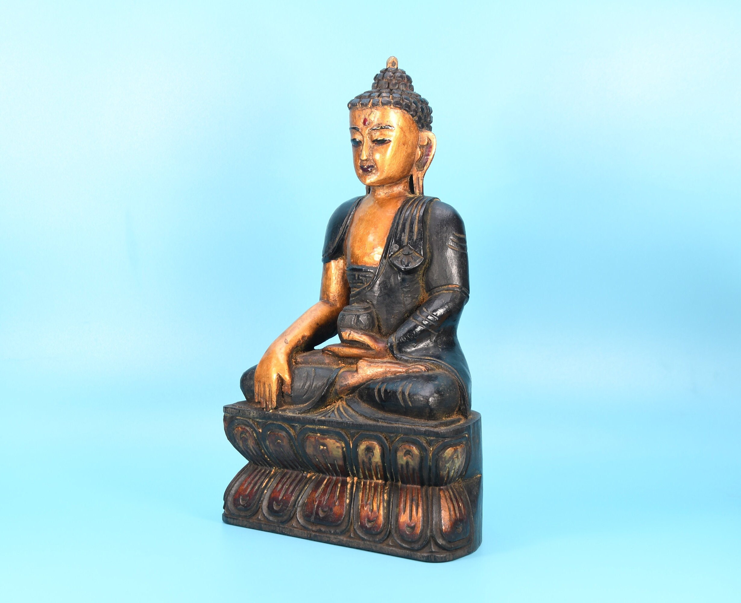 Hand Carved Wooden Buddha Statue, Shakyamuni Sculpture from Nepal