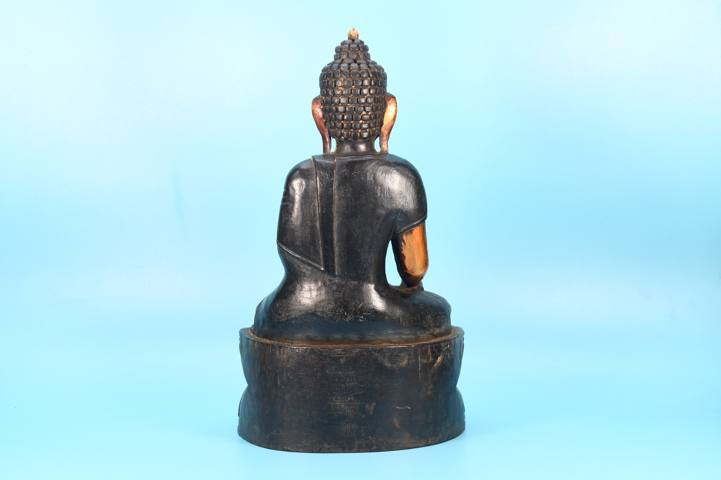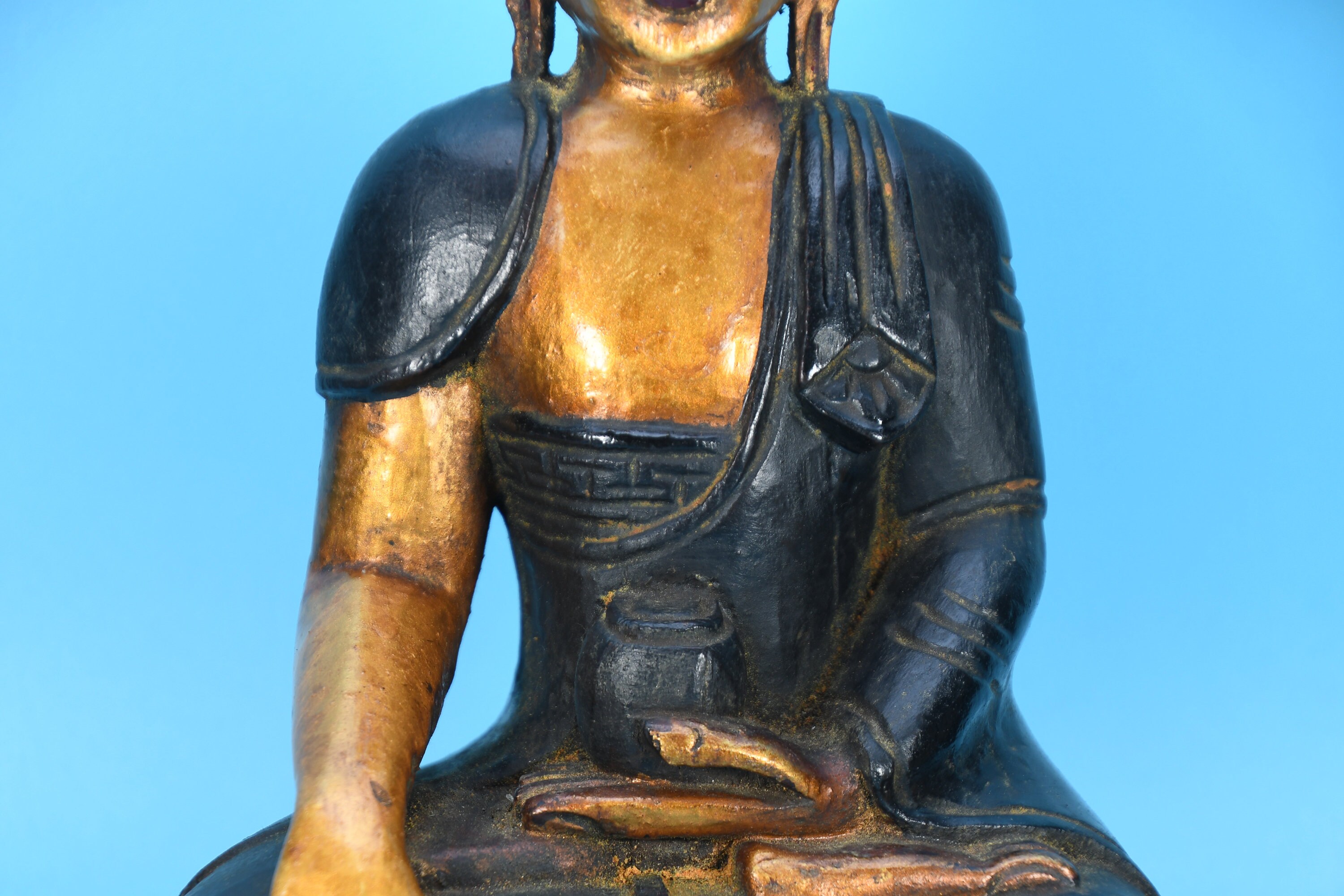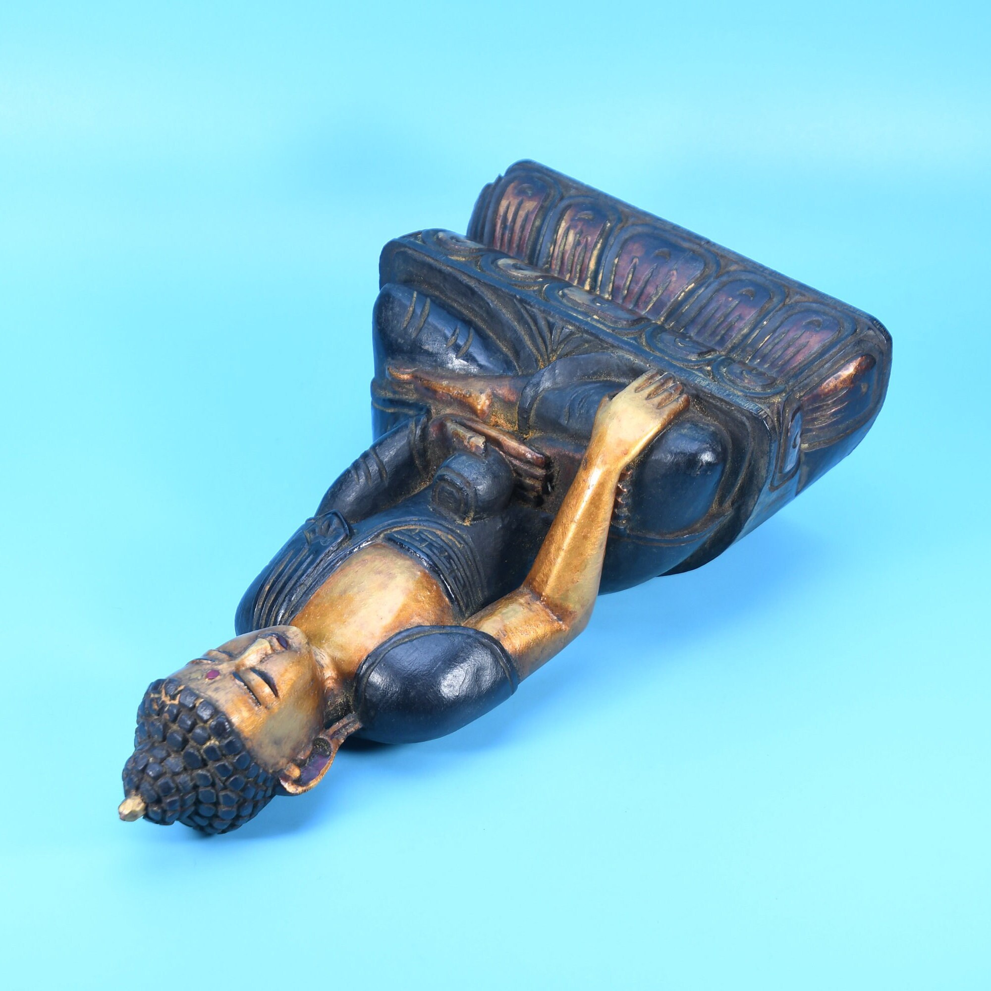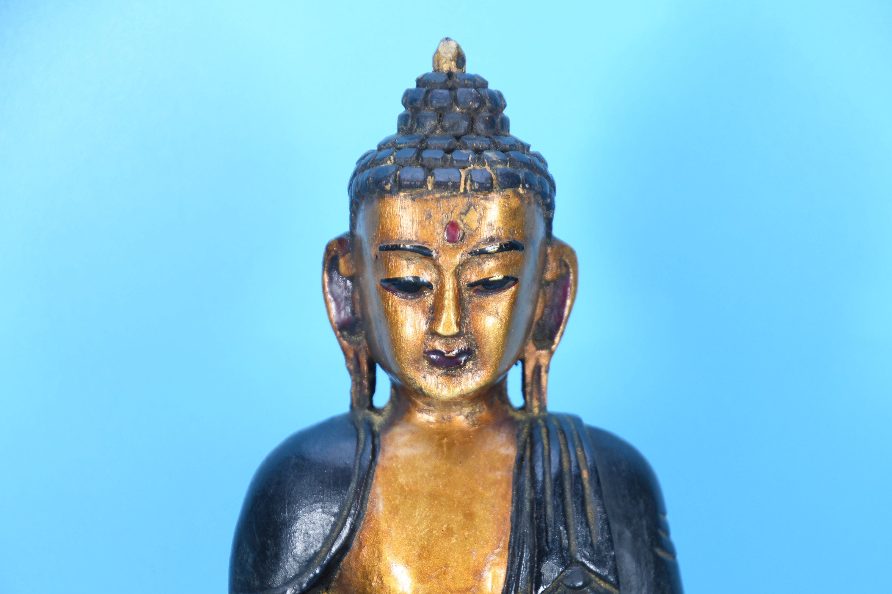Hand Carved Wooden Buddha Statue, Shakyamuni Sculpture from Nepal