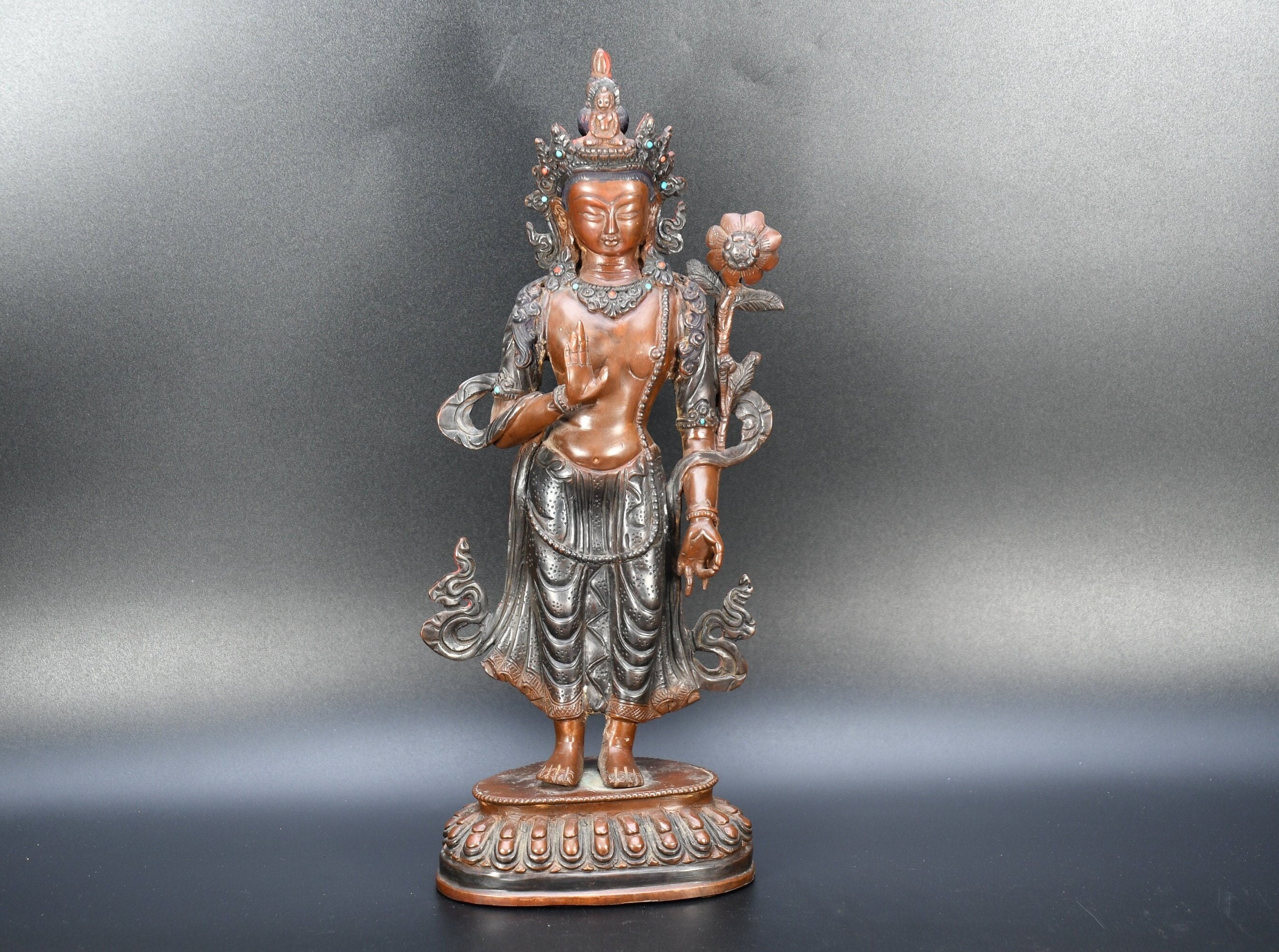 As you can see from the image, It is in good condition and was created by skilled craftsmen in traditional style with fine handcrafts. This is a great piece of valuable collection, a valuable personal alter or very good present. the handwork is very fine with incredible detailing. Don't miss out on this chance to get it.