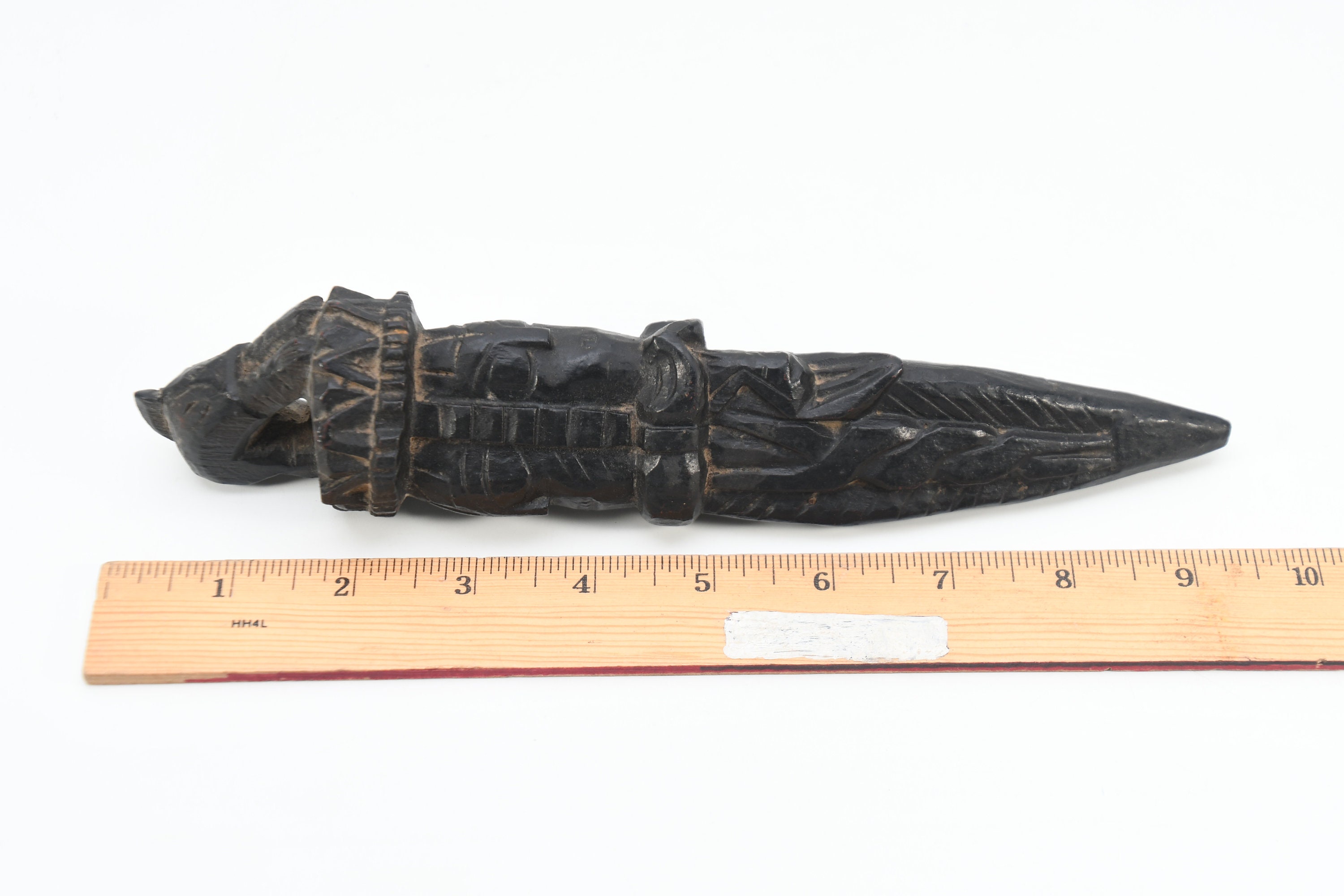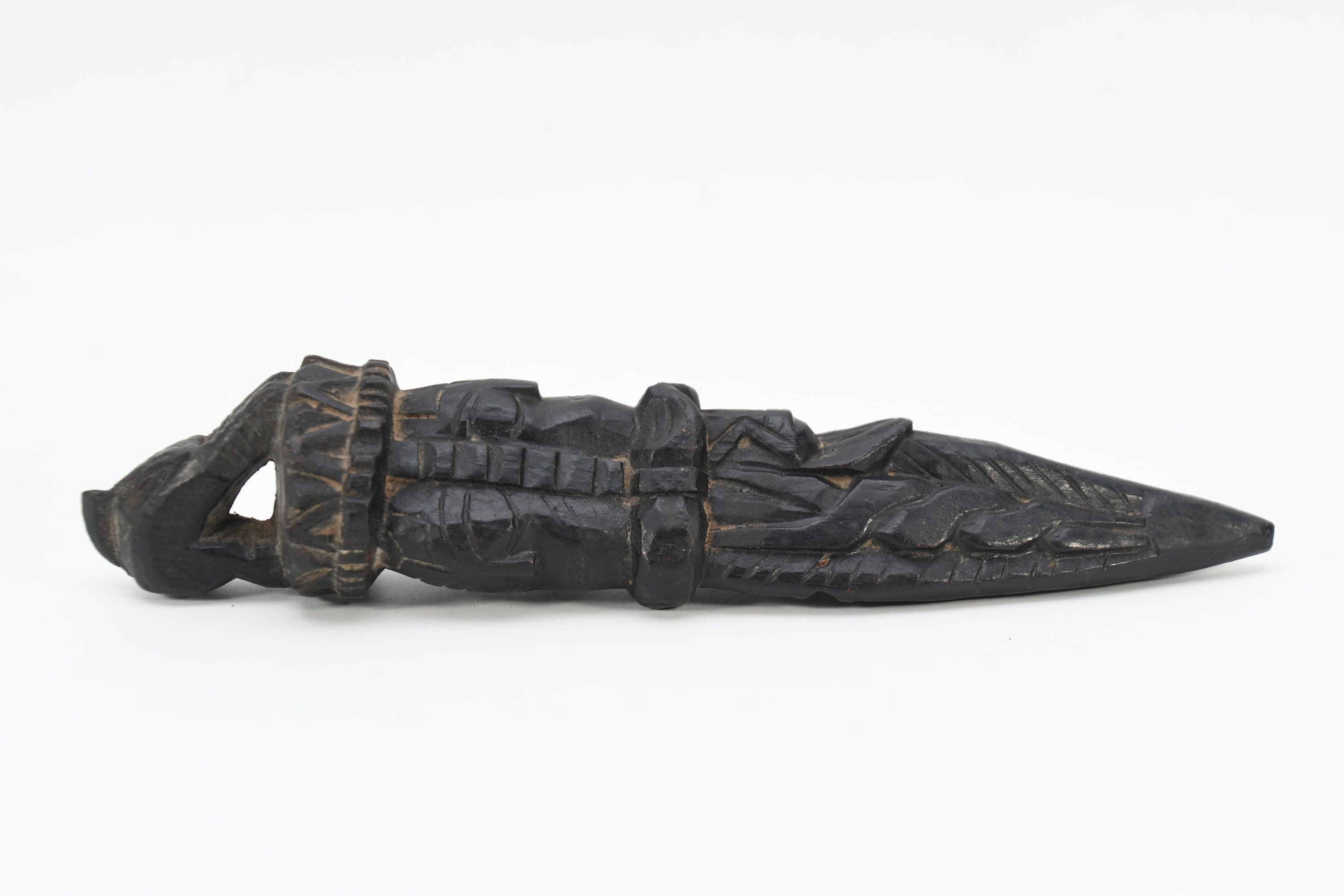 Carved Wooden Phurba Dagger, Tibetan Buddhist Mahakala Vajrakila