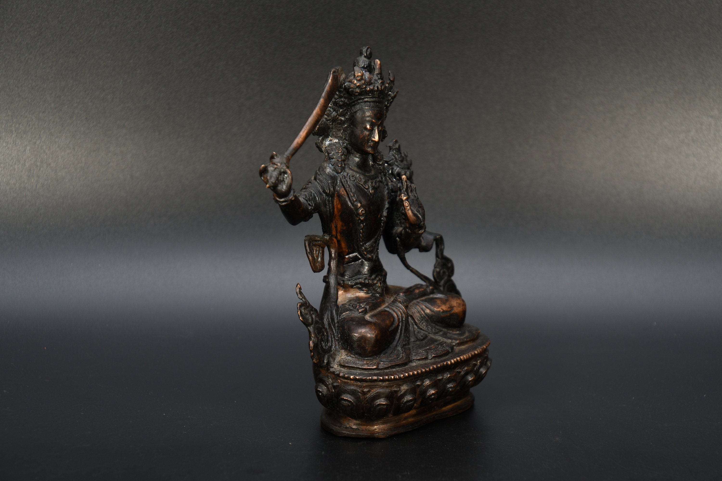 Handmade Manjushree Sword Statue, Lotus Sitting Bodhisattva Sculpture