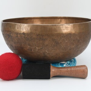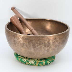 This singing bowl is made of seven metals, i.e. gold, silver, copper, iron, tin, lead, and zinc. All the metal used has a specific purpose and represent the sun and the moon and other planets. This bowl can be used for meditation, music, and chakra cleansing. A leather striker is included with this singing bowl and this bowl was hand-hammered in Nepal. Due to handmade bowl, the surface have several marked of hammered on it. The bowl have long lasting tune which create totally peaceful environment around you,those who are looking for real handmade bowl from Himalaya will not be disappointing by this bowl.