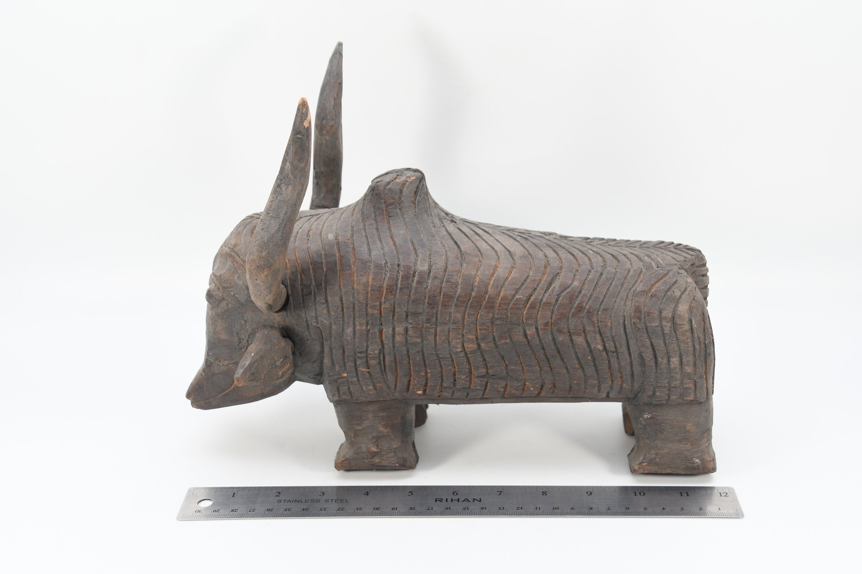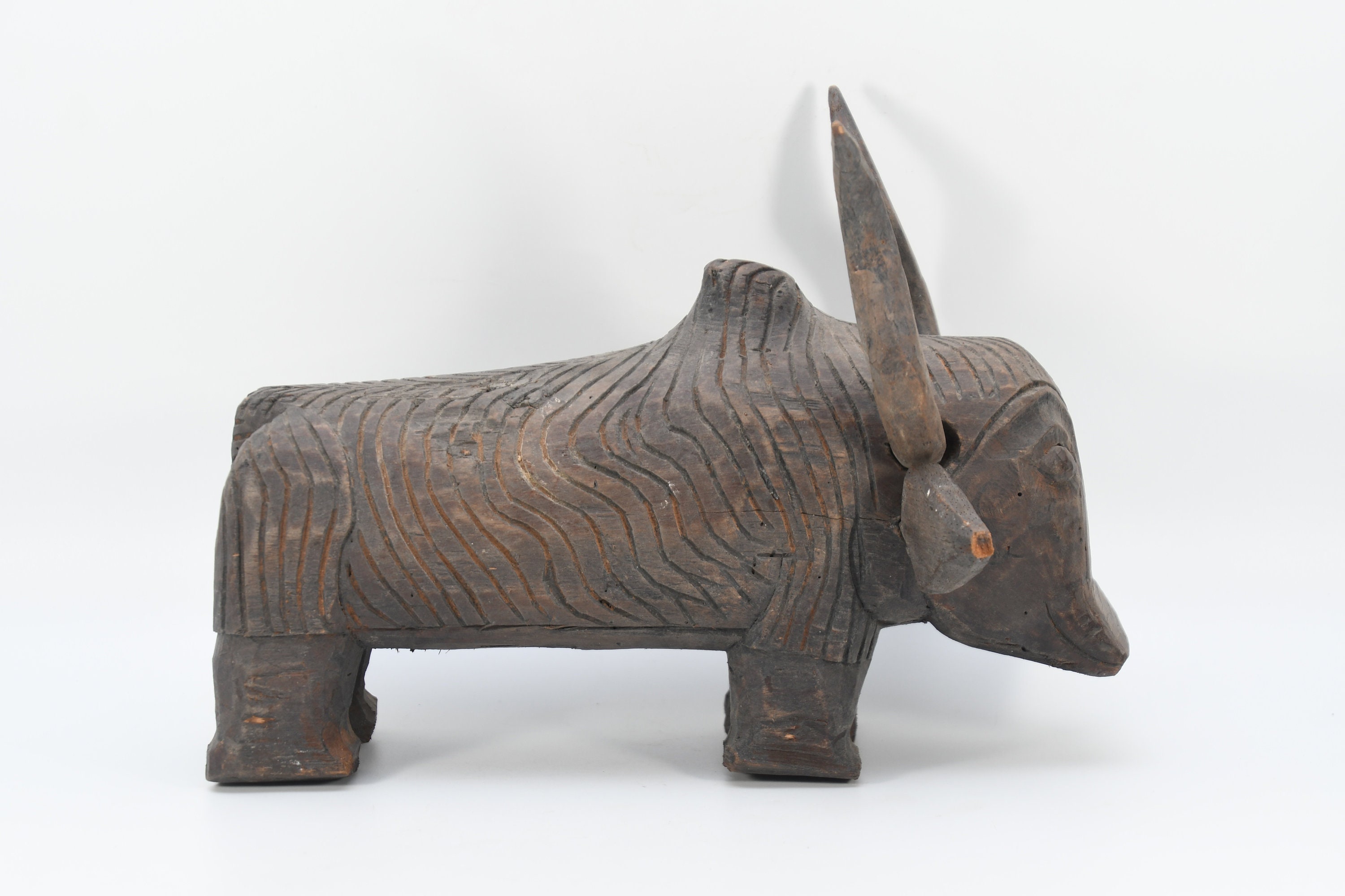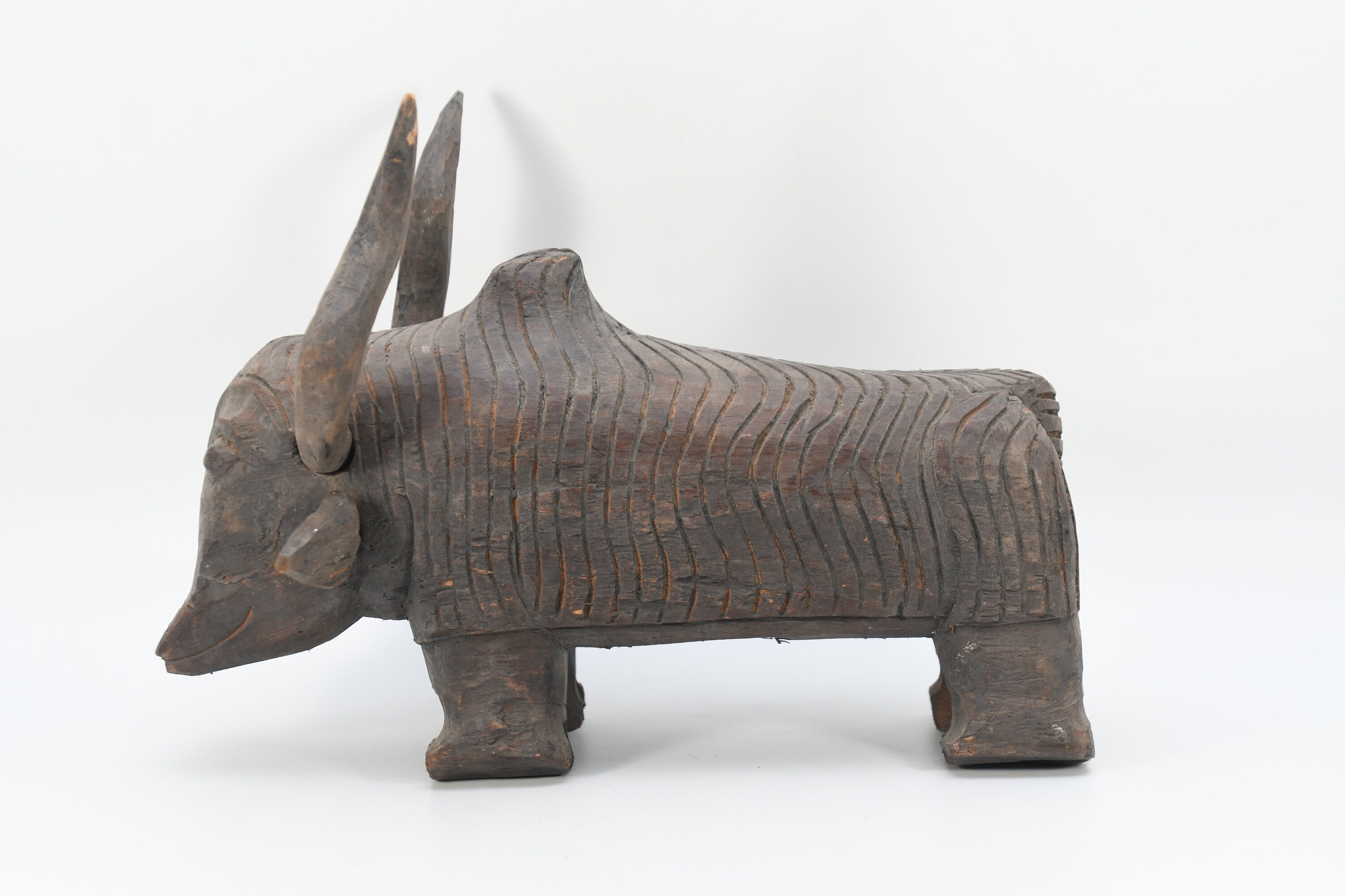 Hand Carved Vintage Bull Sculpture Solid Wood