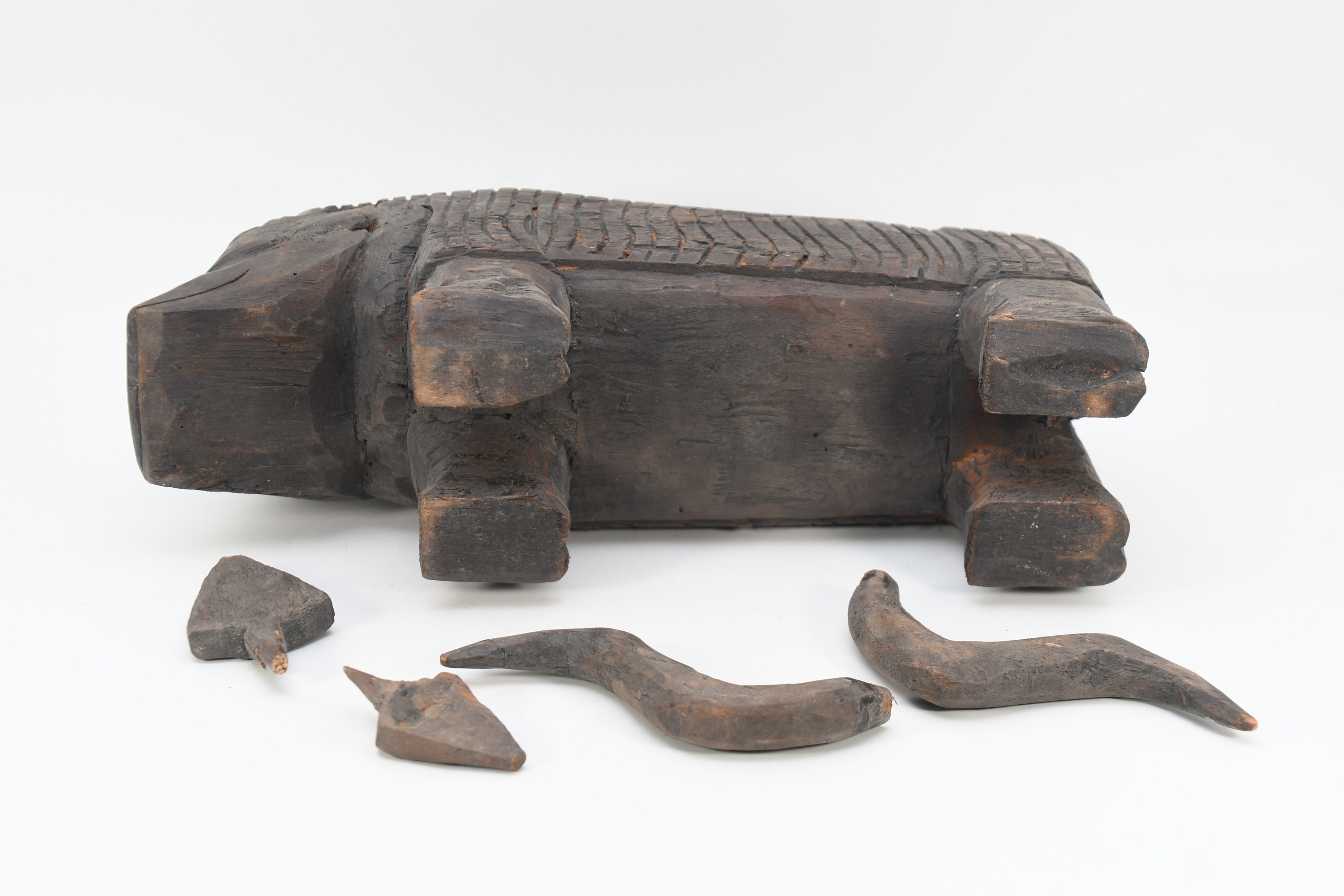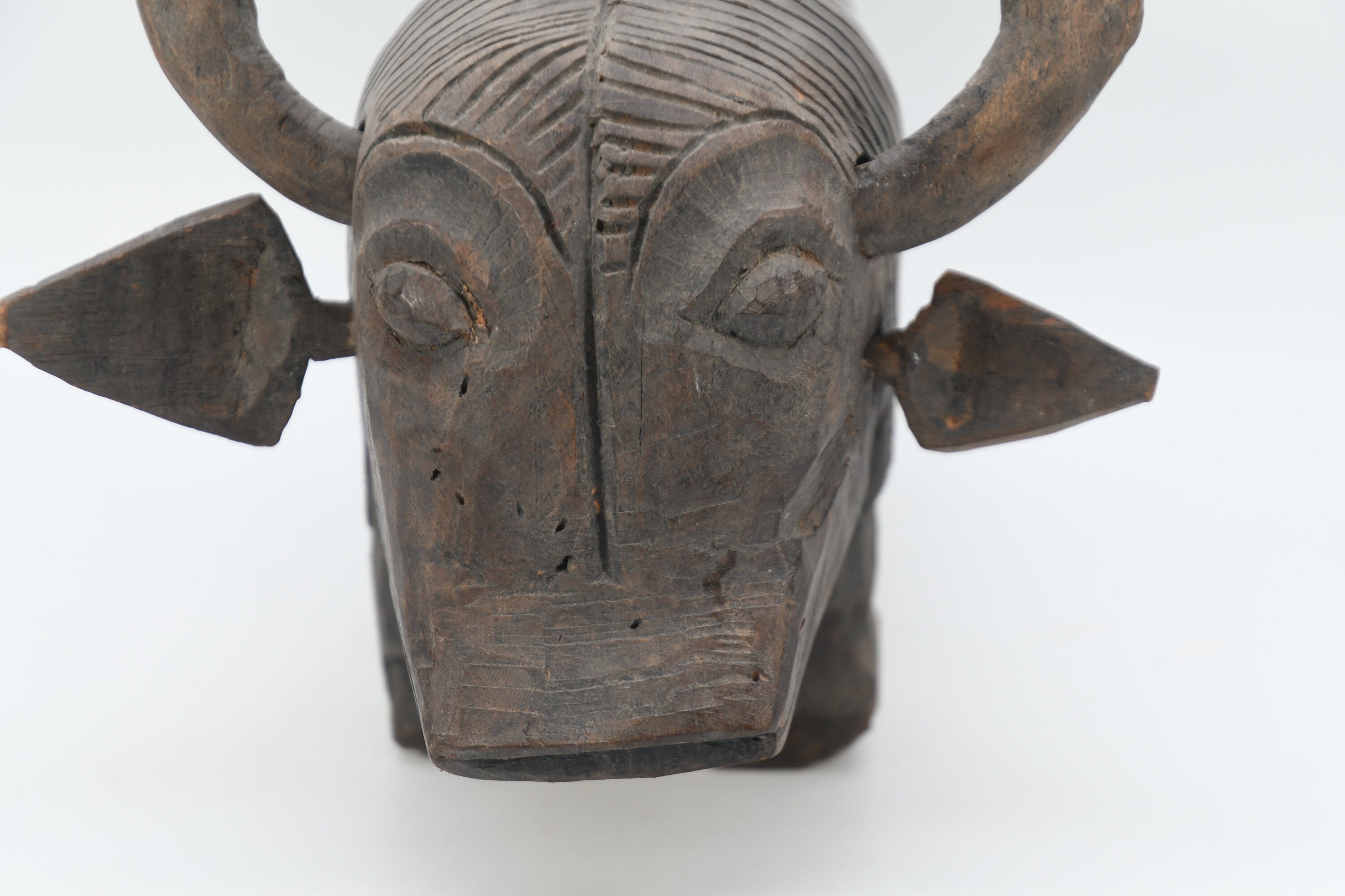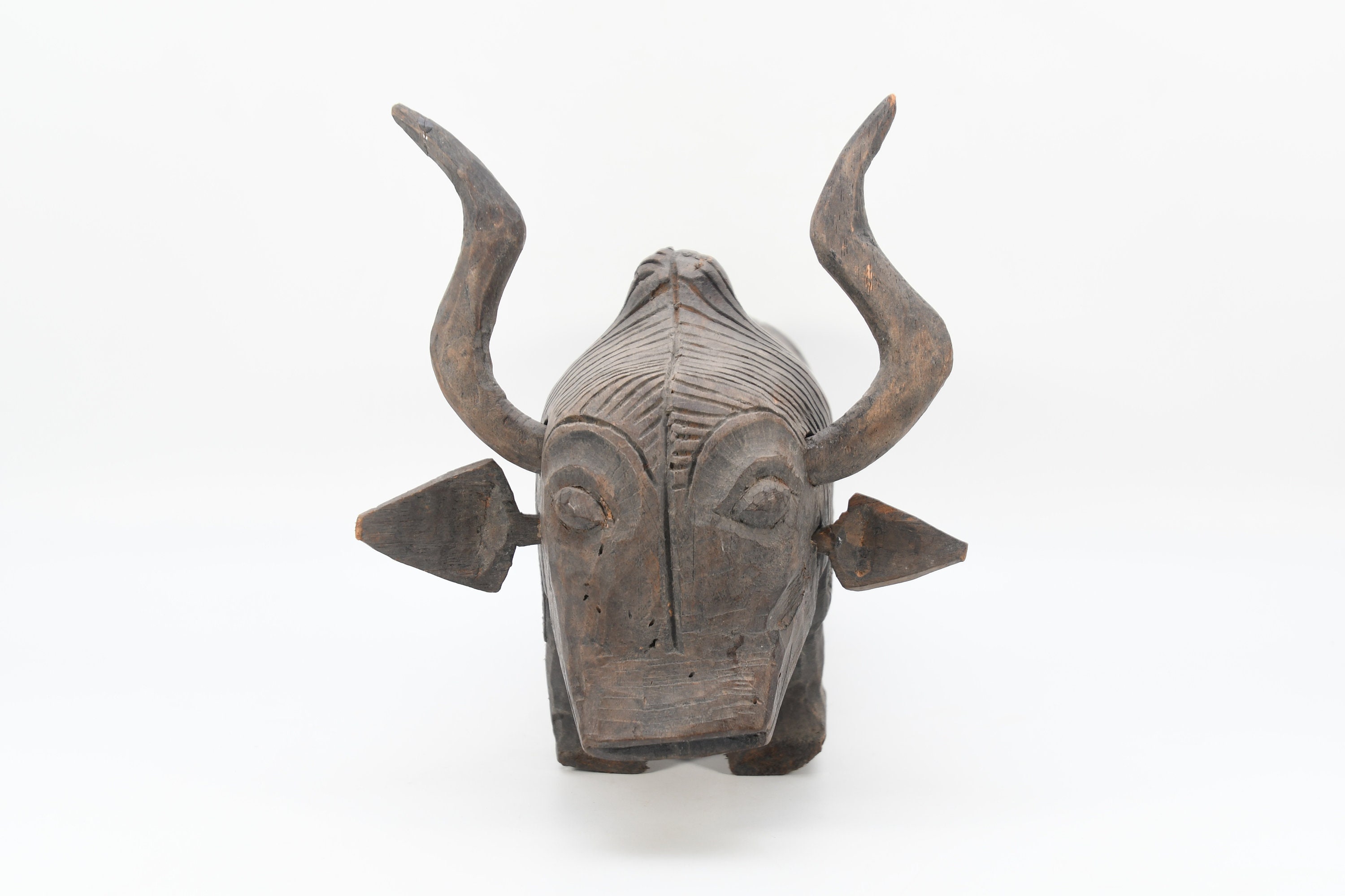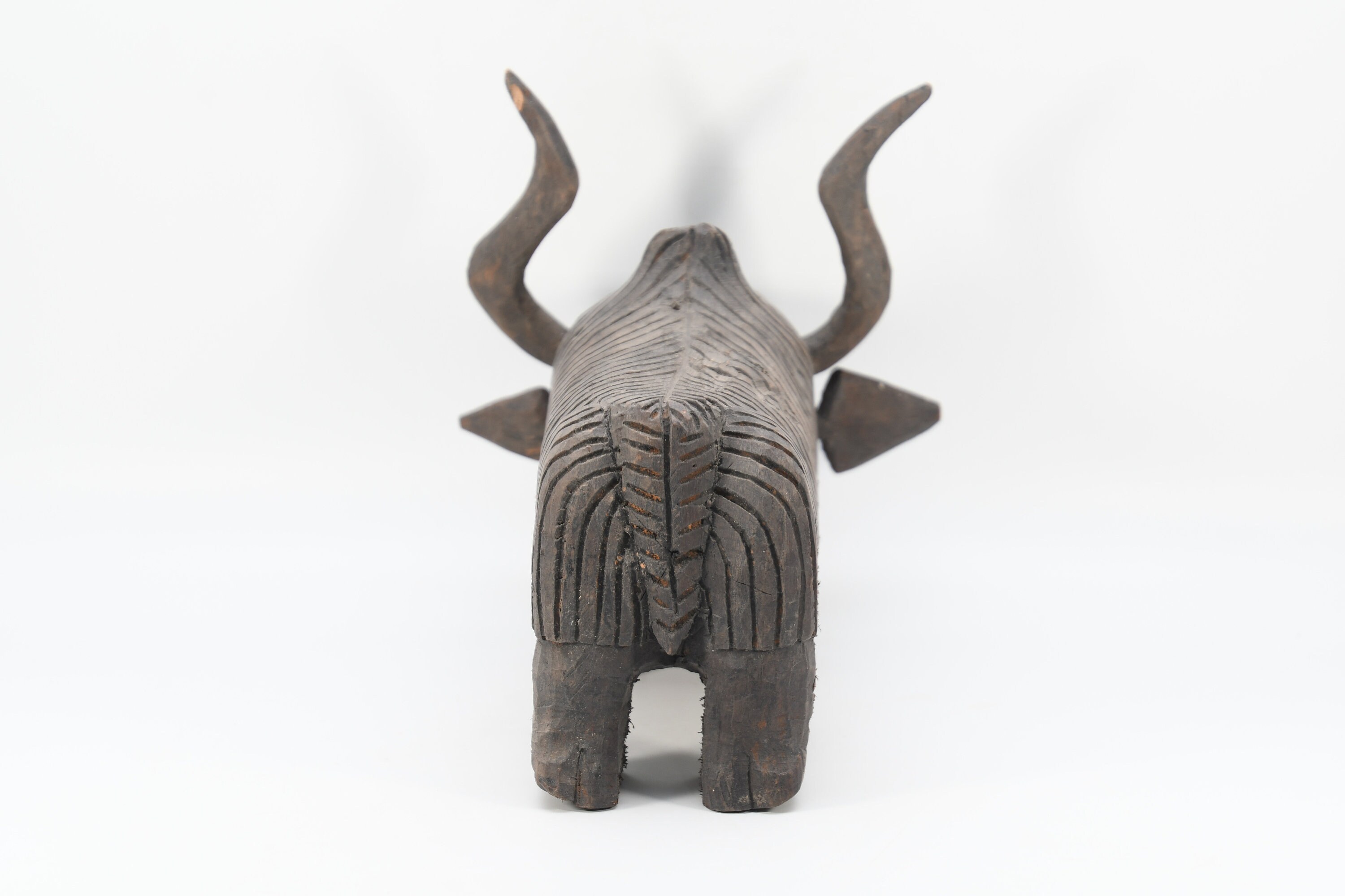 Hand Carved Vintage Bull Sculpture Solid Wood