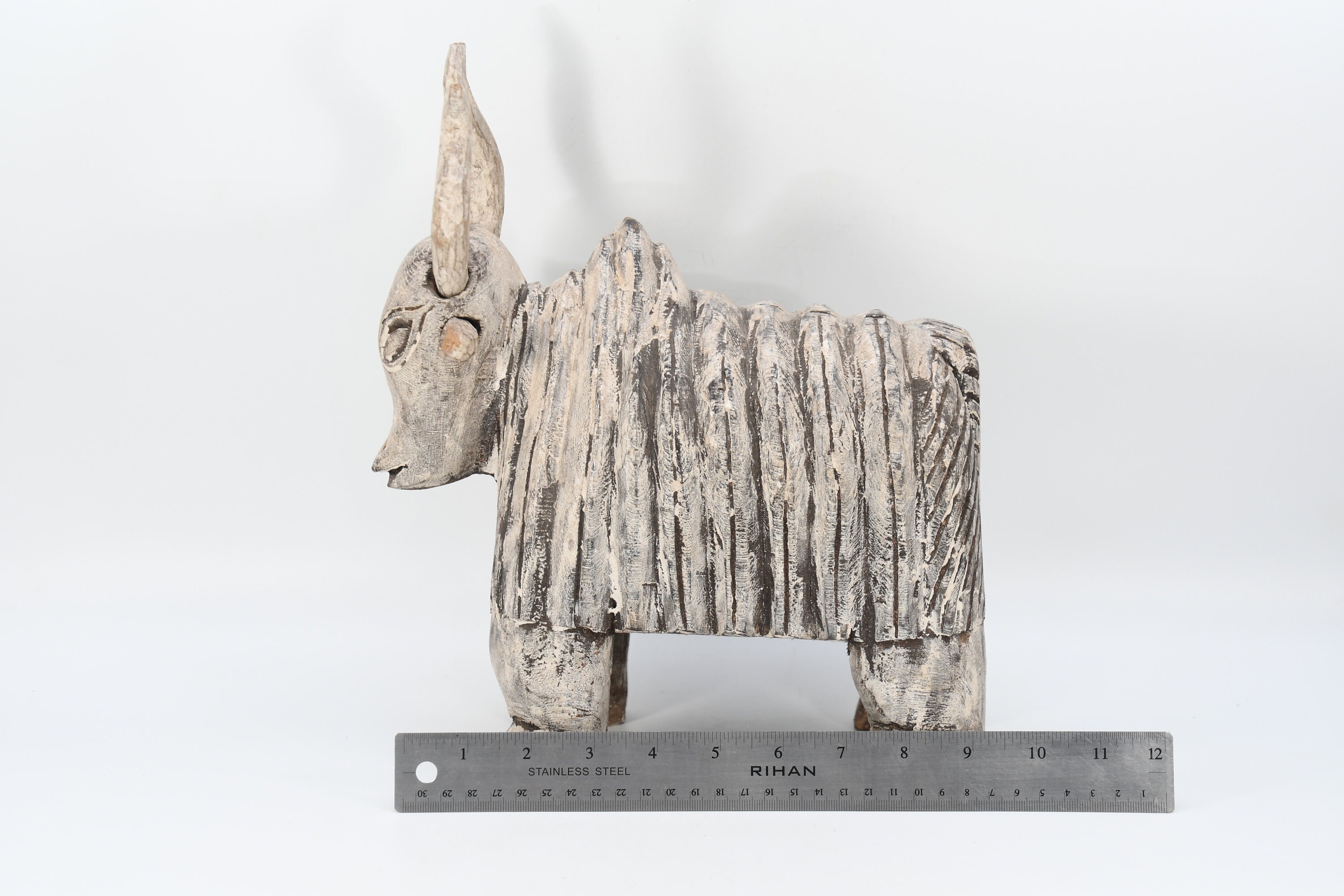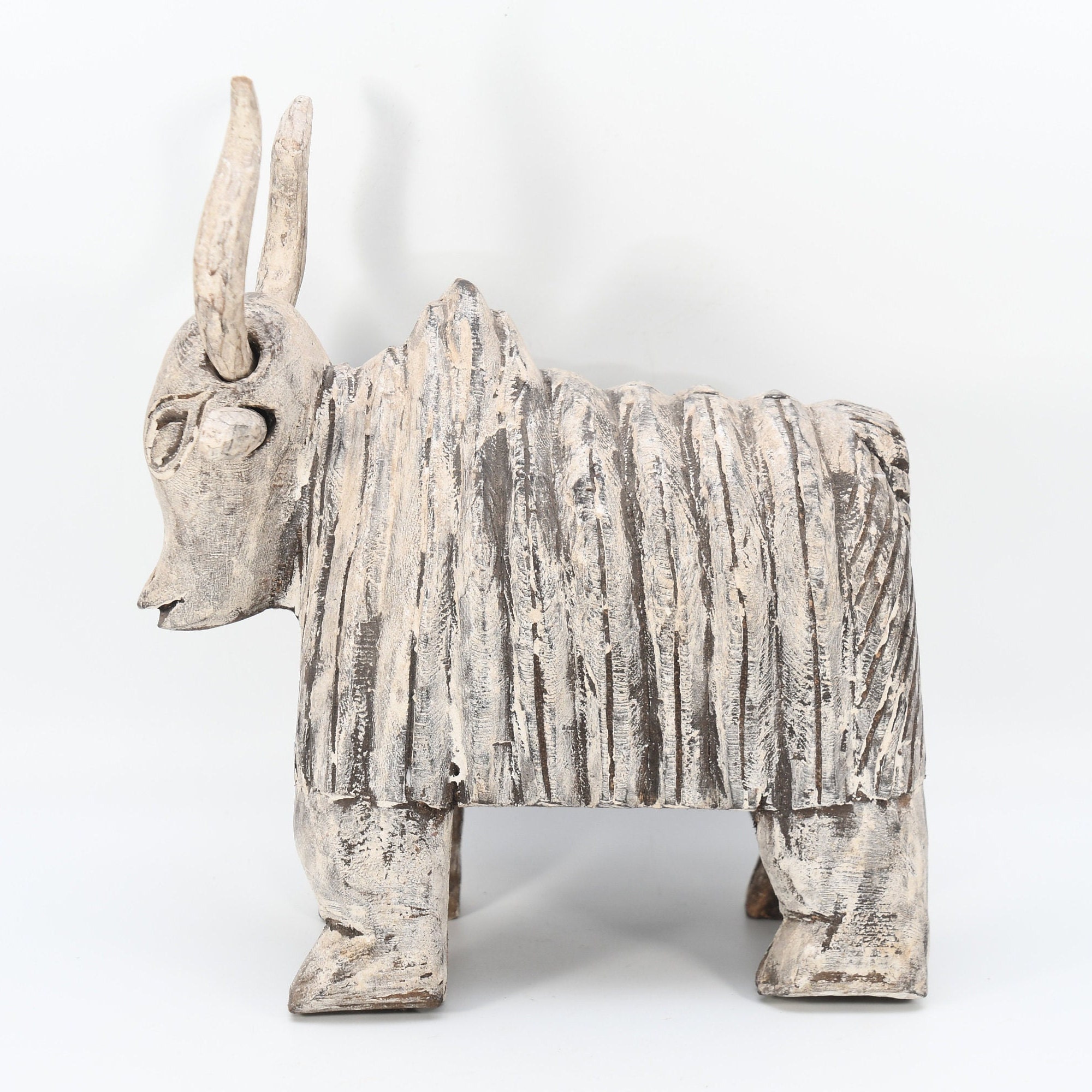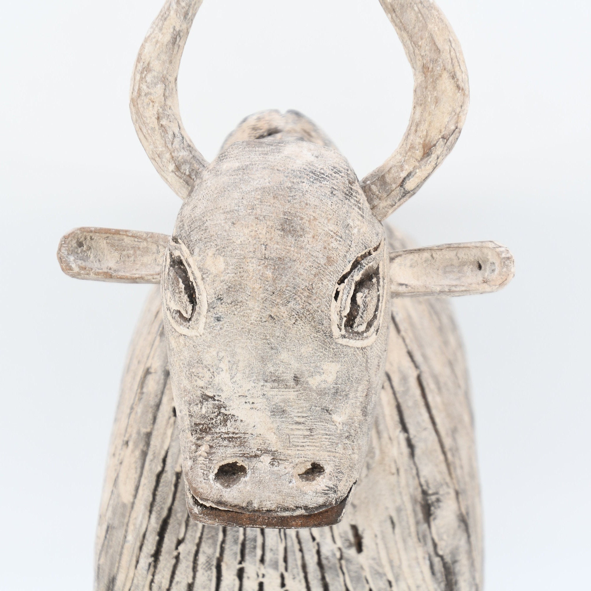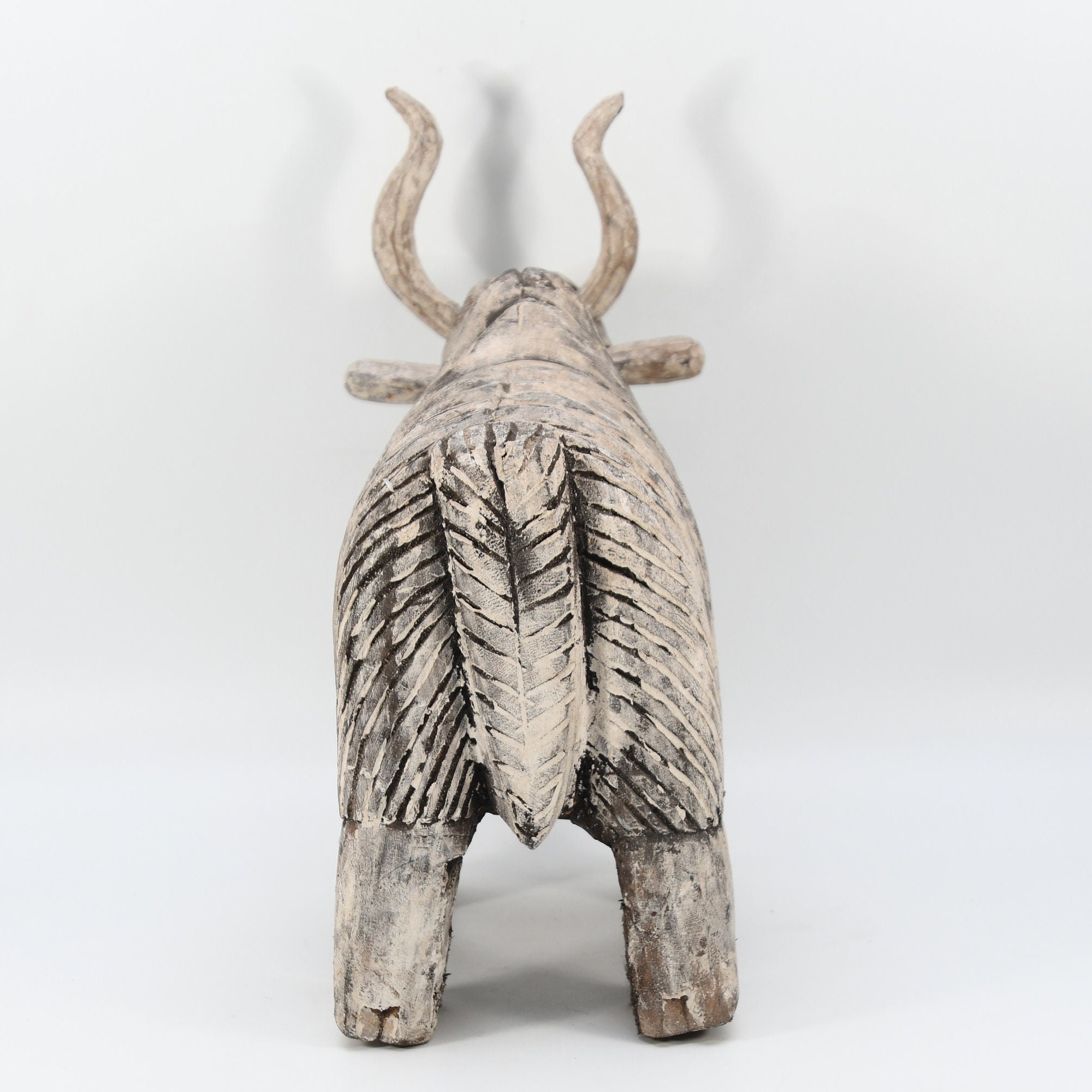 Hand Carved Vintage Bull Sculpture Solid Wood Statue Home Decorative Nepal