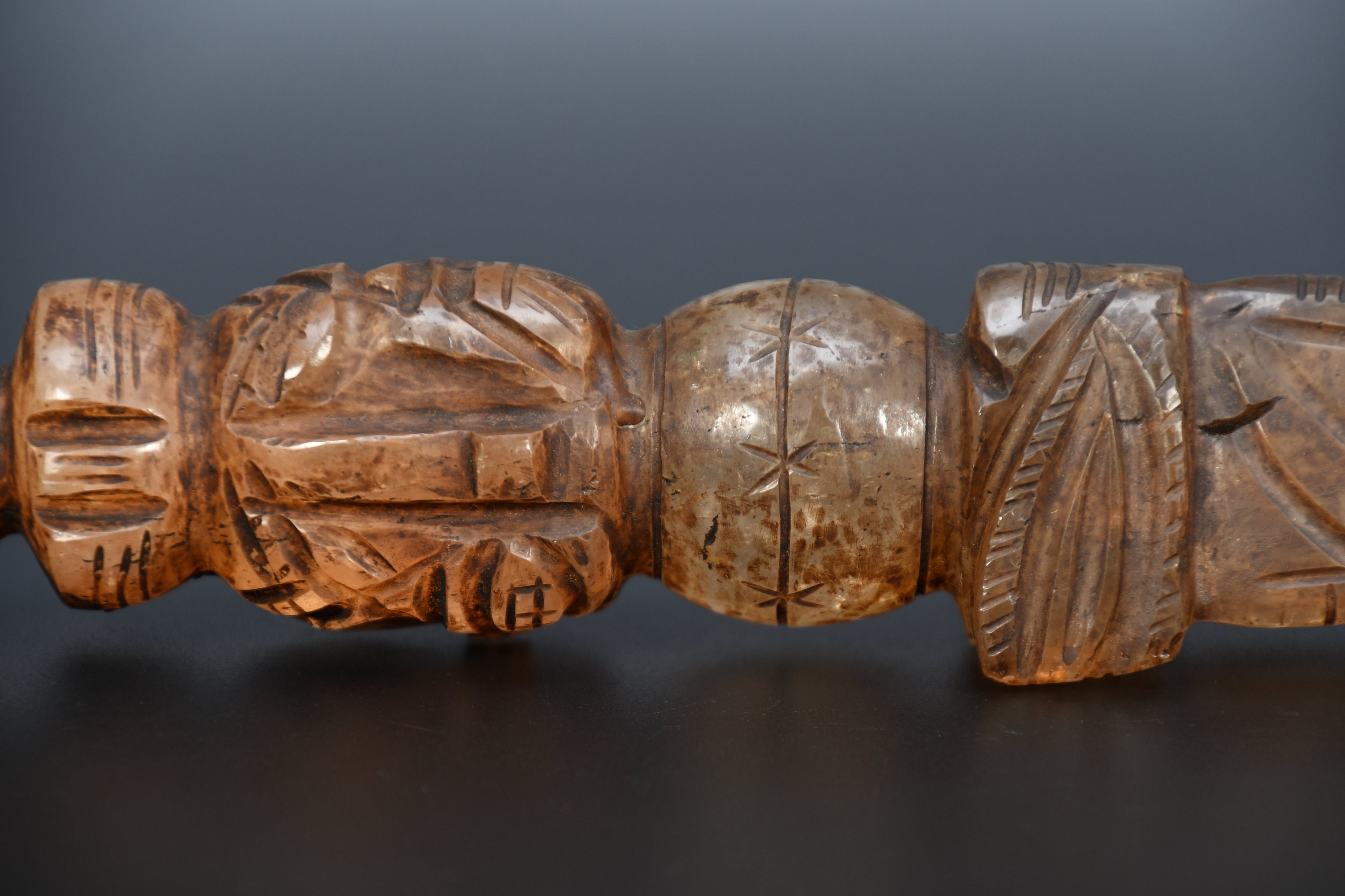 The three-sided style of the phurba comes from an ancient vedic tool. It has three segments on its blade, each representing the power of the phurba to transform negative energies. These energies are known as the 'three poisons,' and are attachment, ignorance, and aversion. The three sides of the phurba also represent the three spirit worlds, and the phurba itself represents the axis of the three spirit worlds. The handle of the phurba represents 'wisdom', while the blade represents 'method'.