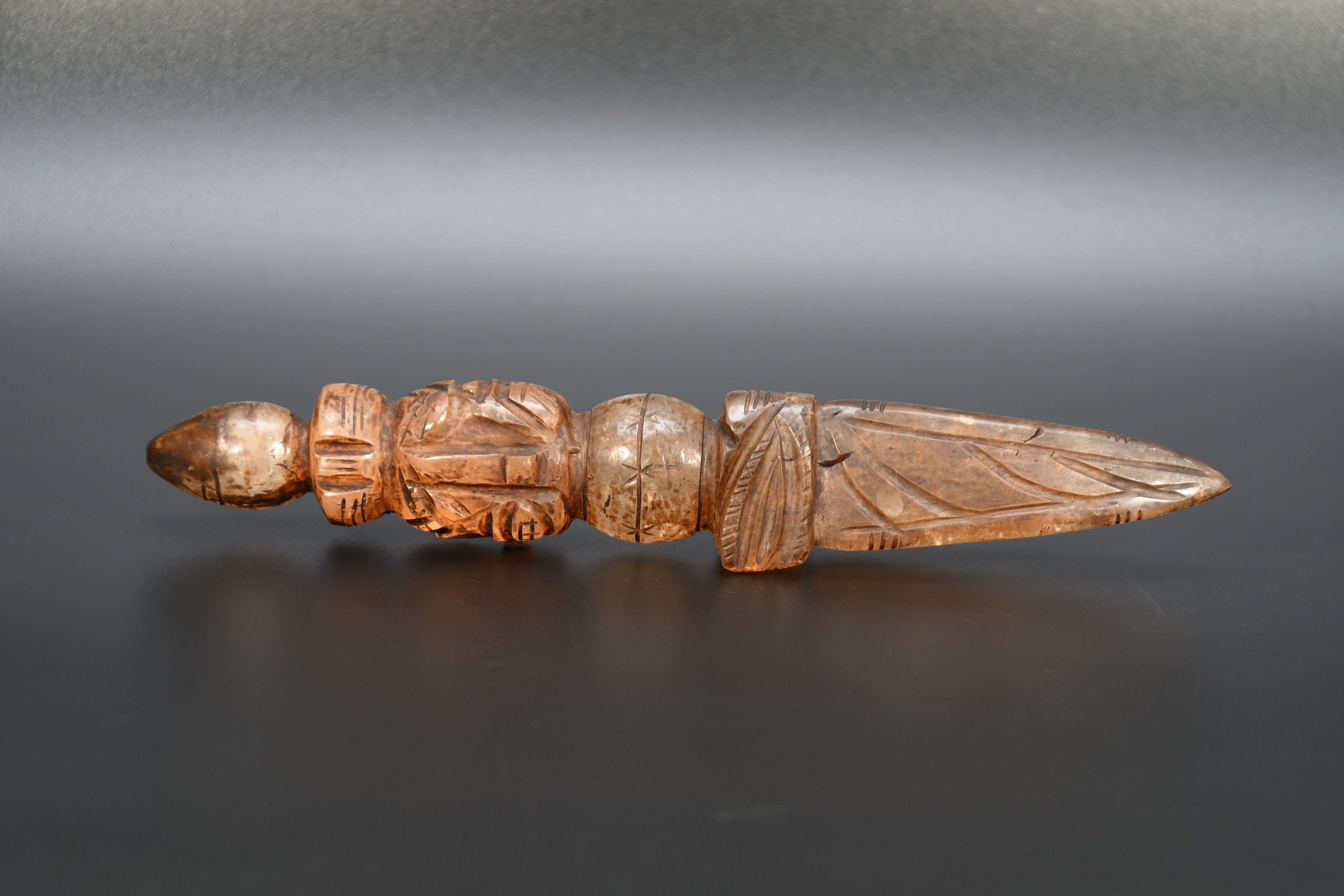 The phurba is also called 'the magic dagger'. 'Phur' is translated from the Sanskrit 'kila' which means peg or nail. The phurba is a three-sided stake that is used in Buddhist rituals.