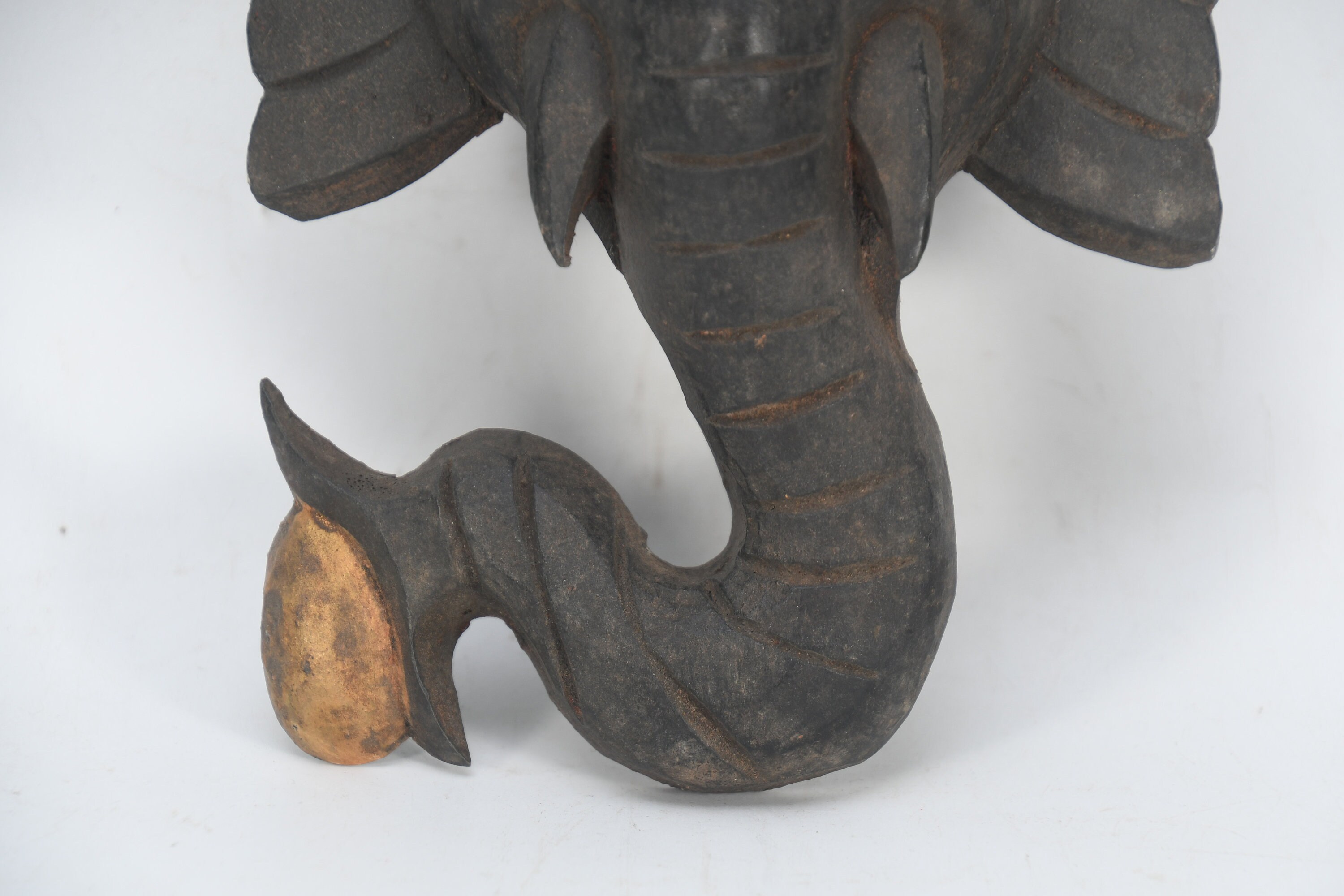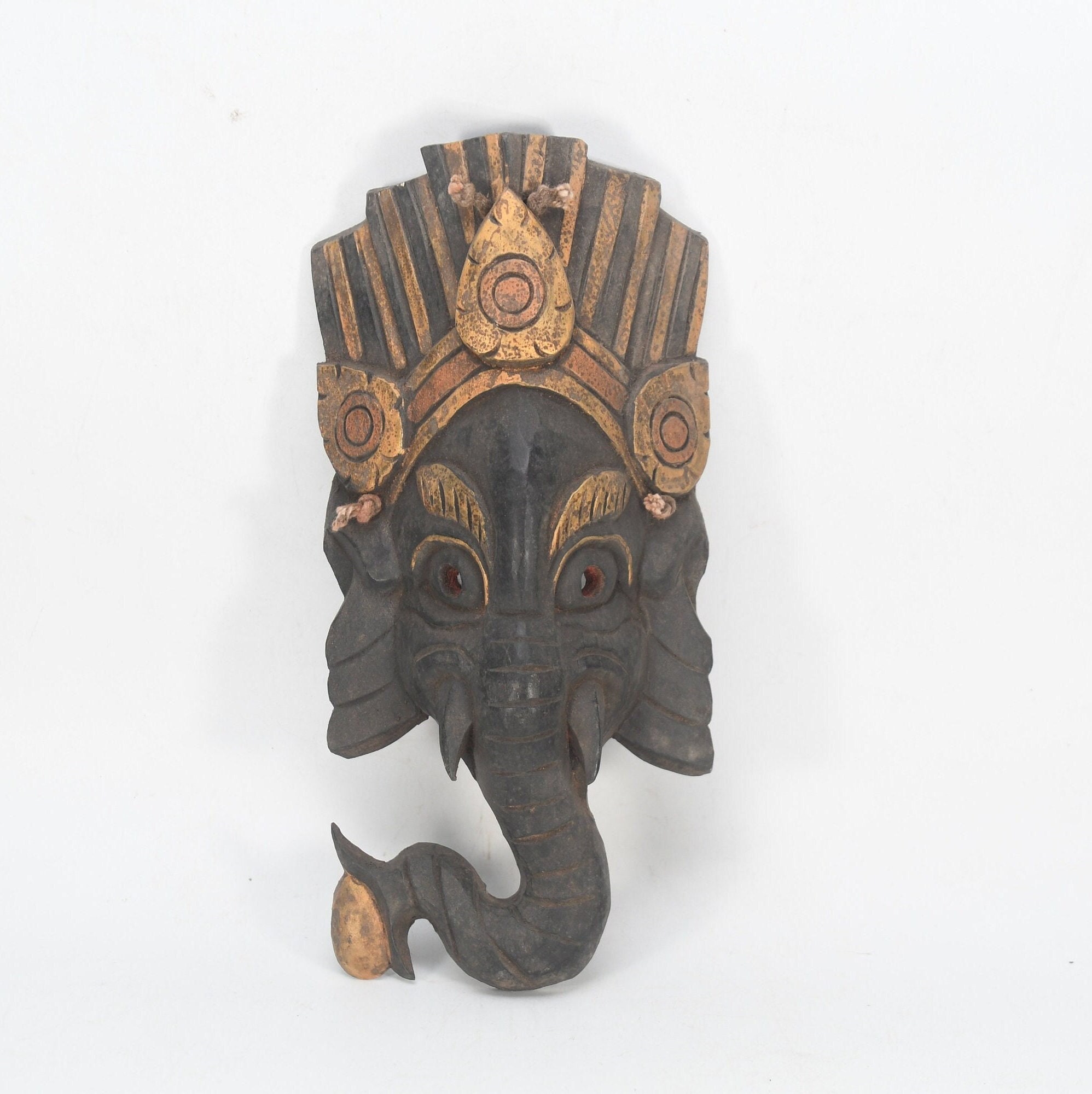Hand Carved Wooden Ganesha Mask, Nepali Shaman Wall Decor (11.65" Inches)
