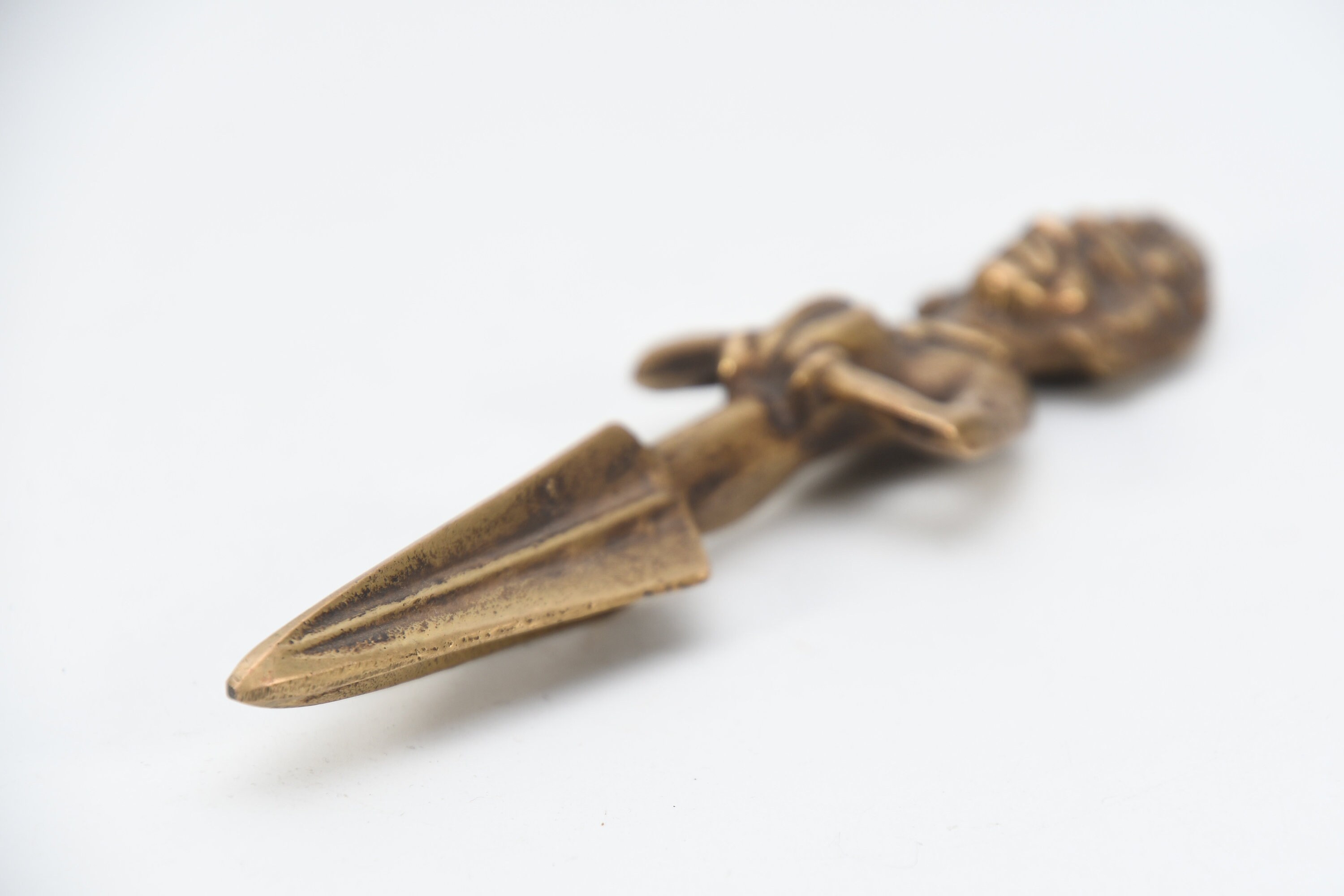 The three-sided style of the phurba comes from an ancient vedic tool. It has three segments on its blade, each representing the power of the phurba to transform negative energies. These energies are known as the 'three poisons,' and are attachment, ignorance, and aversion. The three sides of the phurba also represent the three spirit worlds, and the phurba itself represents the axis of the three spirit worlds. The handle of the phurba represents 'wisdom', while the blade represents 'method'.