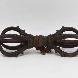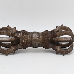 Vajra is a Sanskrit word meaning both thunderbolt and diamond. It is a weapon that is used as a ritual object to symbolize both the properties of a diamond (indestructibility) and a thunderbolt (irresistible force). The five-pronged vajra is the most commonly seen vajra.
