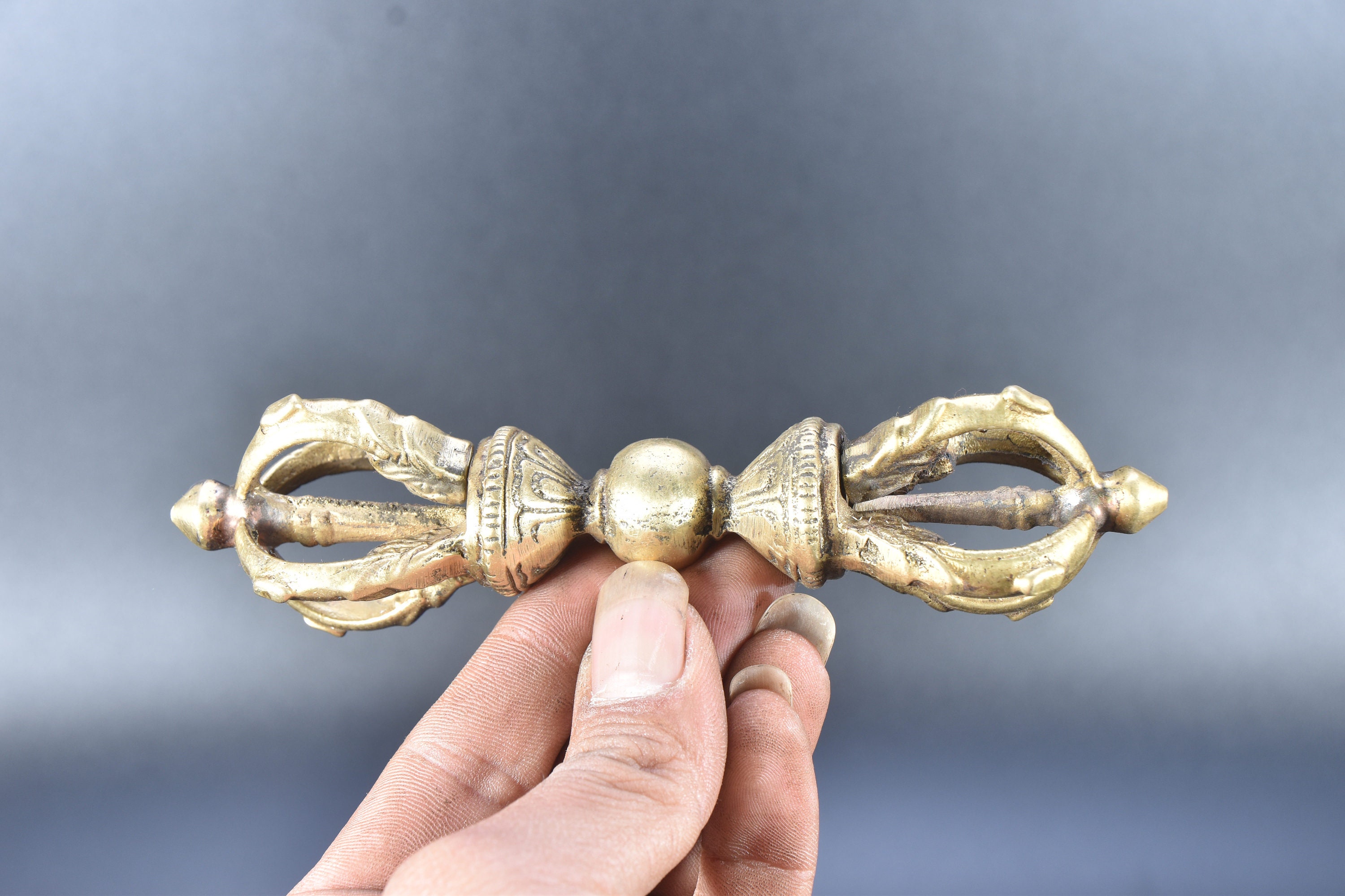 Brass Dorje Vajra, Handmade Buddhist Thunderbolt Dagger, Meditation Nepal