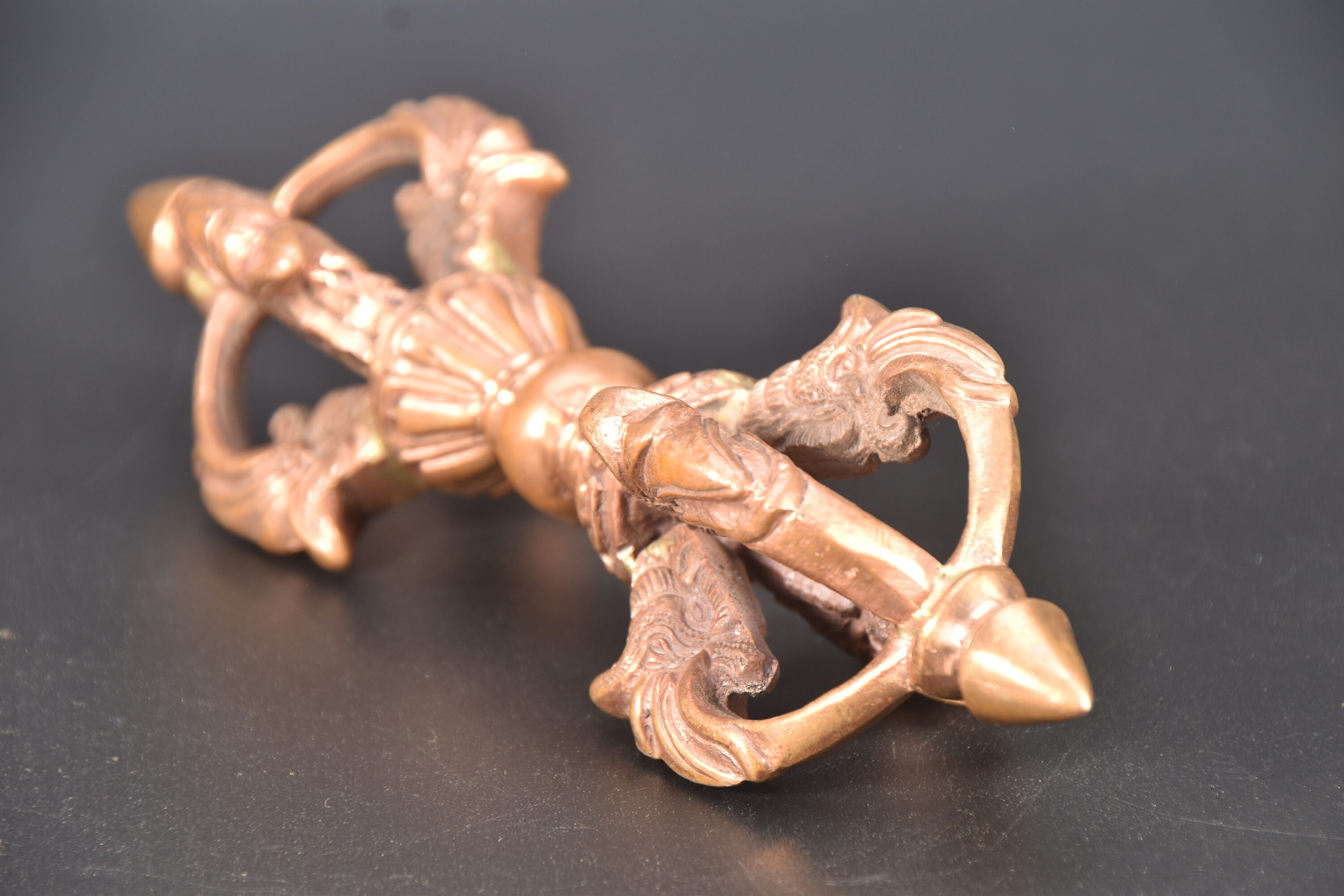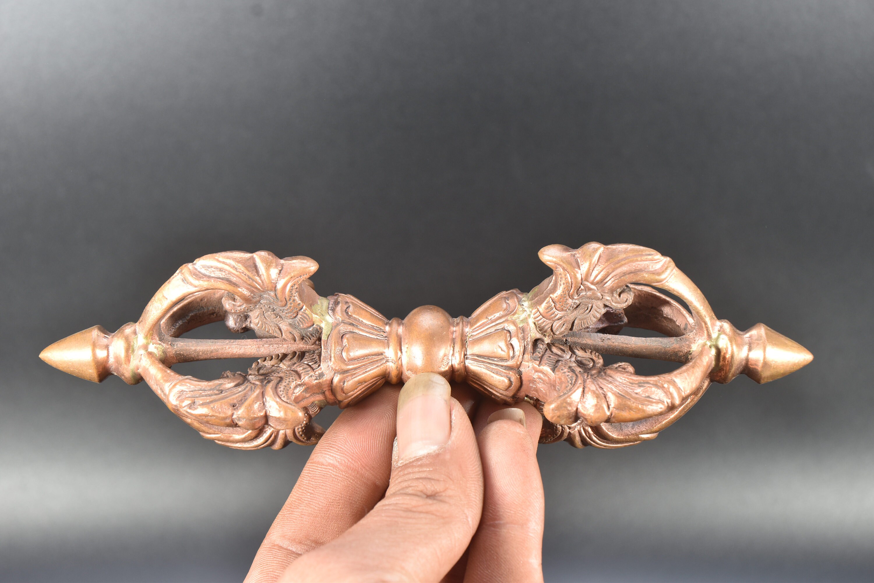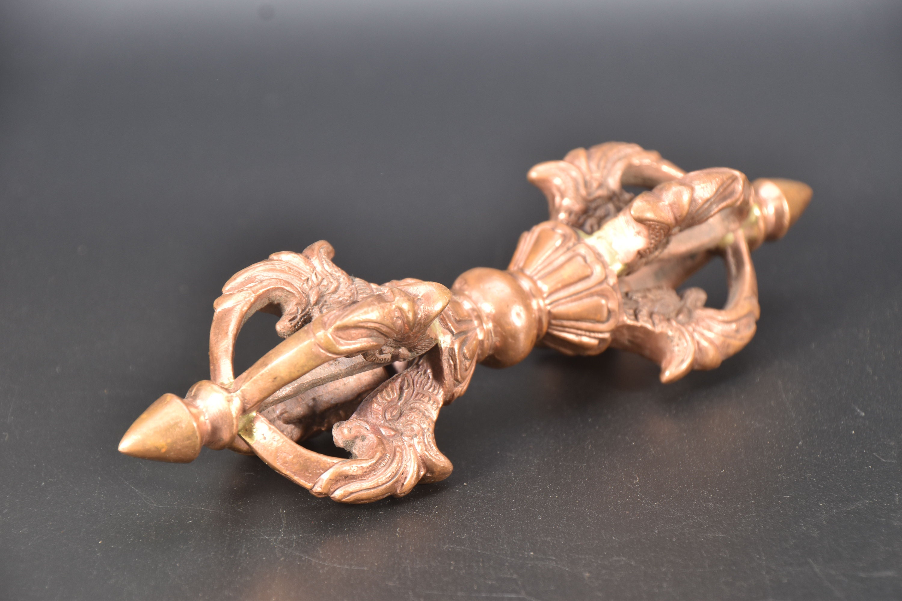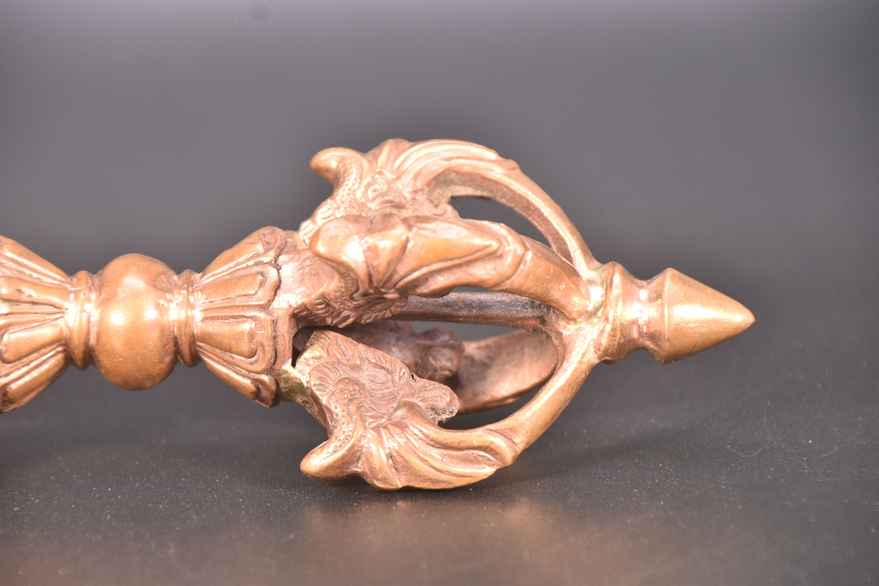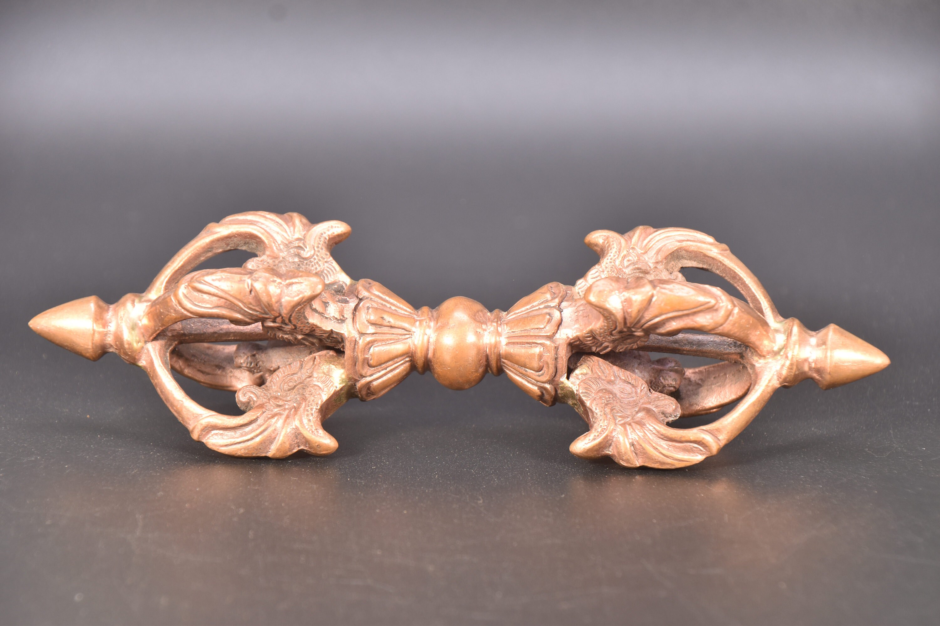Antique Copper Tibetan Dorje, Dragon Head Vajra, Buddhism Altar Tool