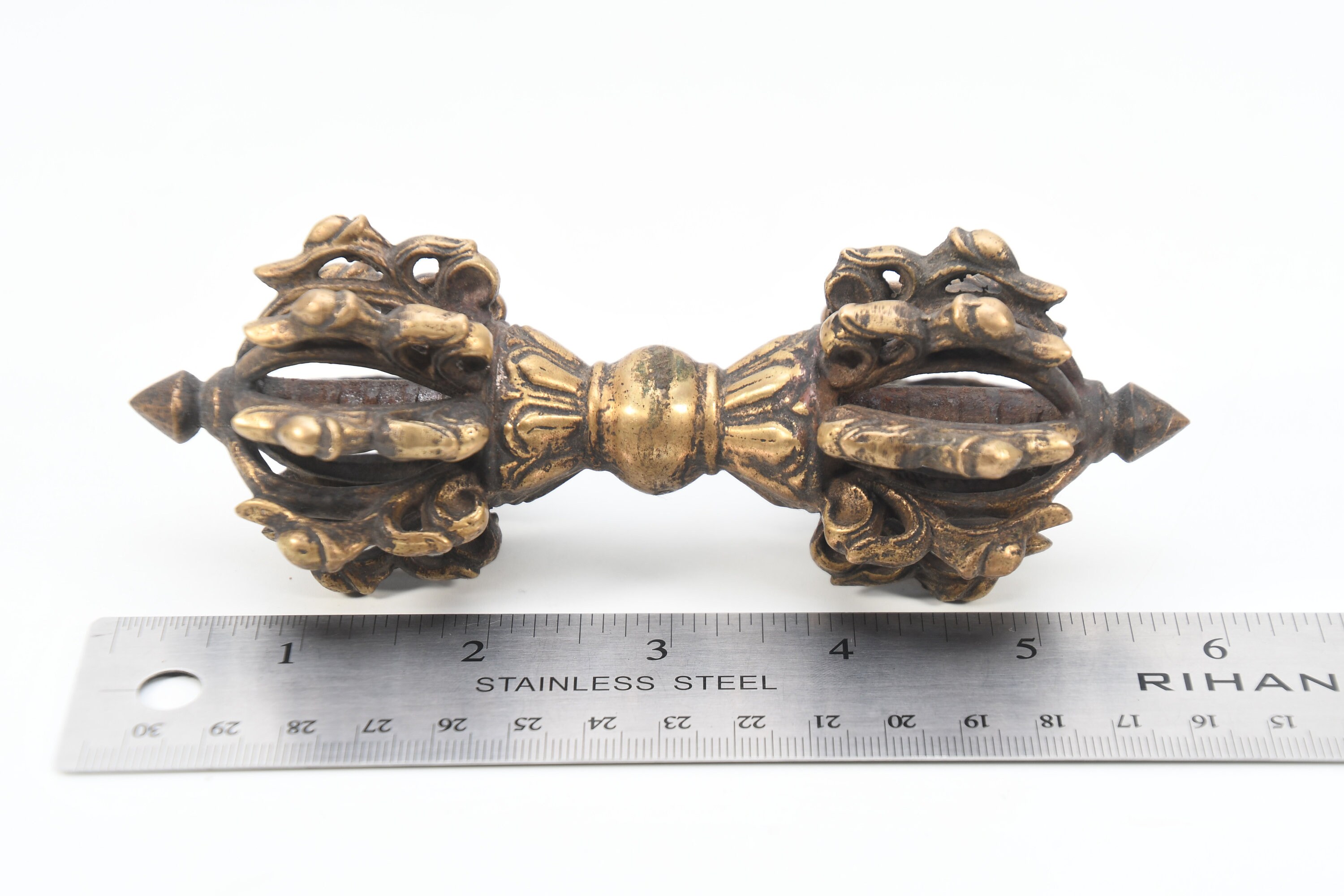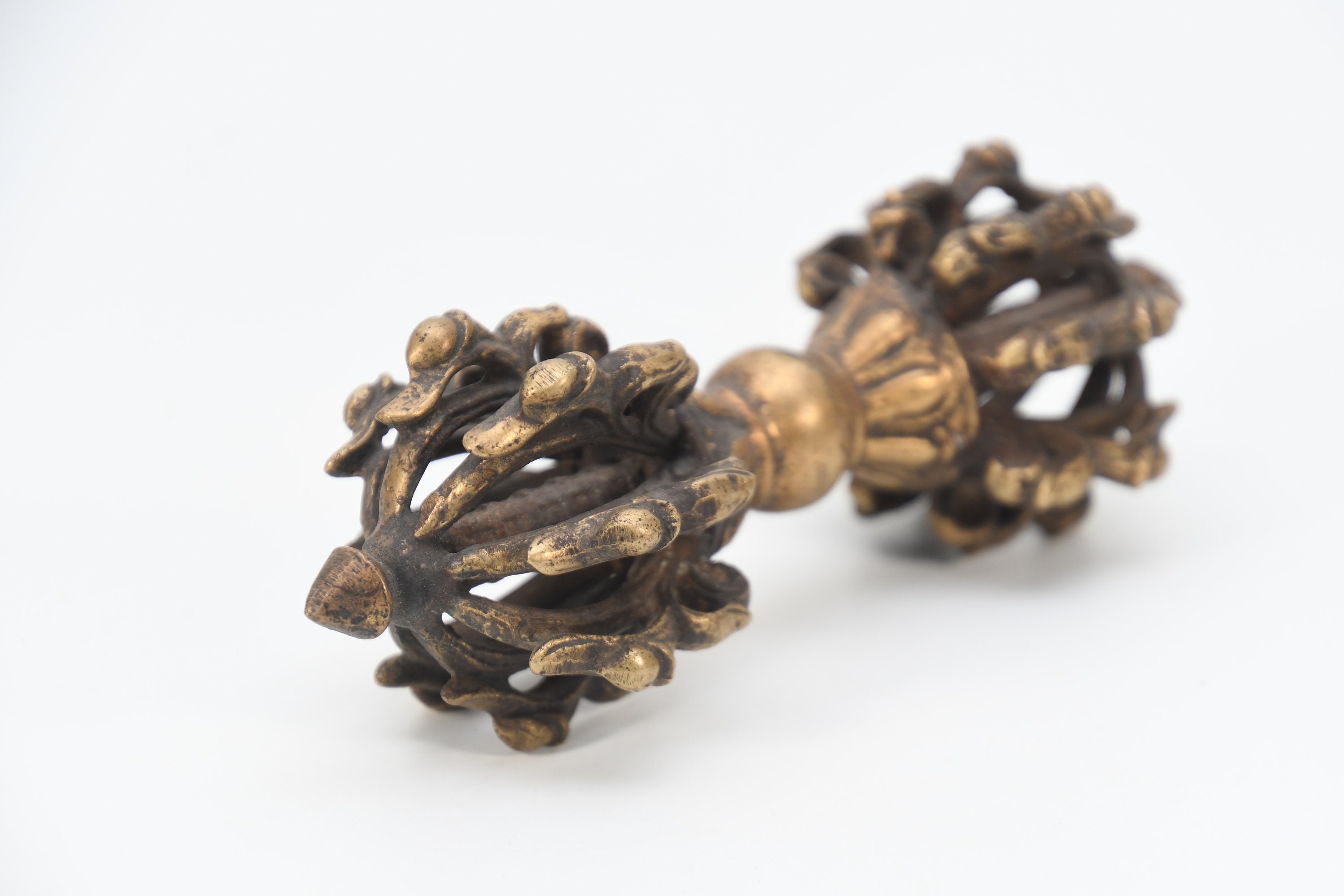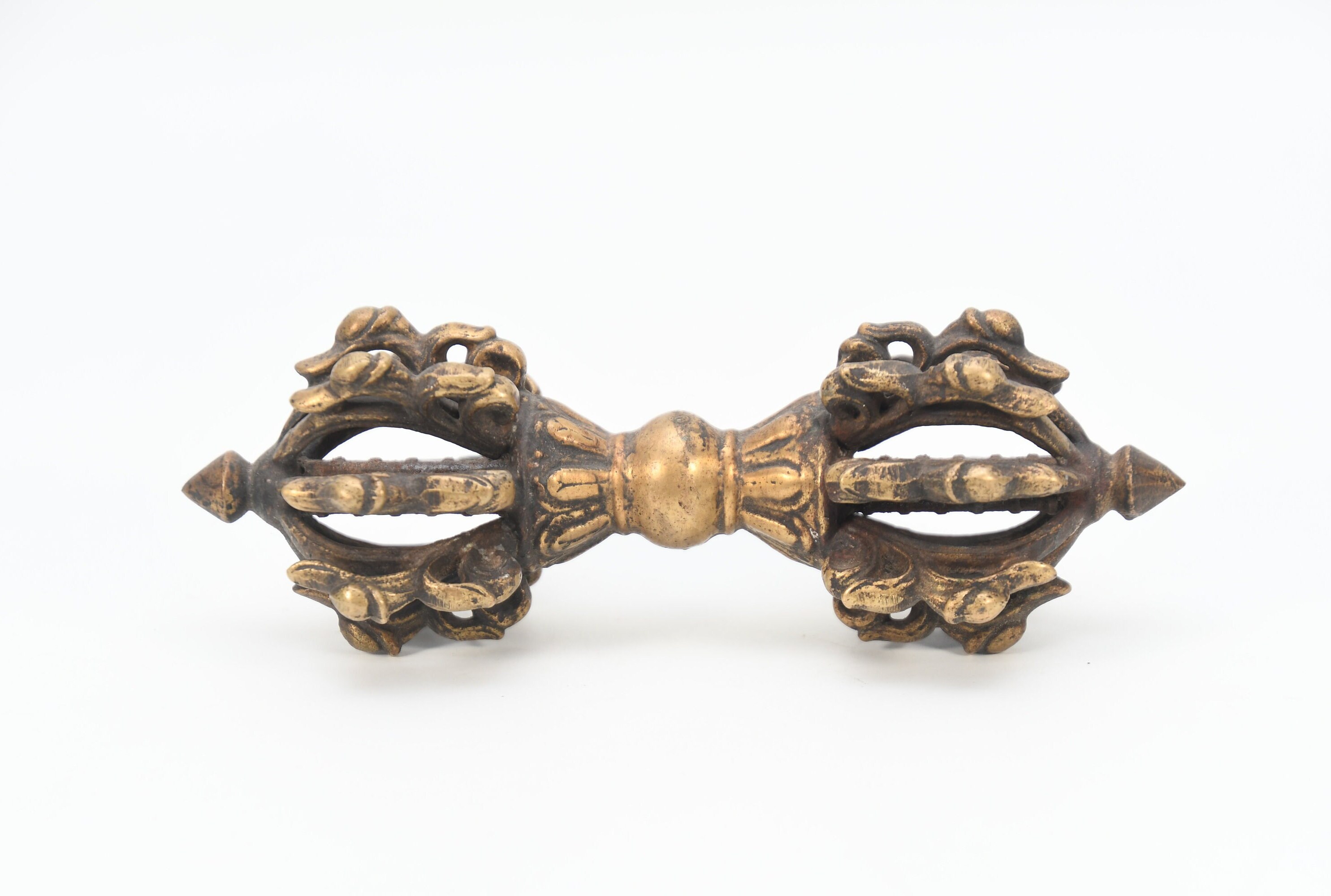 Antique Brass Tibetan Vajra Dorje | Meditation Altar Decor
