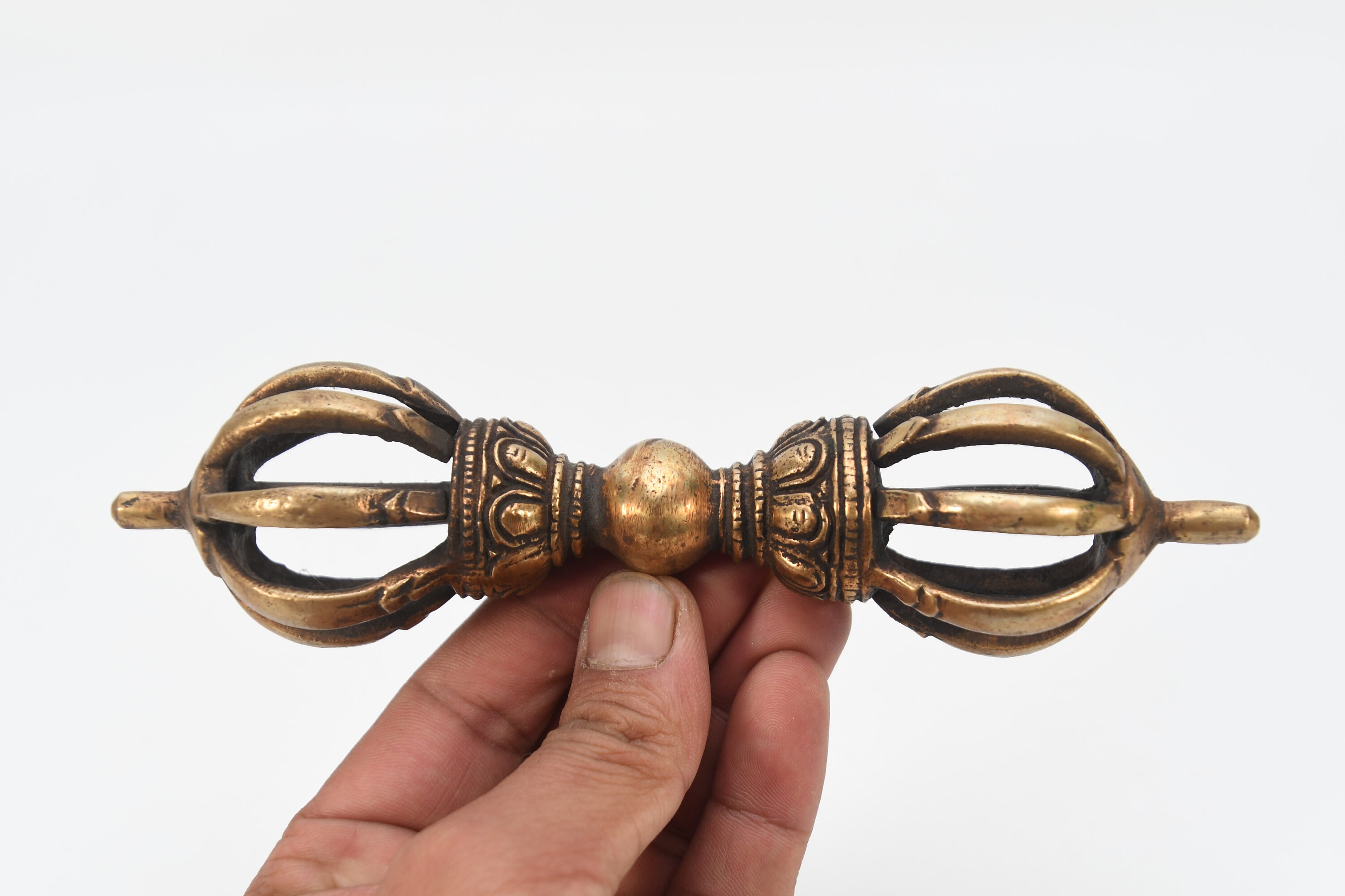 Brass Tibetan Dorje Amulet, Handmade Nepal Vajra