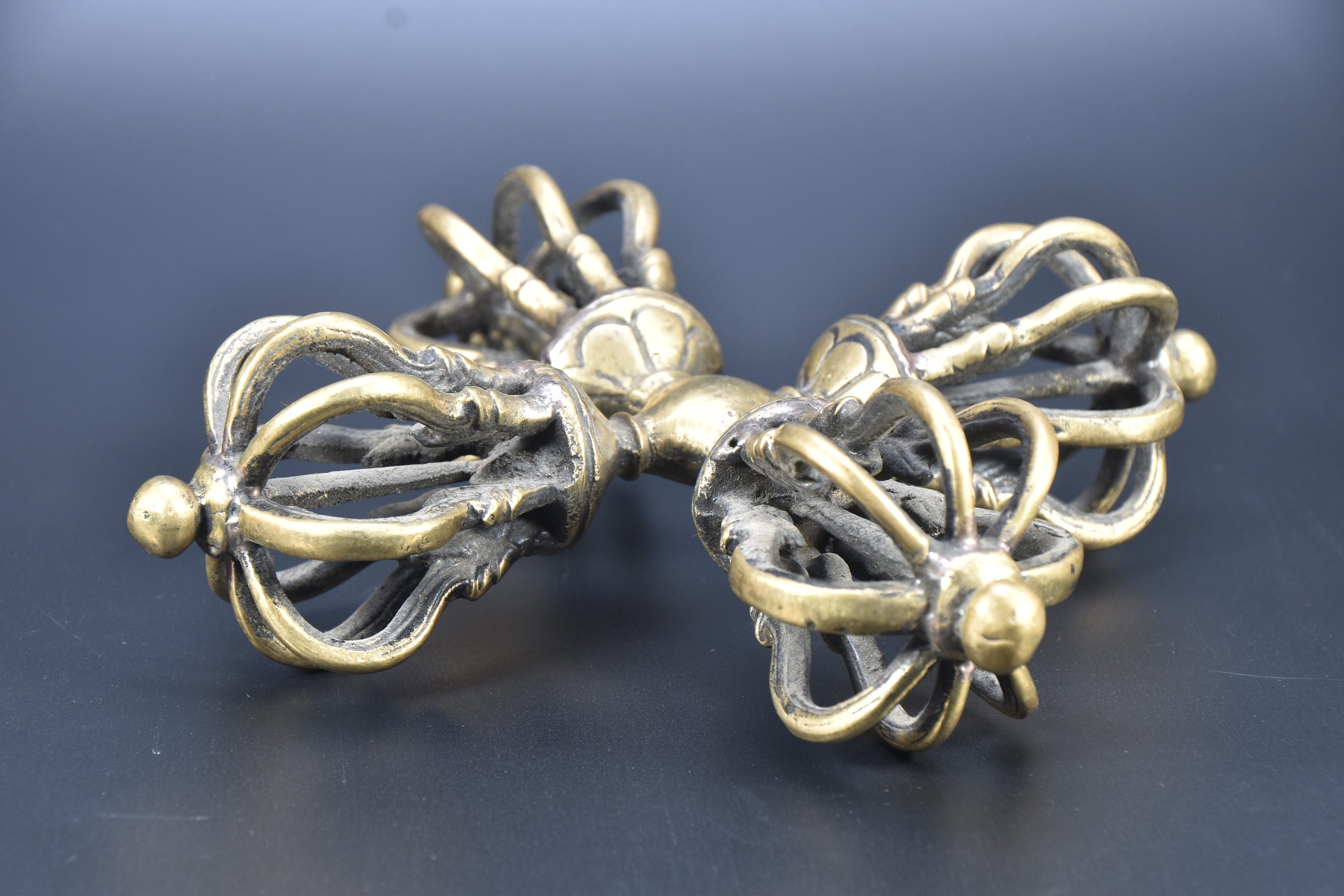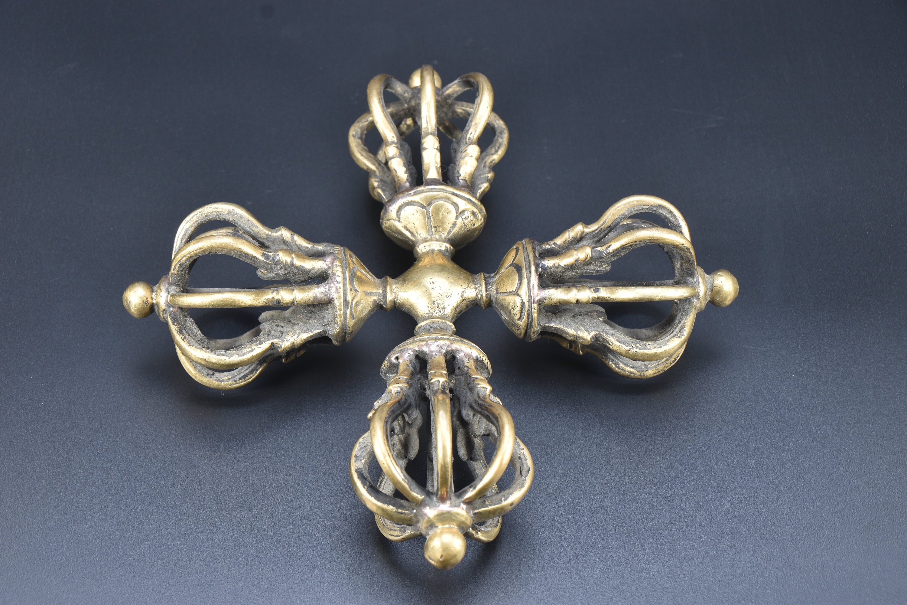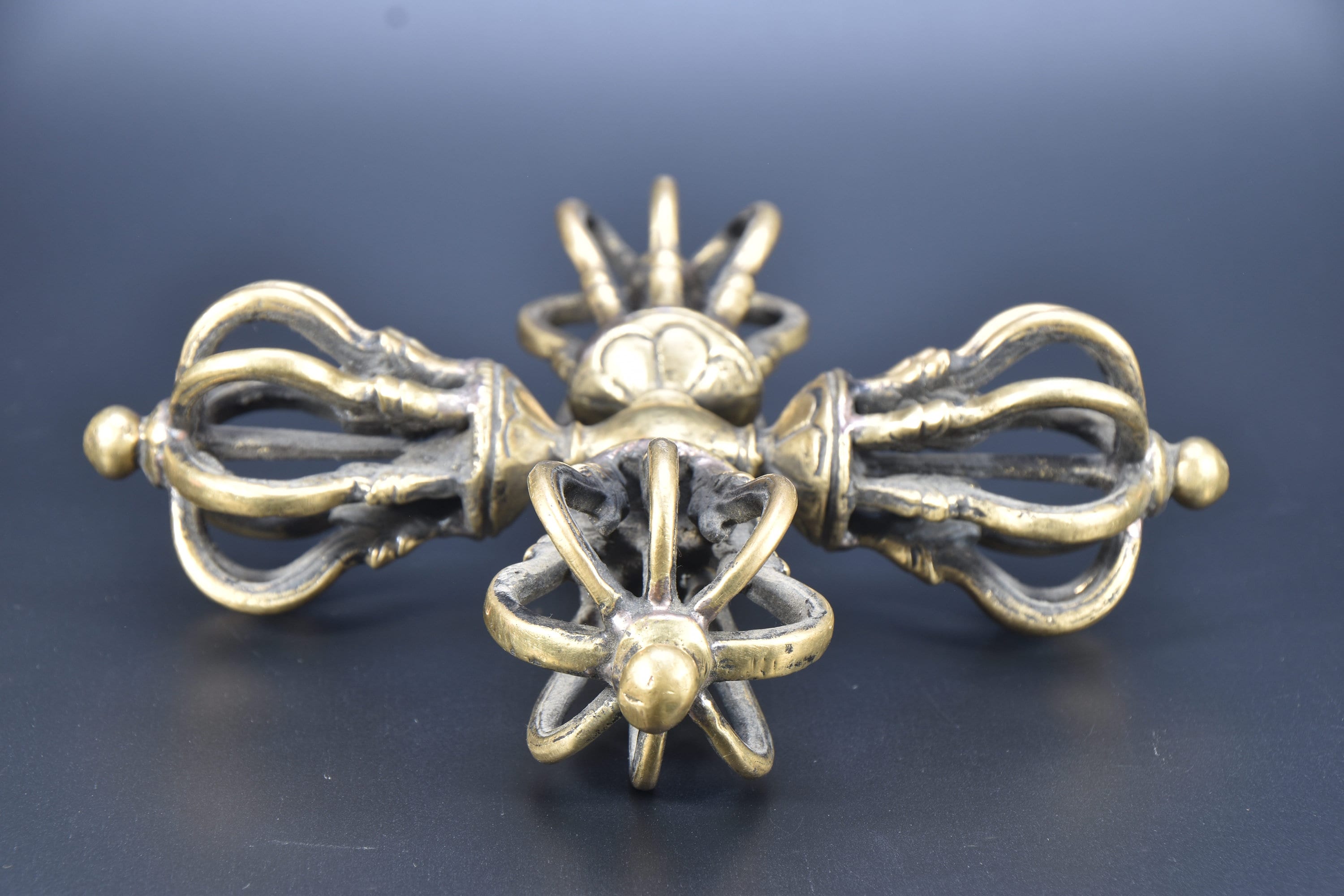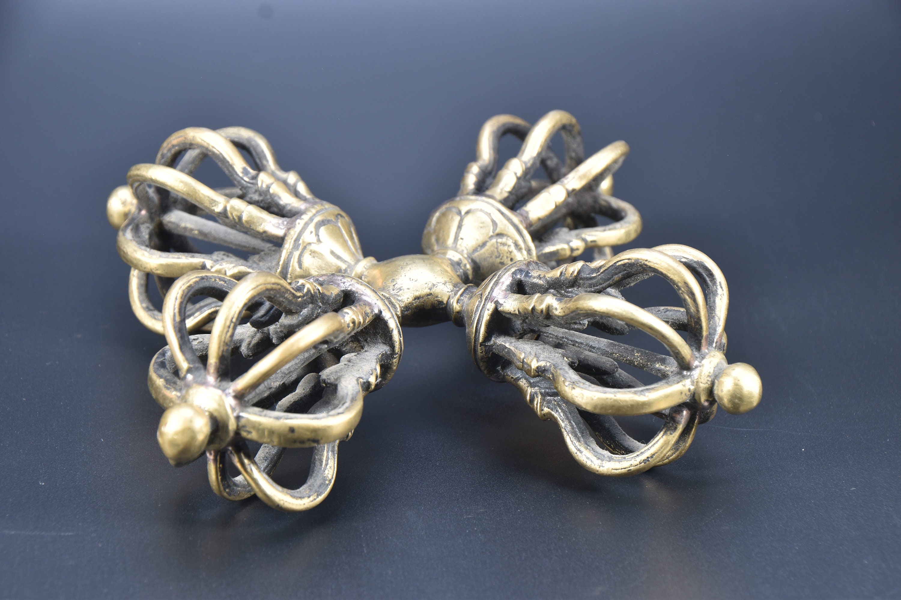 Antique Tibetan Brass Dorje Double Vajra, Handmade Tantrik Implement