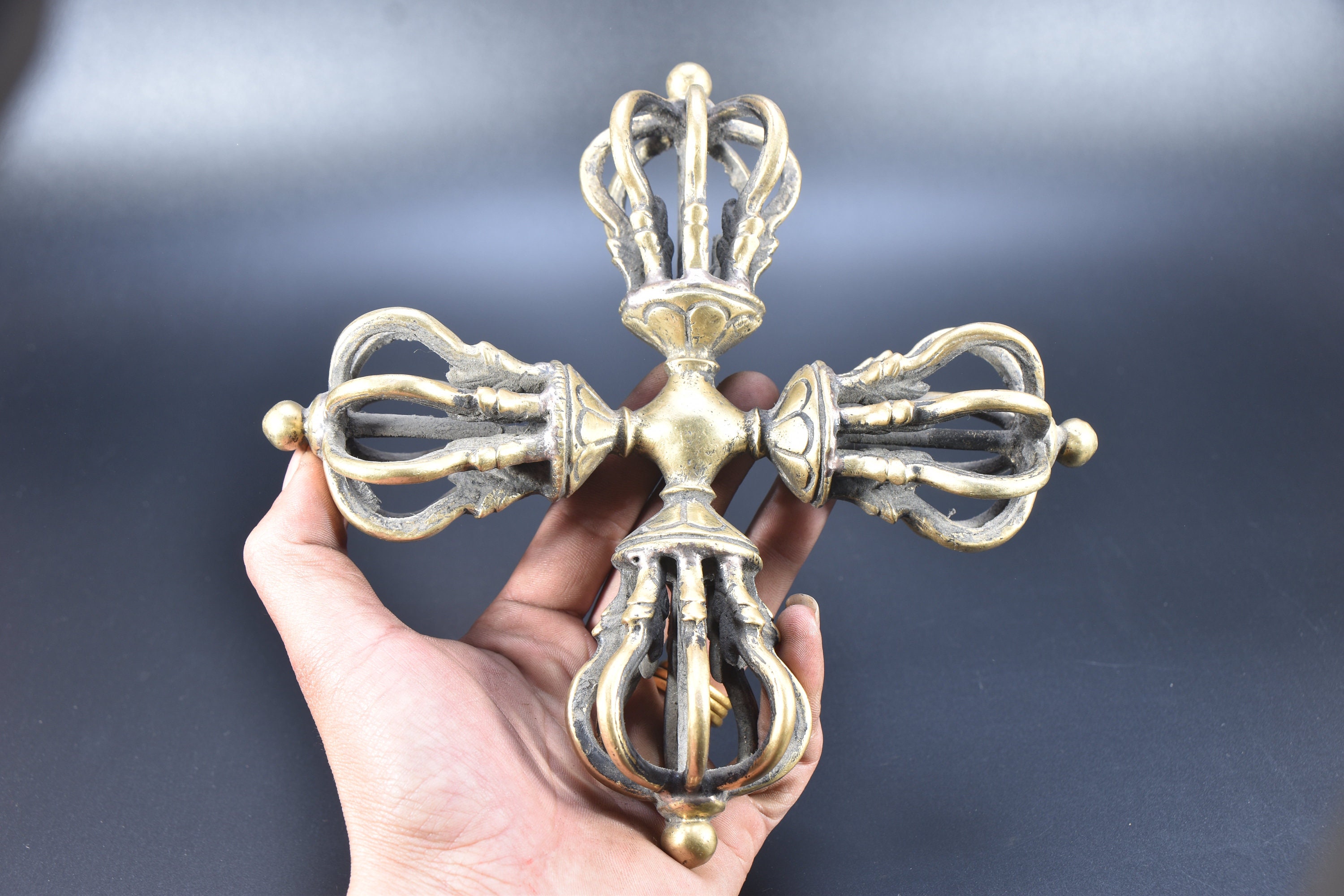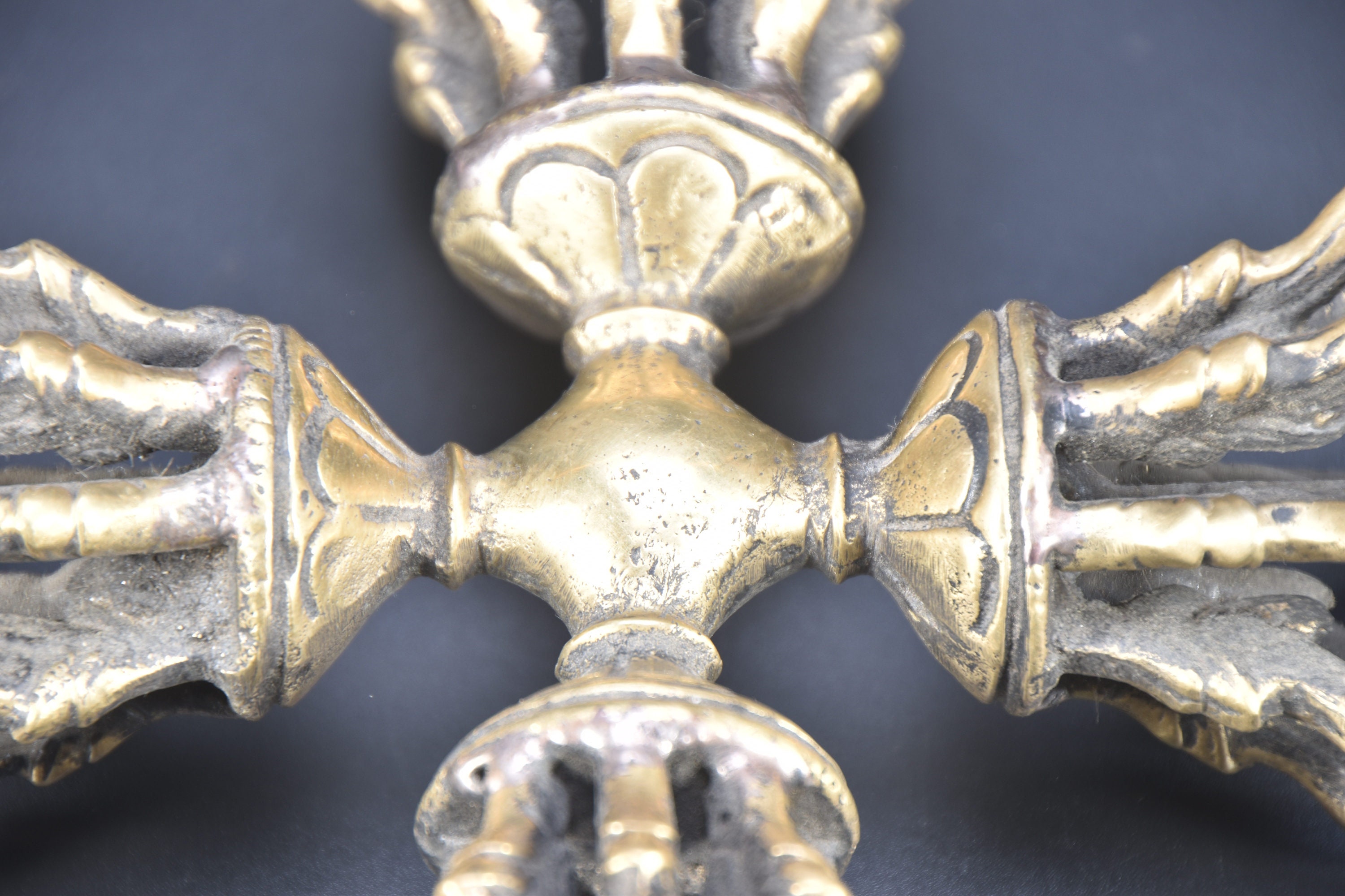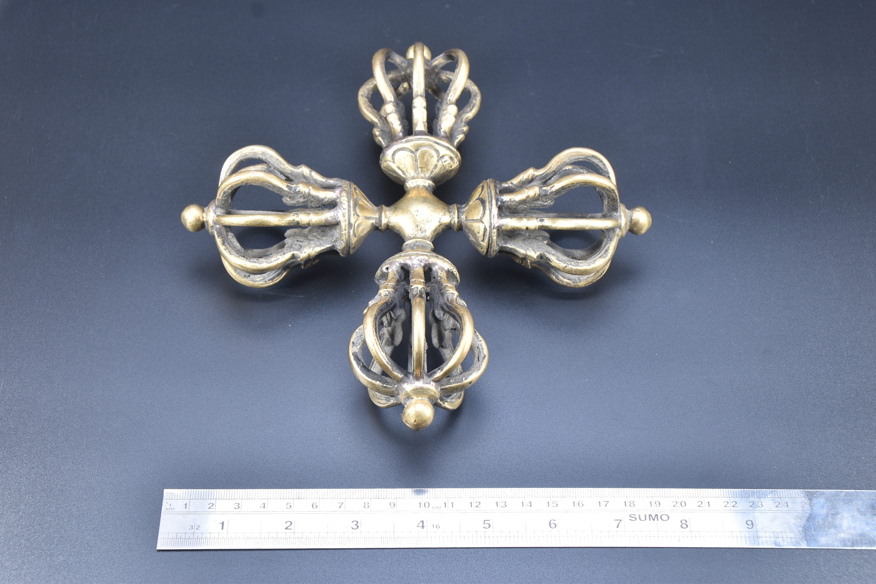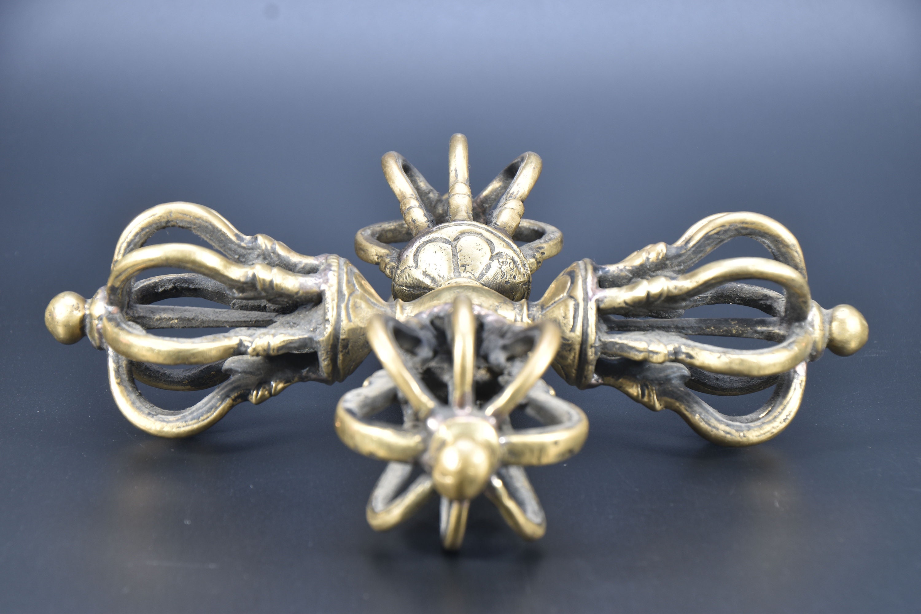 Antique Tibetan Brass Dorje Double Vajra, Handmade Tantrik Implement
