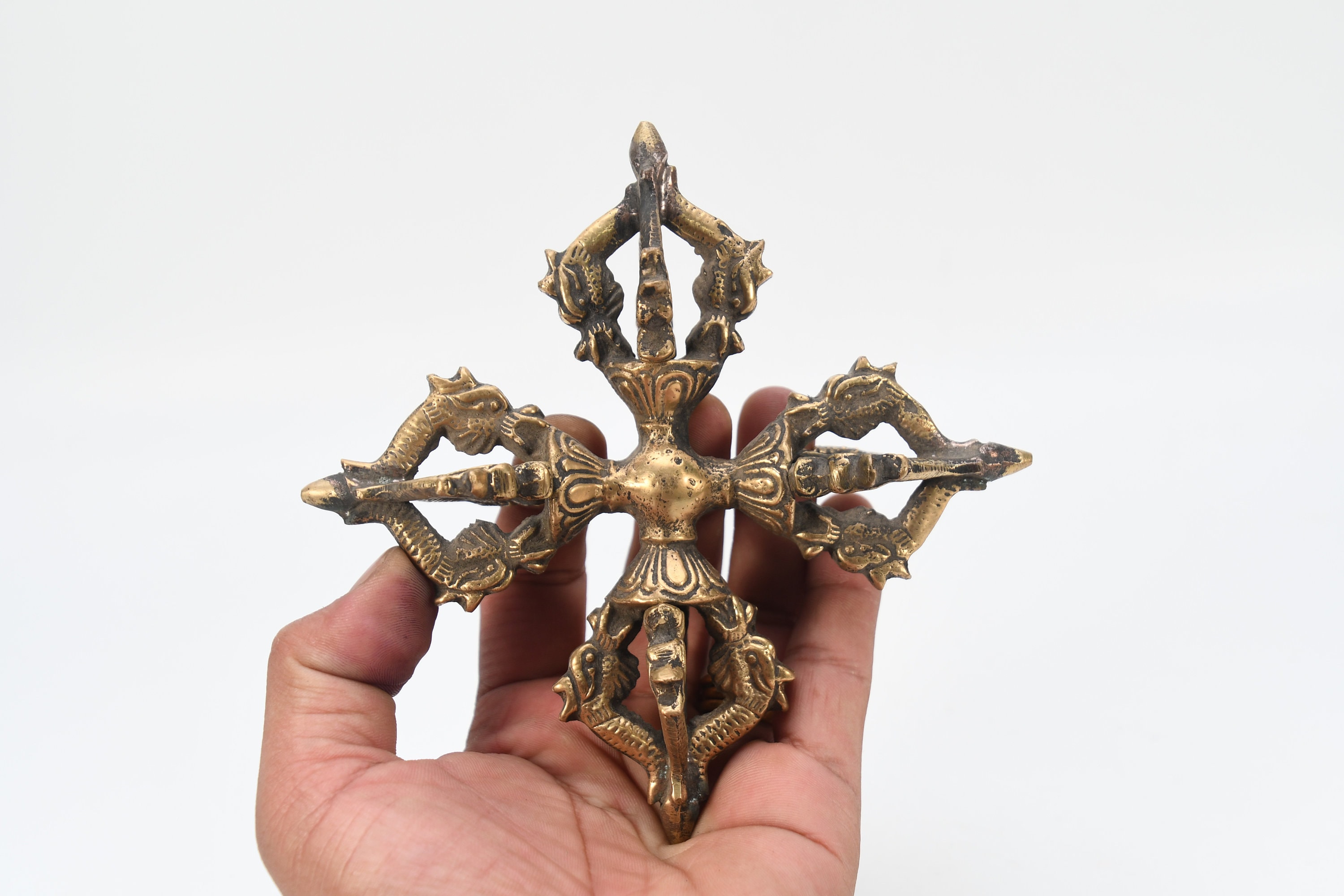 Handmade Brass Double Dorje, Tibetan Buddhist Cross, Nepal