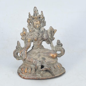 Handmade Copper Vasundhara Statue: Antique Buddhism Figurine, Nepal