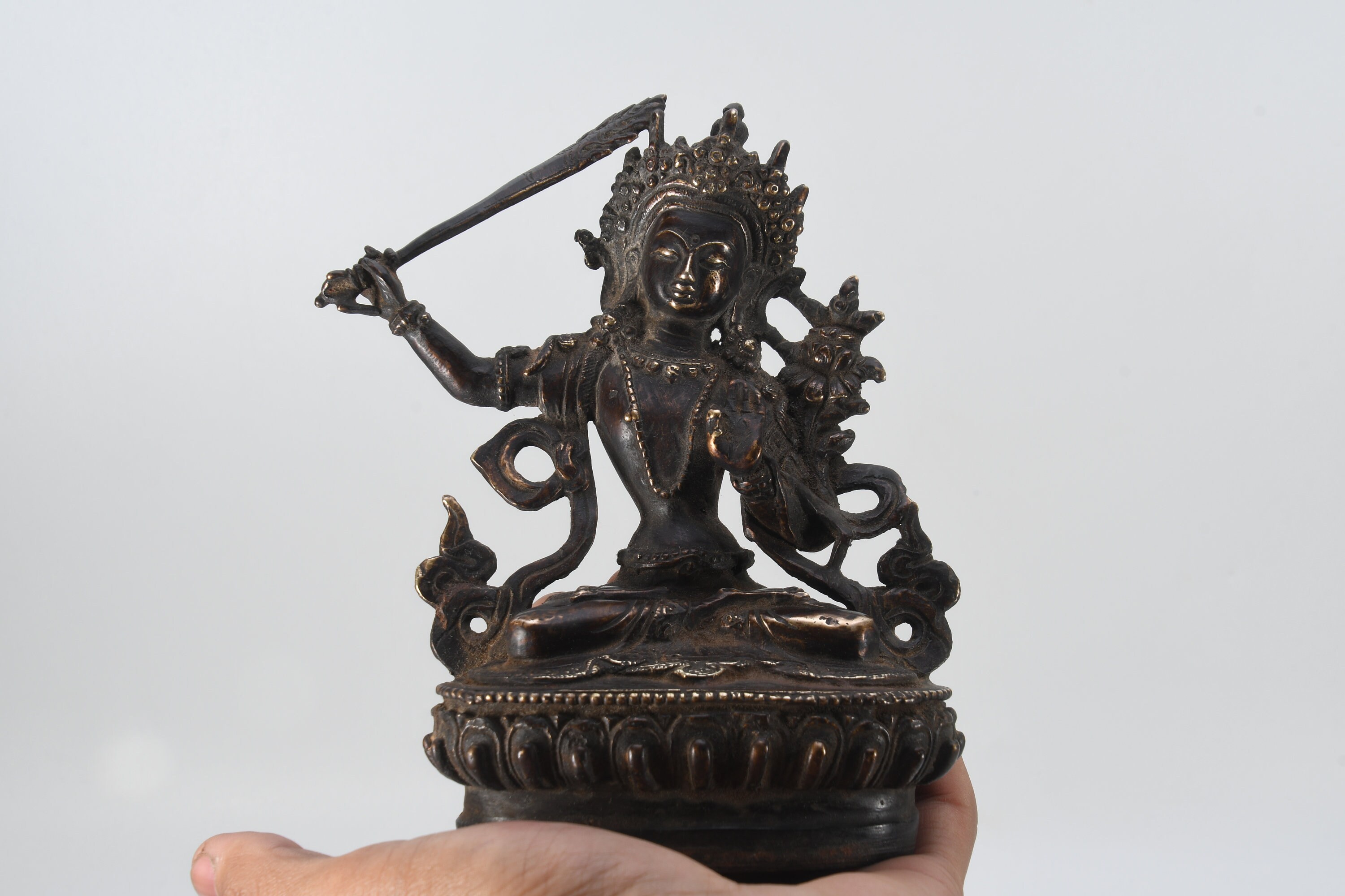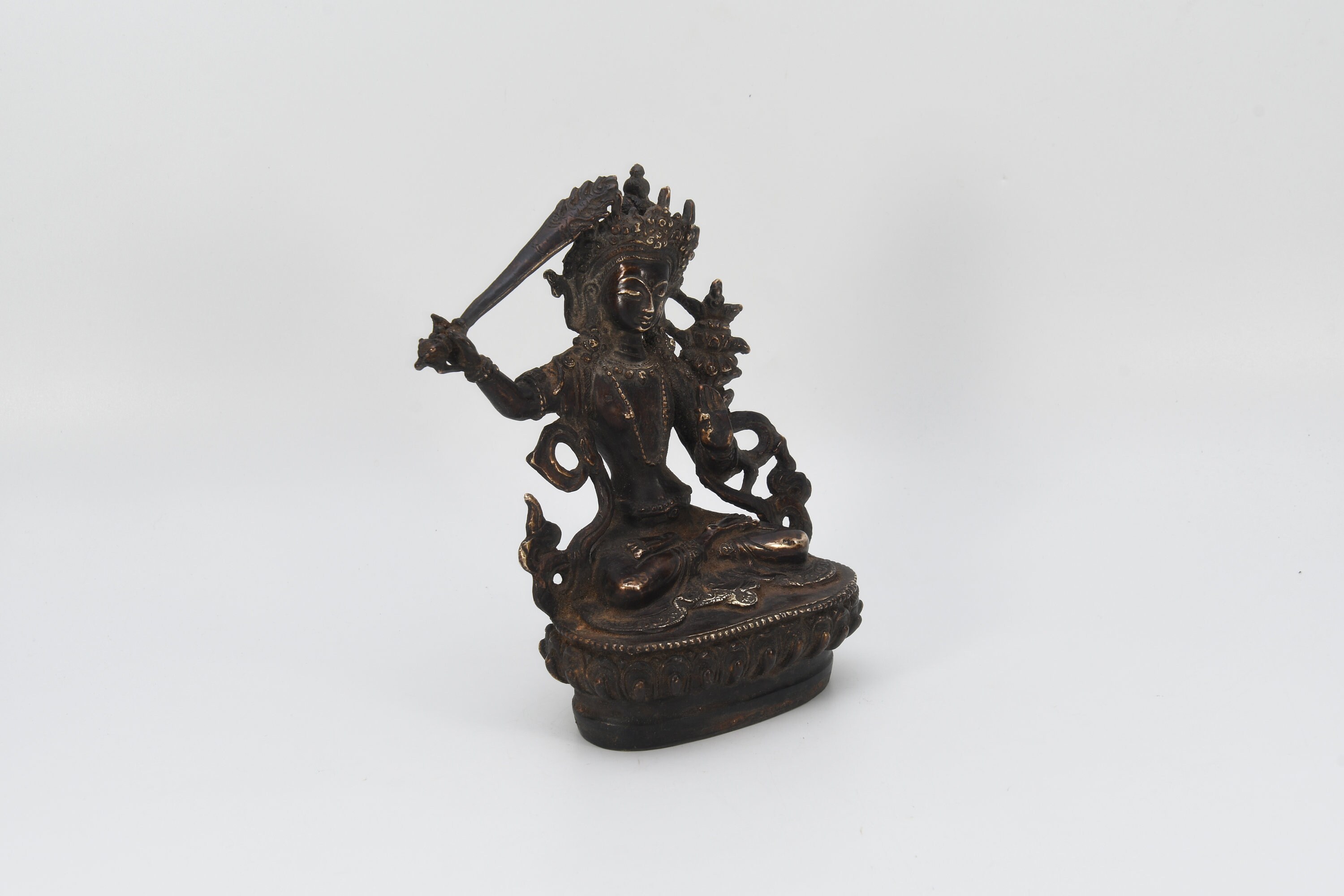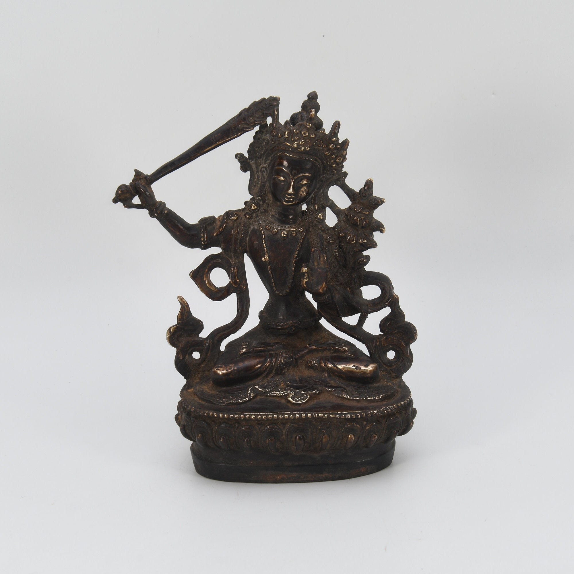 Manjushri is one of the most important iconic figures in Mahayana Buddhism anTd is known as the Bodhisattva of Great Wisdom. He is worshipped as the “Meditational Deity” in Esoteric Buddhism. he Sanskrit name of Manjushri is “Prajna” which means “gentle glory”, “He who is noble and gentle”, “soft glory”, “Wondrous Auspiciousness” and so on. The meditation halls, libraries, and studies room of Buddhist monasteries often consists of image of Manjushri Bodhisattva. Manjushri is one of the famous Bodhisattva who has been respected greatly in Chinese, Esoteric, and Tibetan Buddhism and so on.