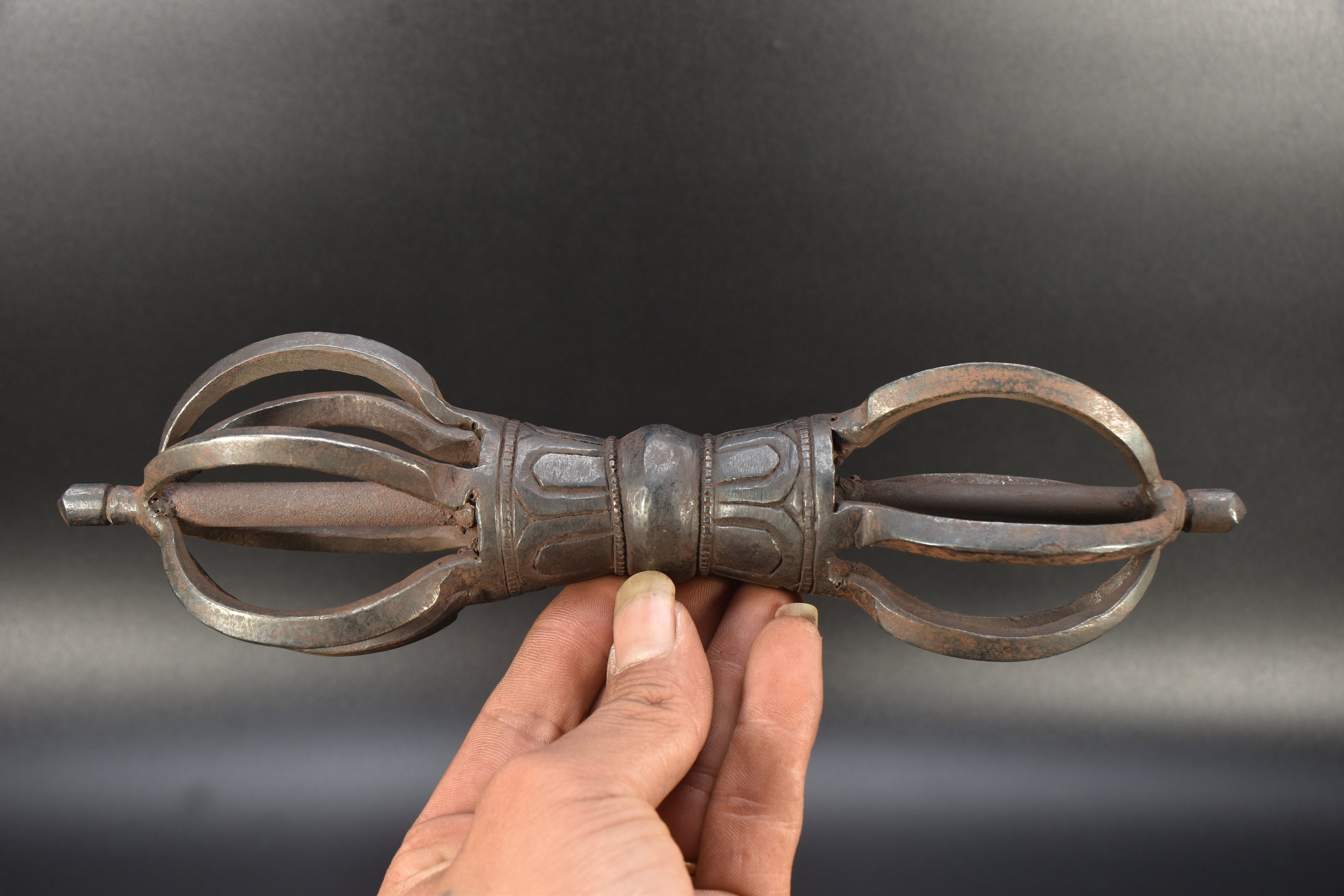 Iron Buddhist Dorje, Tibetan Handmade Double Vajra Cross