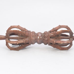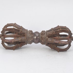 Vajra is a Sanskrit word meaning both thunderbolt and diamond. It is a weapon that is used as a ritual object to symbolize both the properties of a diamond (indestructibility) and a thunderbolt (irresistible force). The five-pronged vajra is the most commonly seen vajra.