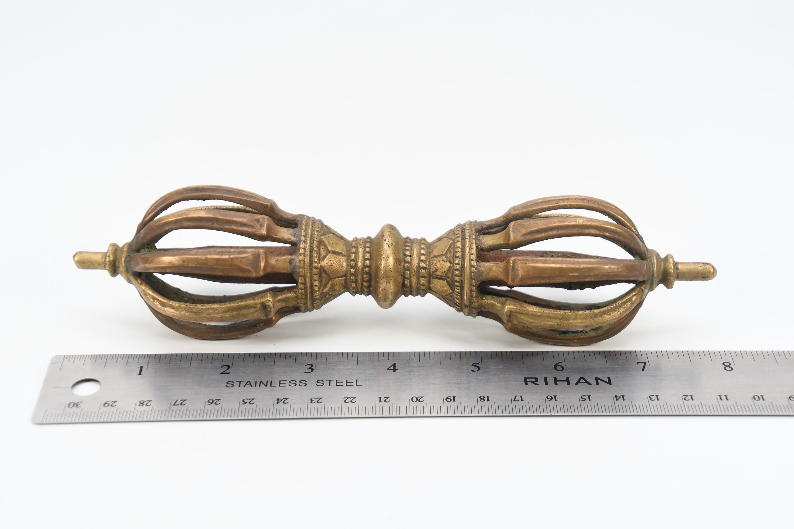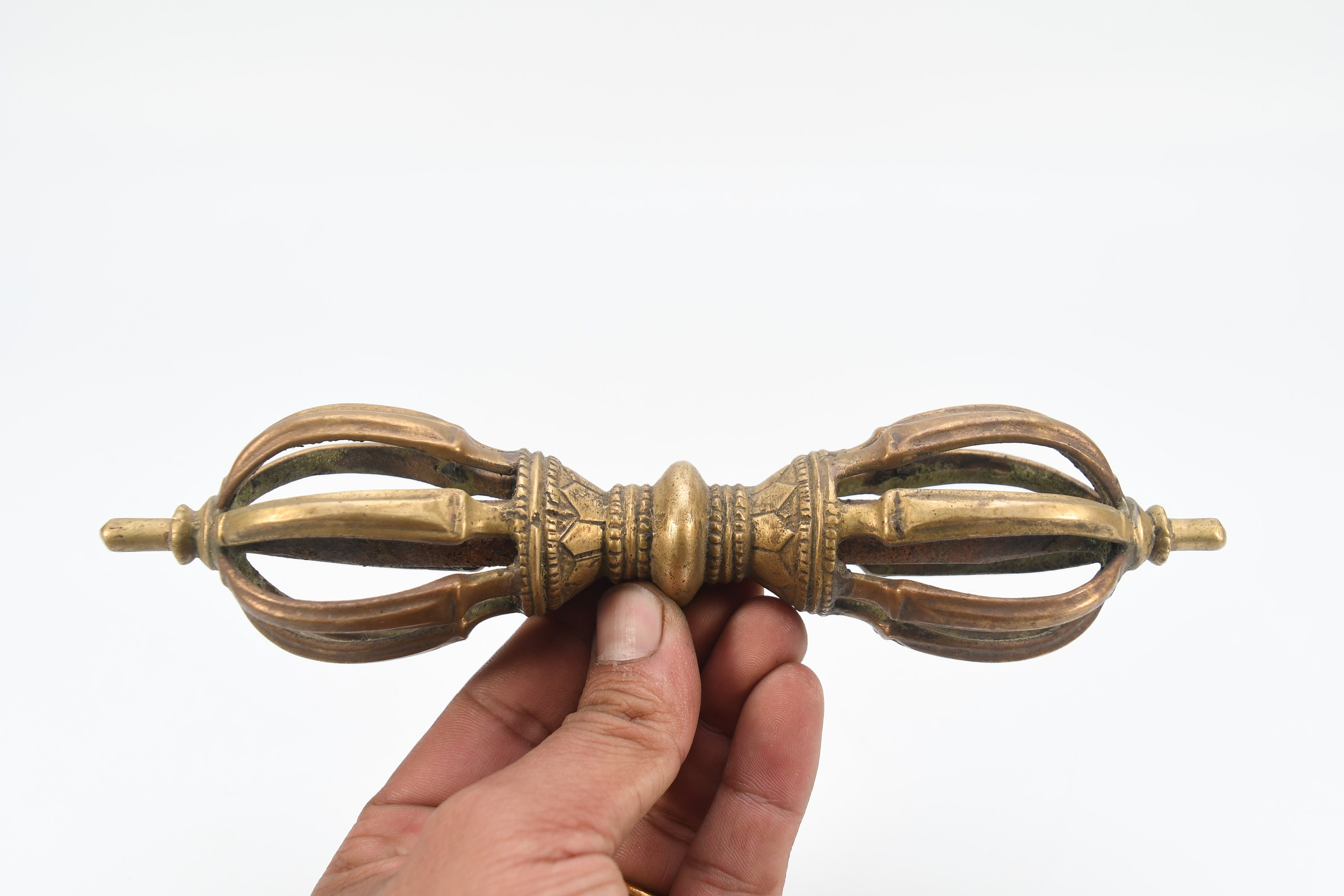 Brass Dorje Vajra, Tibetan Buddhist Ritual Artifact, Nepal