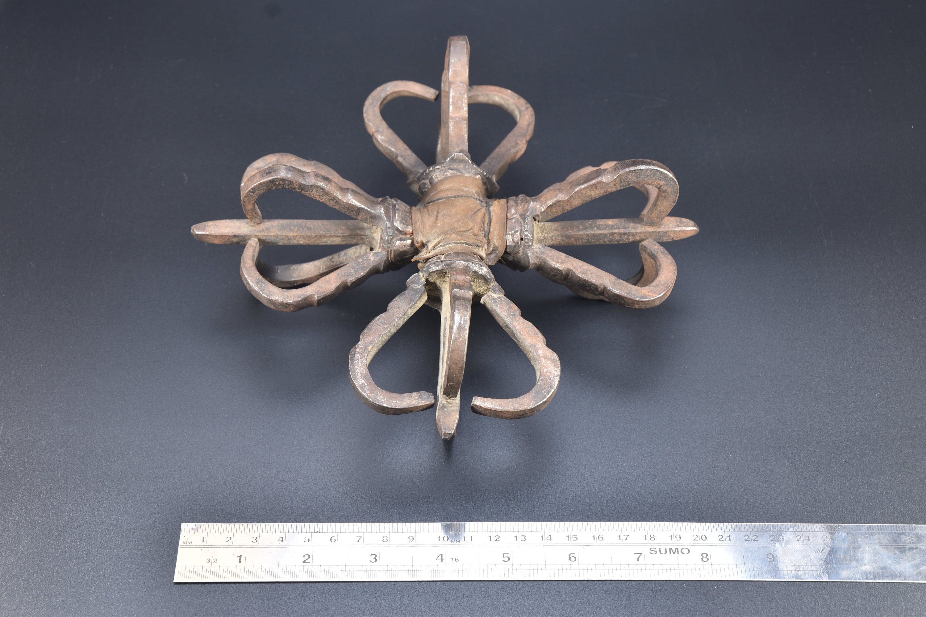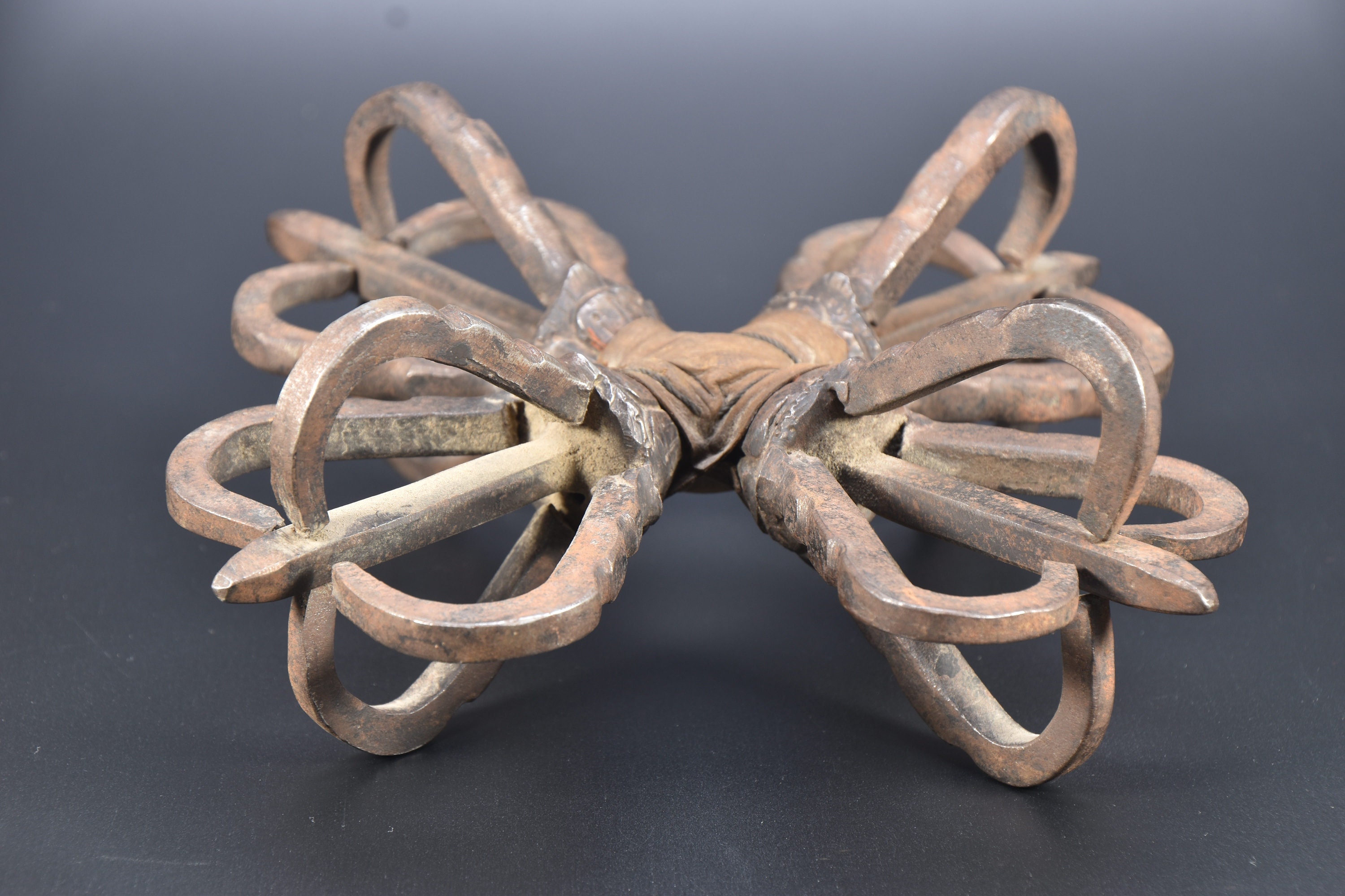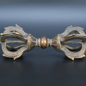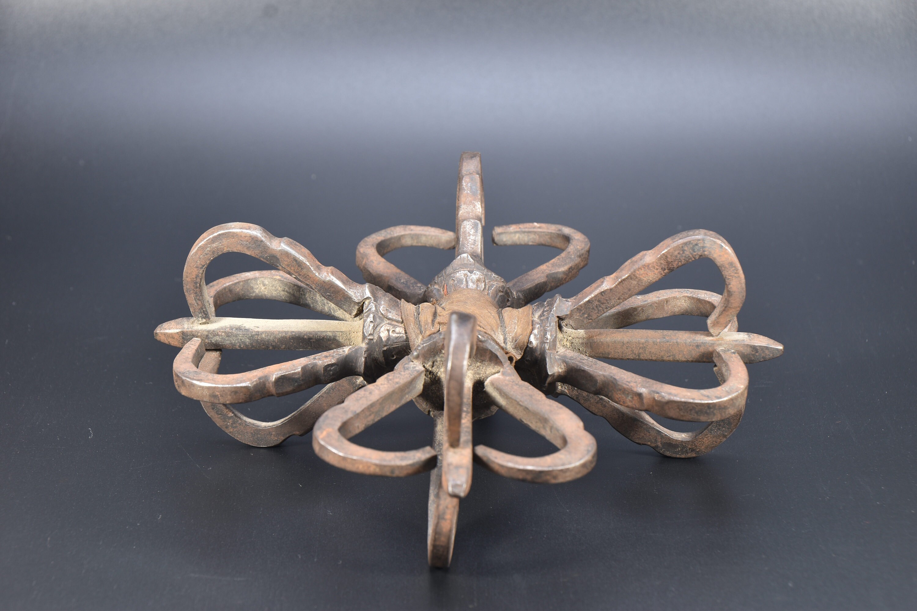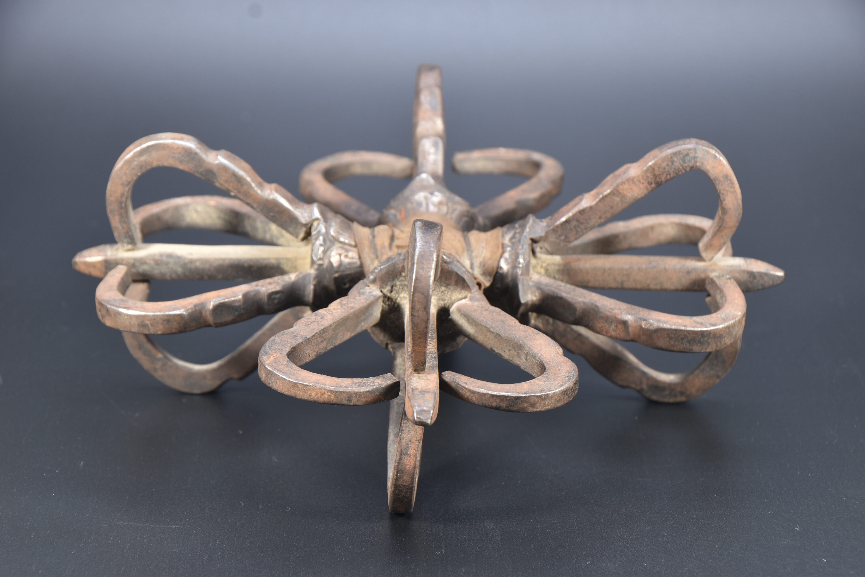 Iron Antique quad Head Master Quality Handmade Tantrik Dorje Nepal Masterpiece Tibetan Double Dorje