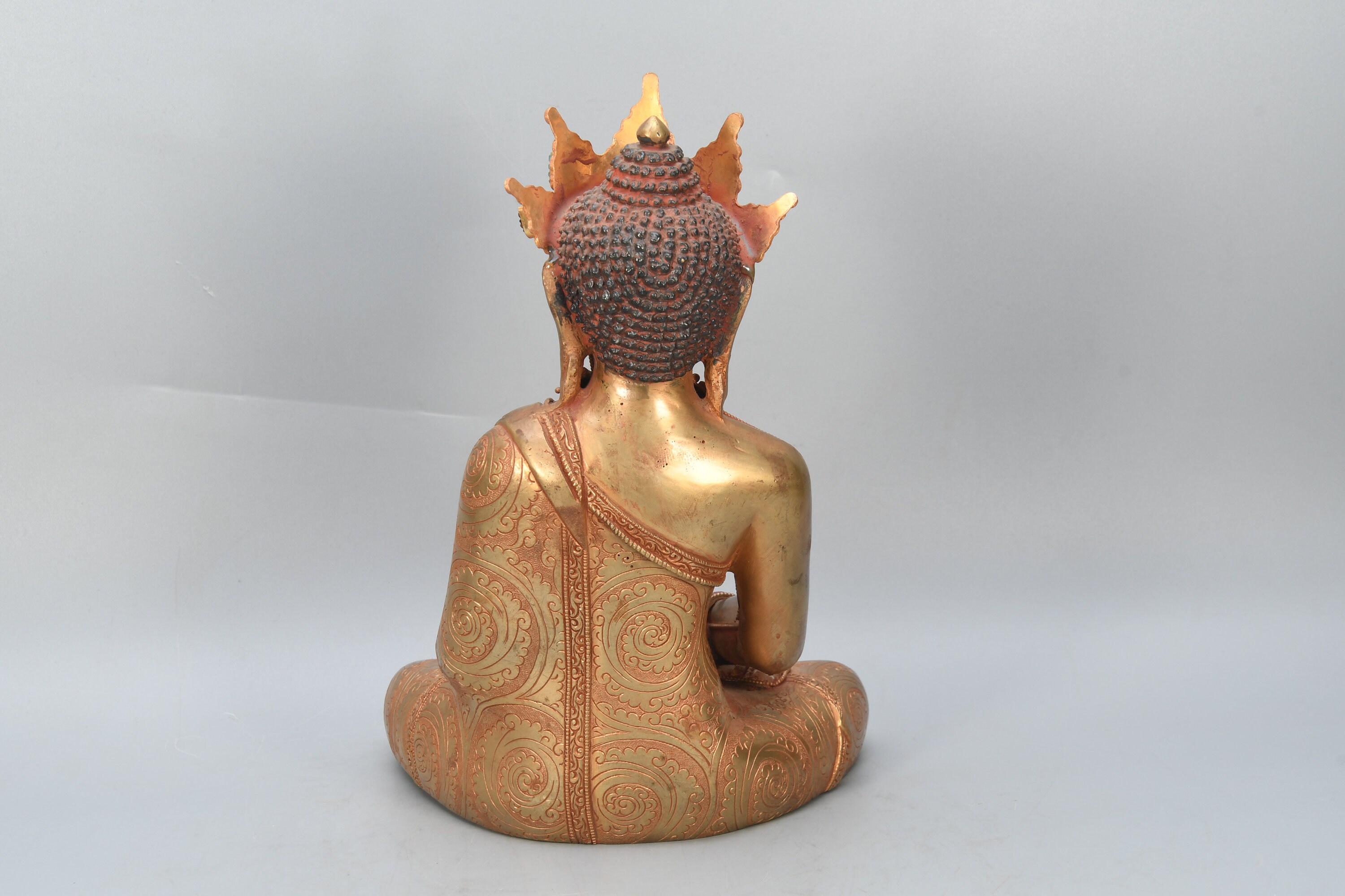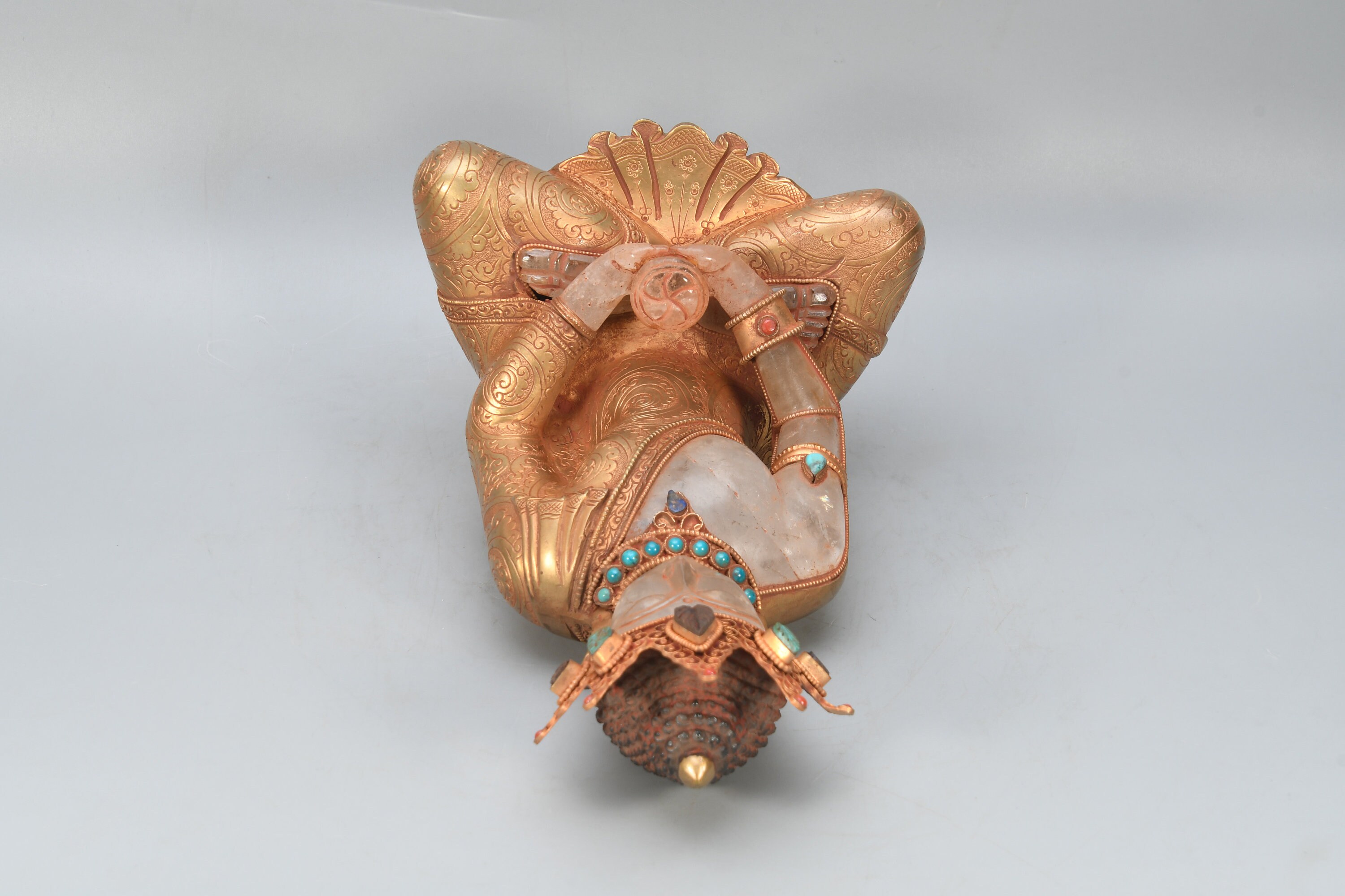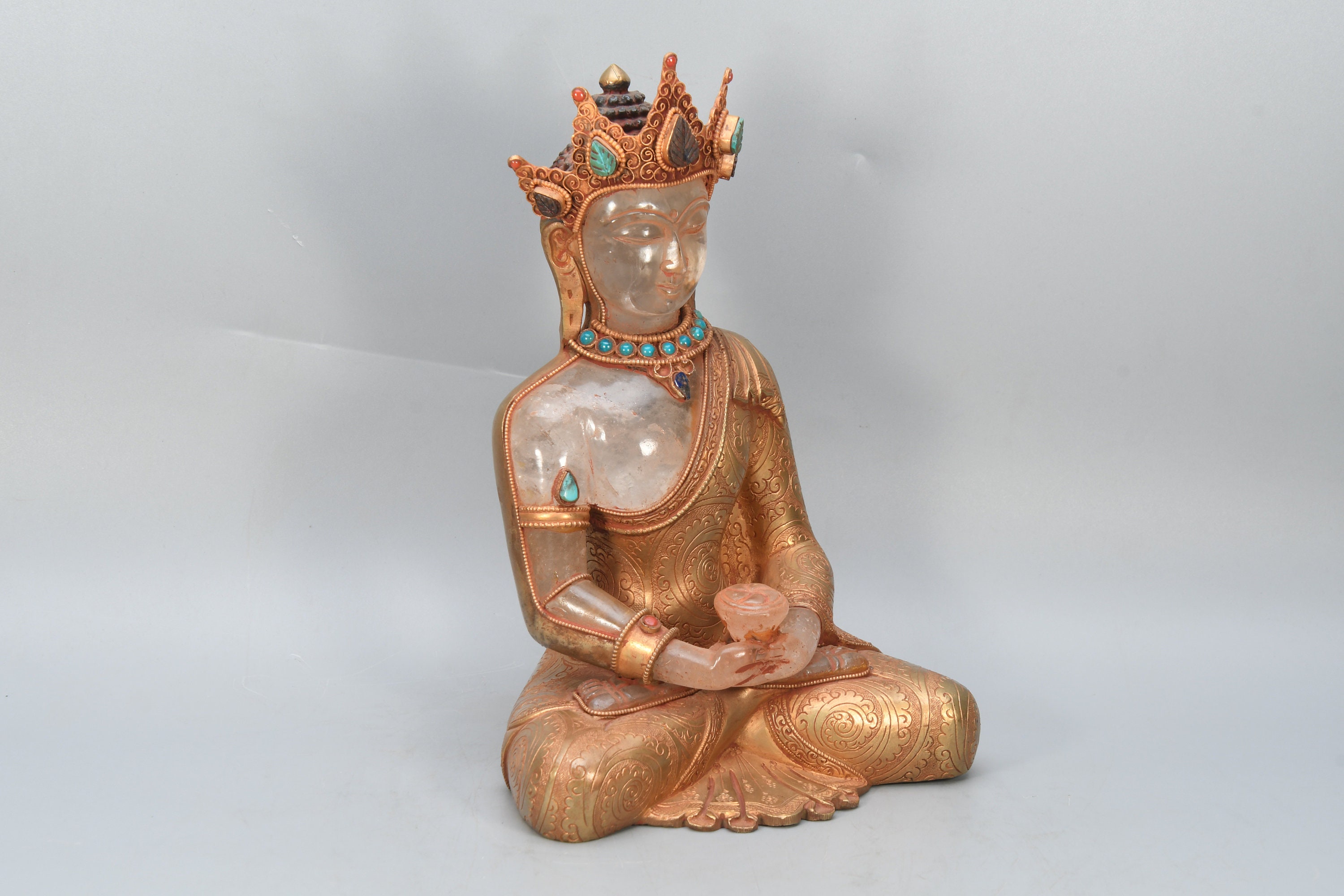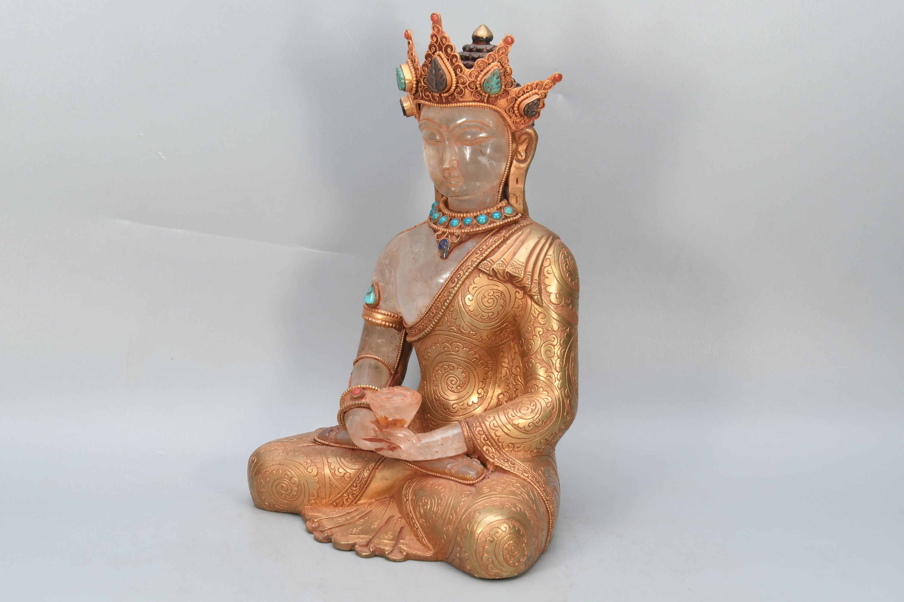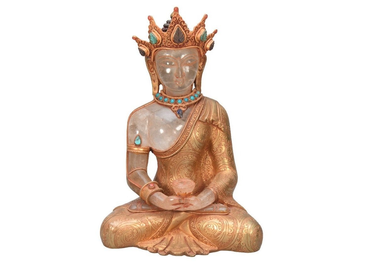 Crowned Crystal Amitabha Buddha Statue, Gold Gilted Tibetan Decor