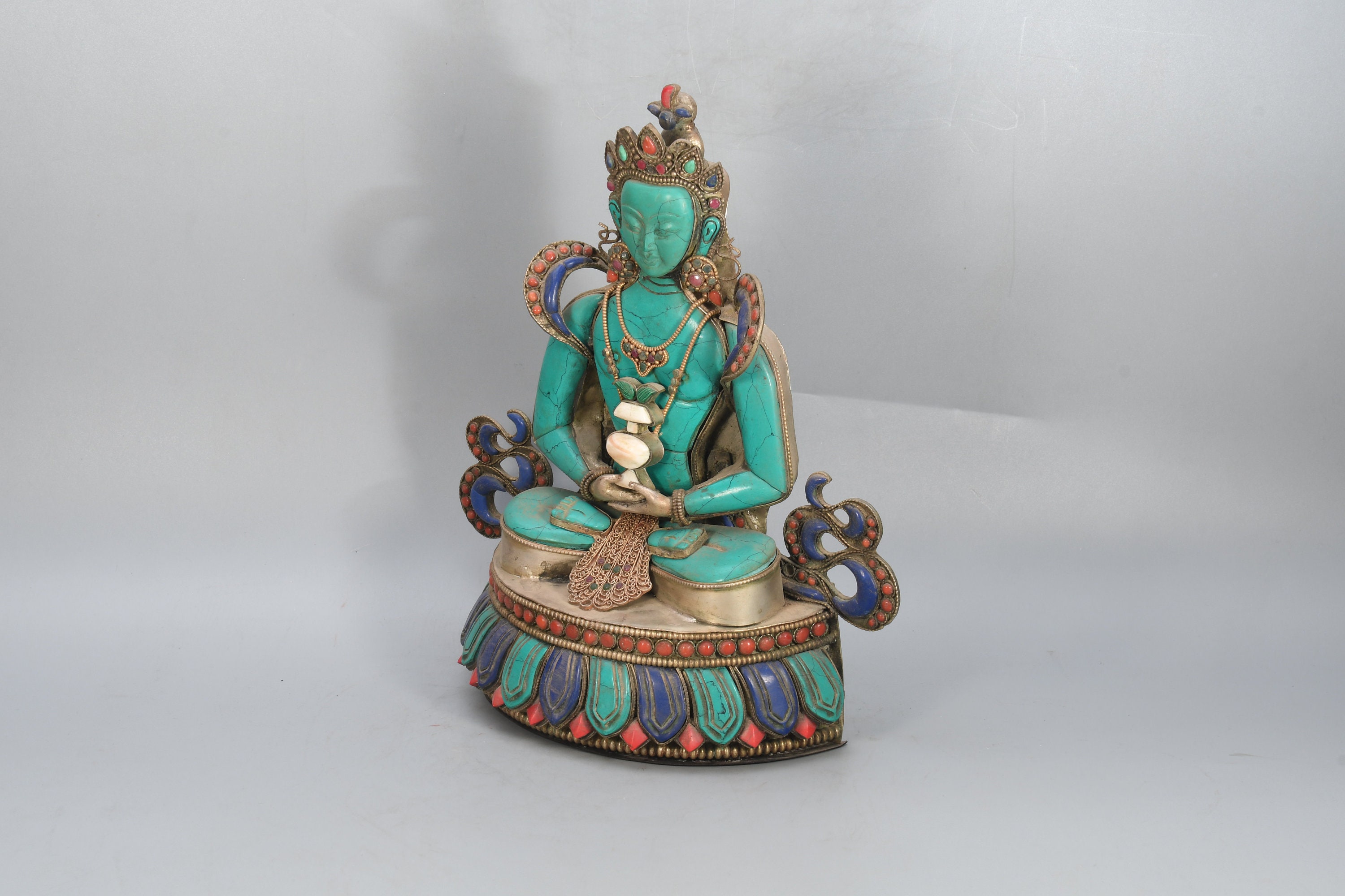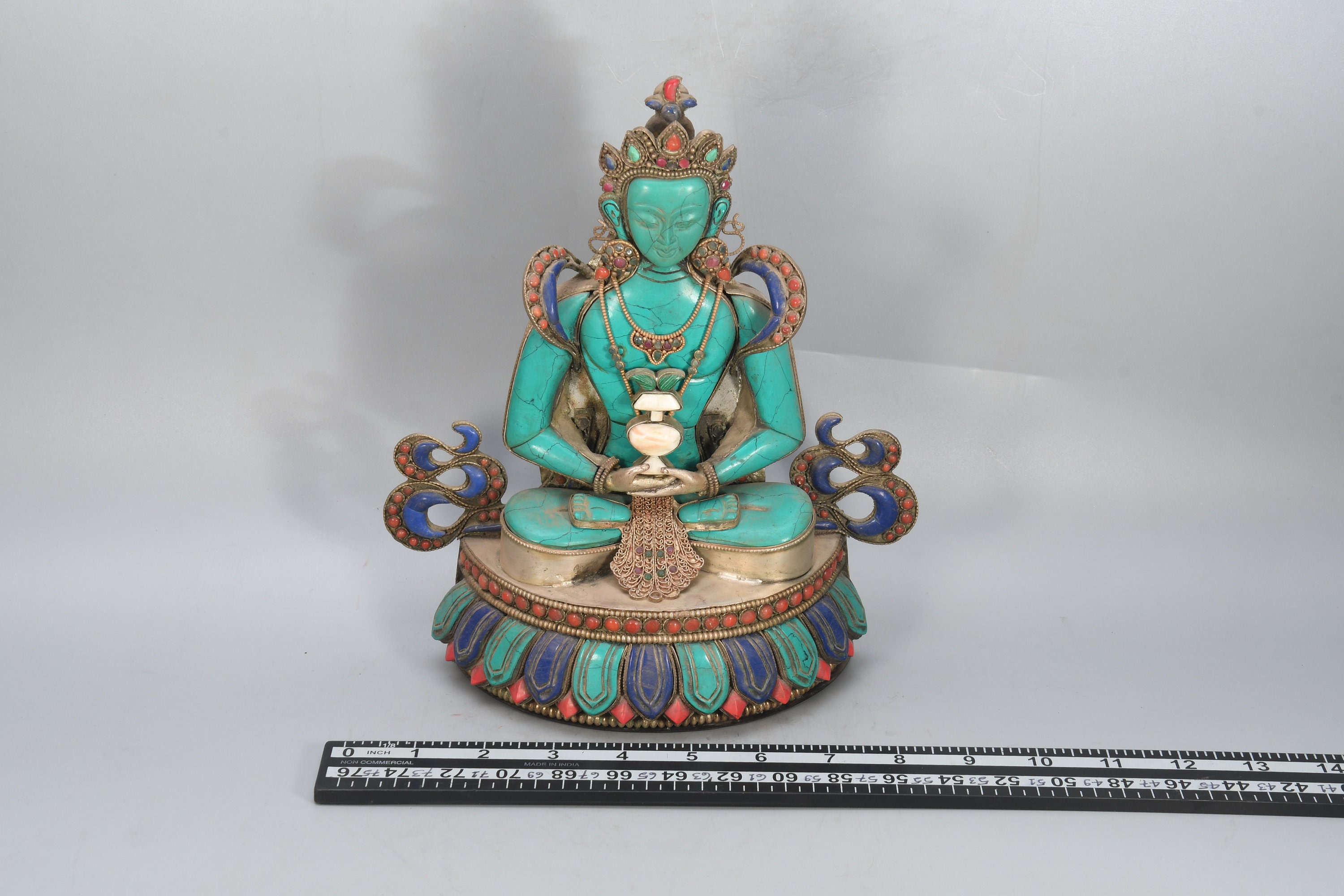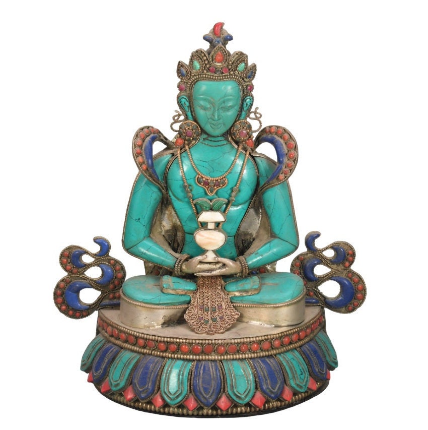 This sculpture, like most Tibetan and Nepali art, may be used in meditation as an aid to visualize one’s own enlightenment, as well as that of all other beings. The sacred sculpture gives the practitioner direct access to the Buddha once it is ritually empowered as an embodiment of the Buddha. It may then receive the obeisance, offerings, confessions, and prayers of every variety from the practitioner. These sacred images are invited to take a place of honor on a Buddhist altar, whether at home or in a monastery. There they become a focal point for meditation and ritual.In the metaphysical world, clear quartz crystal is the supreme gift of Mother Earth. Even the smallest is imbued with the properties of a master healer teacher. Ancients believed these stones to be alive, taking a breath once every hundred years or so, and many cultures thought them to be incarnations of the Divine. Meditating with a clear quartz crystal opens the mind and heart to higher guidance, allowing the realm of the Spirit to be transmitted and translated into the world of physical form.The detail and craftsmanship displayed in this exquisite crystal Buddha statue is absolutely remarkable.