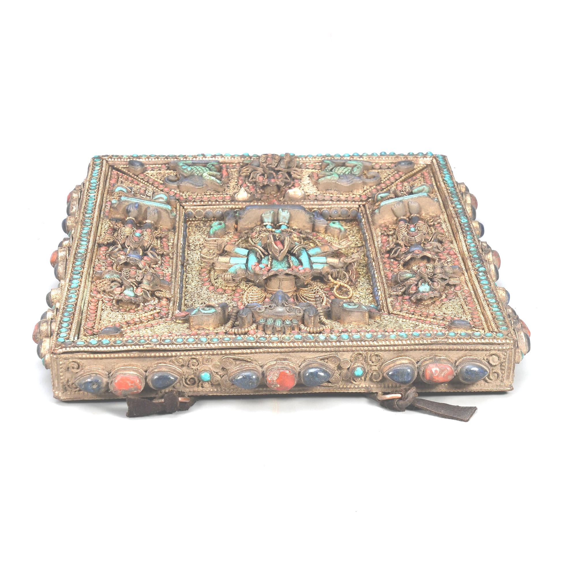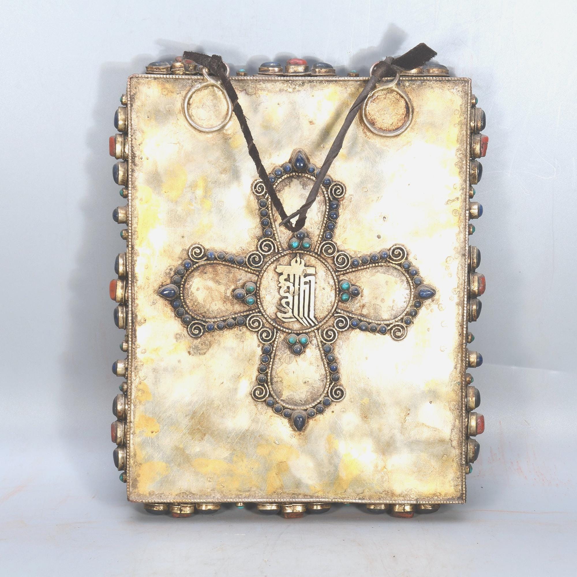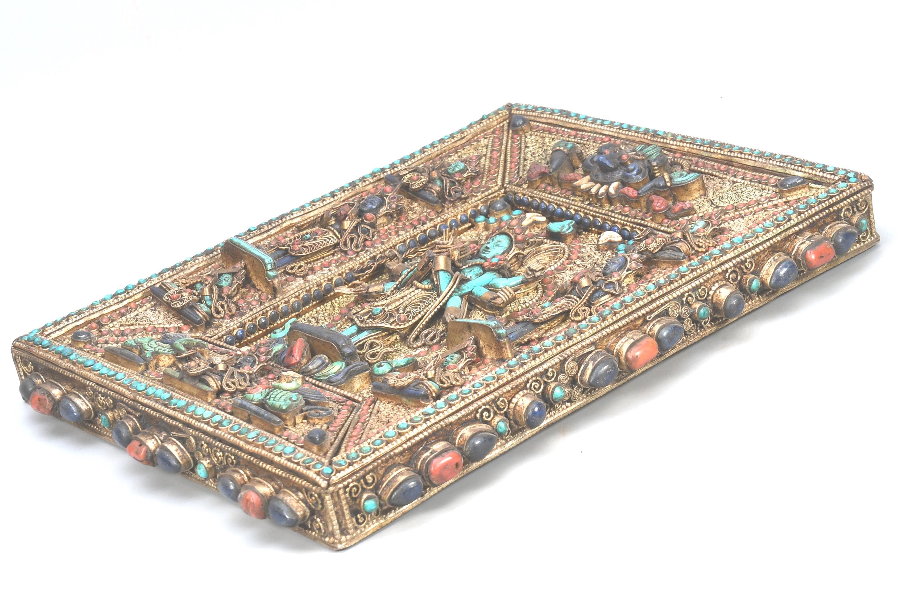 Handmade Carved Buddha Thanka Wall Hanging, Gold Copper Gemstone Art