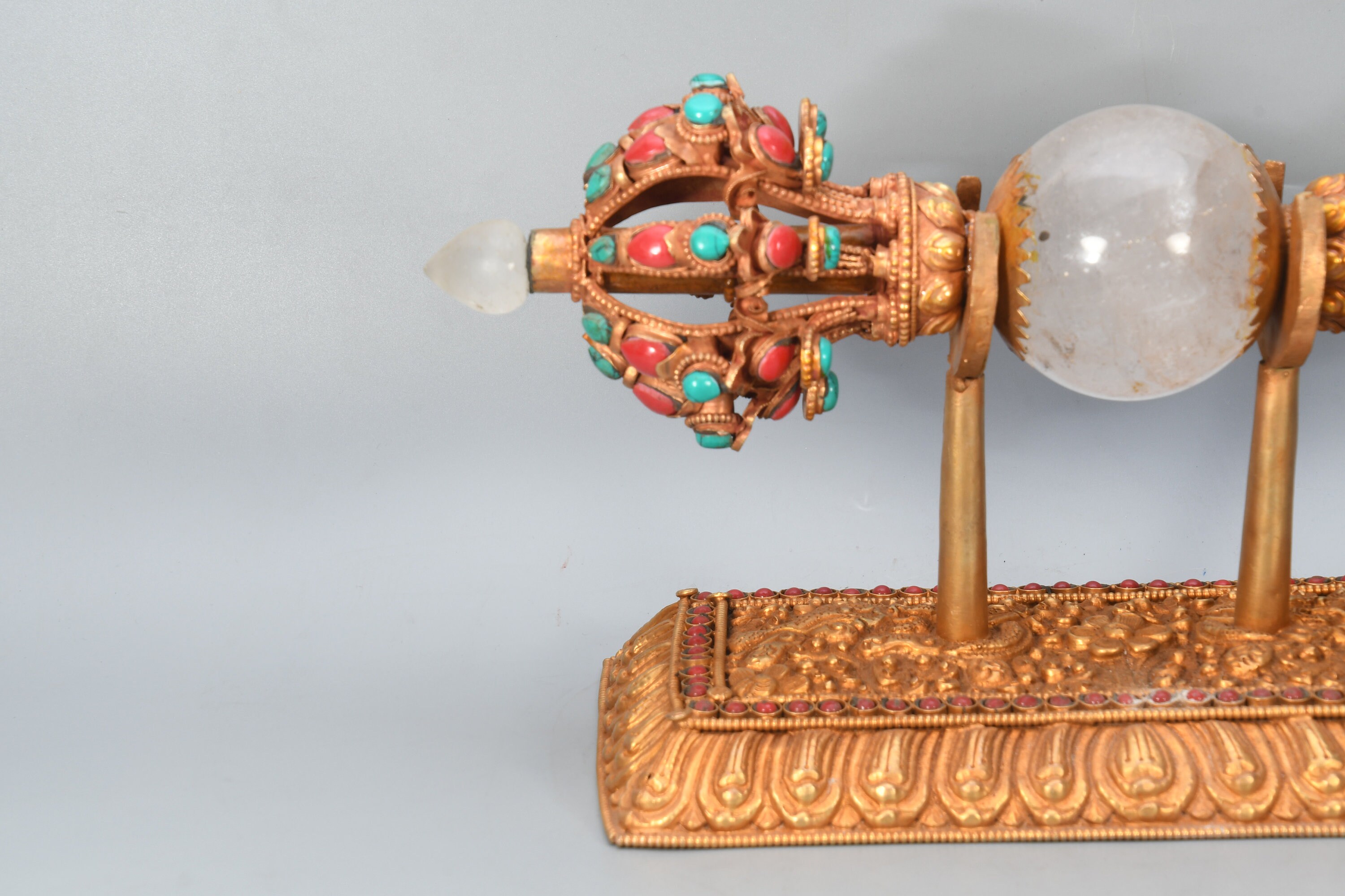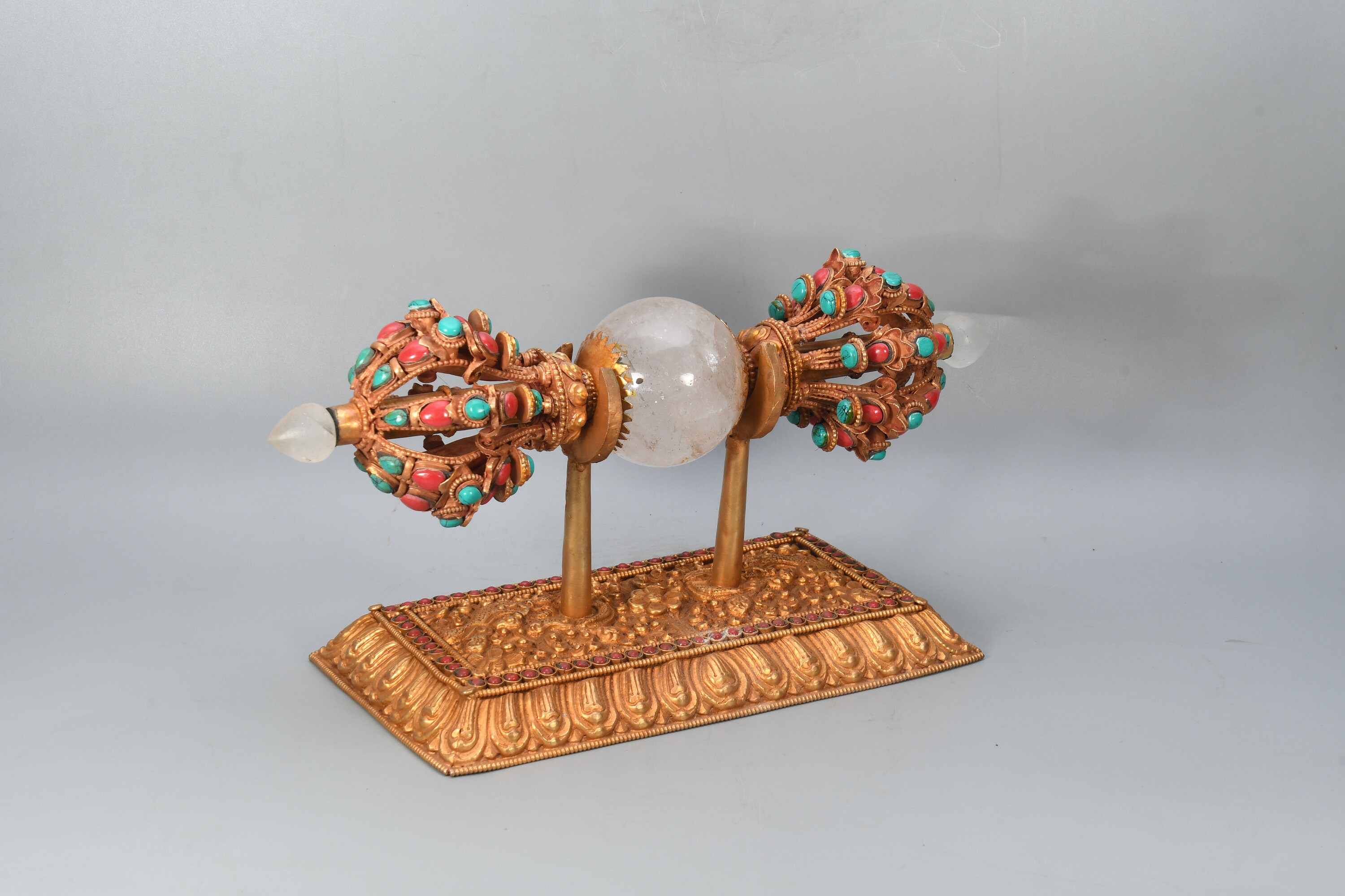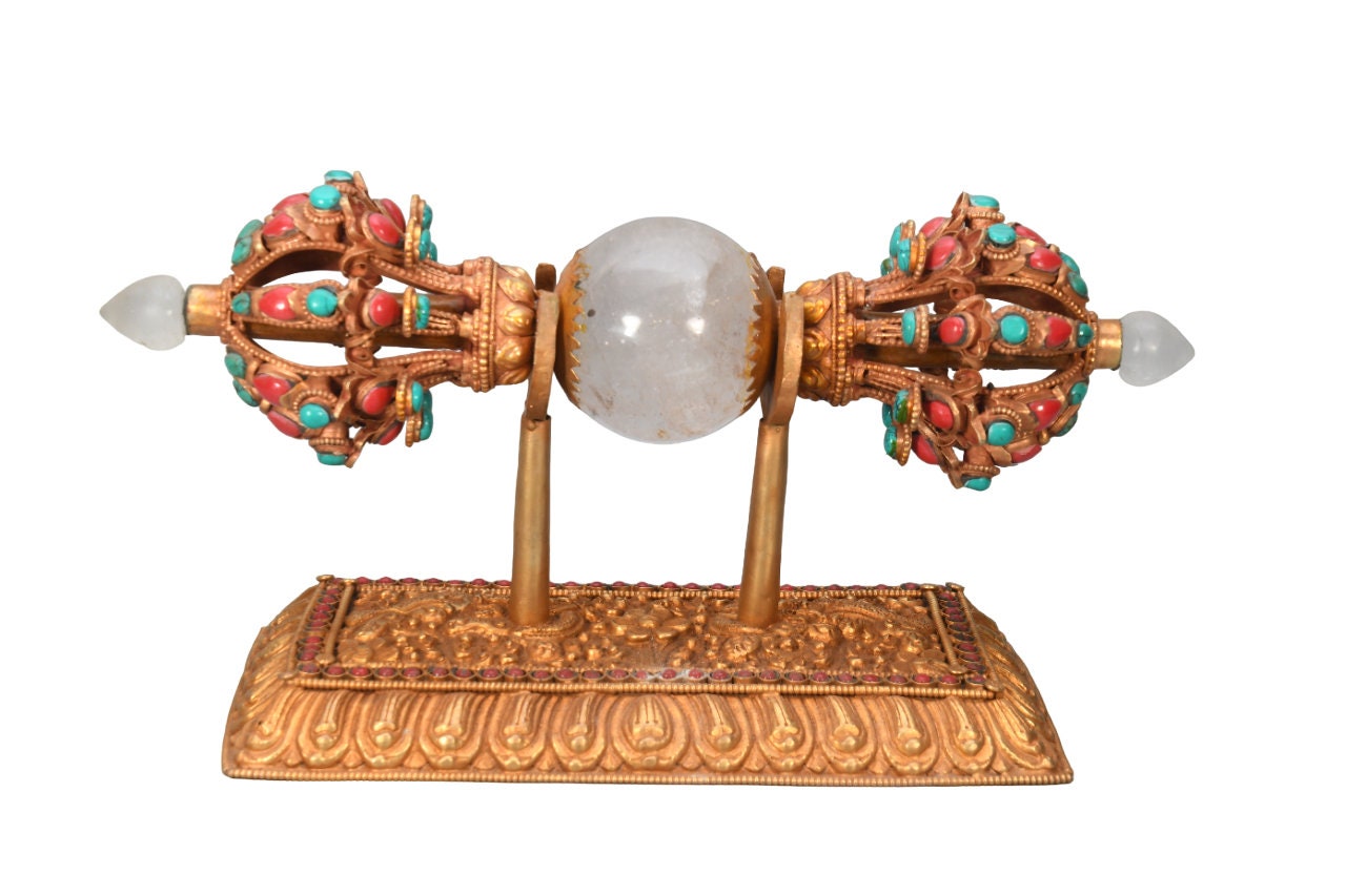 Gold Gilted Crystal Dorje Vajra - Tibetan Amulet, Nepal