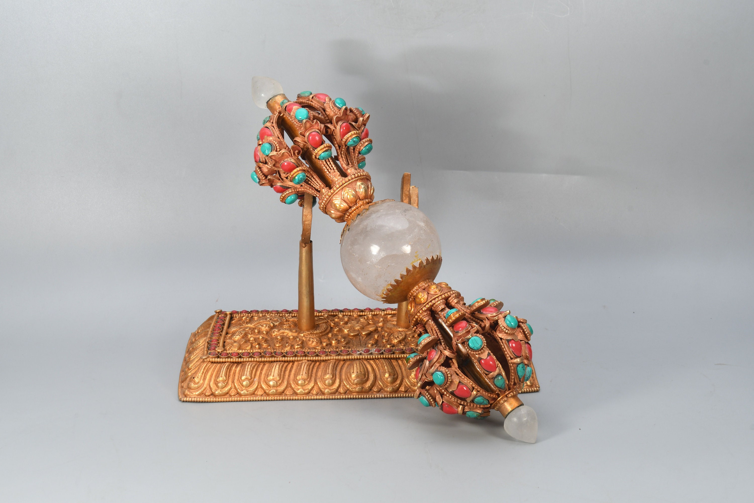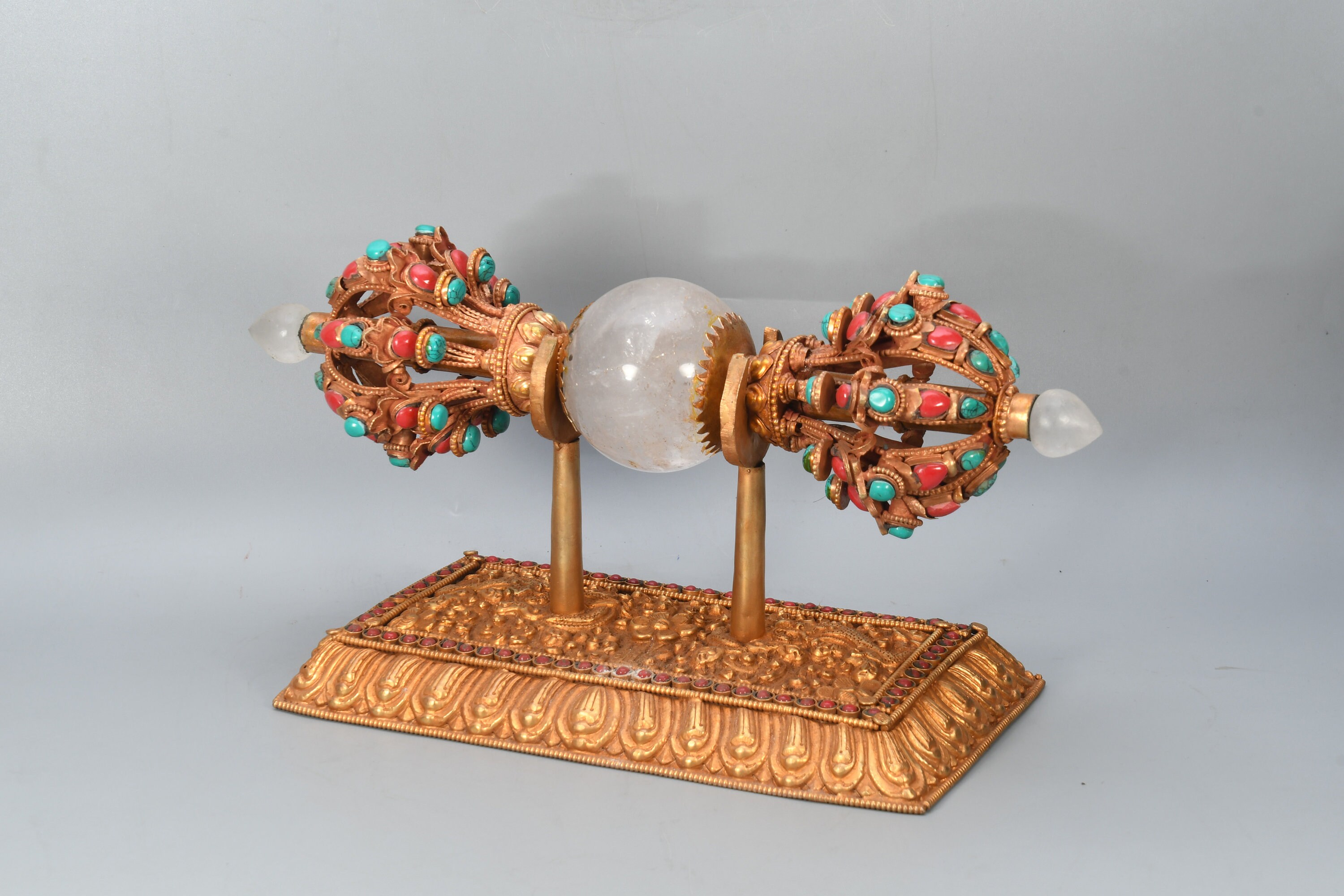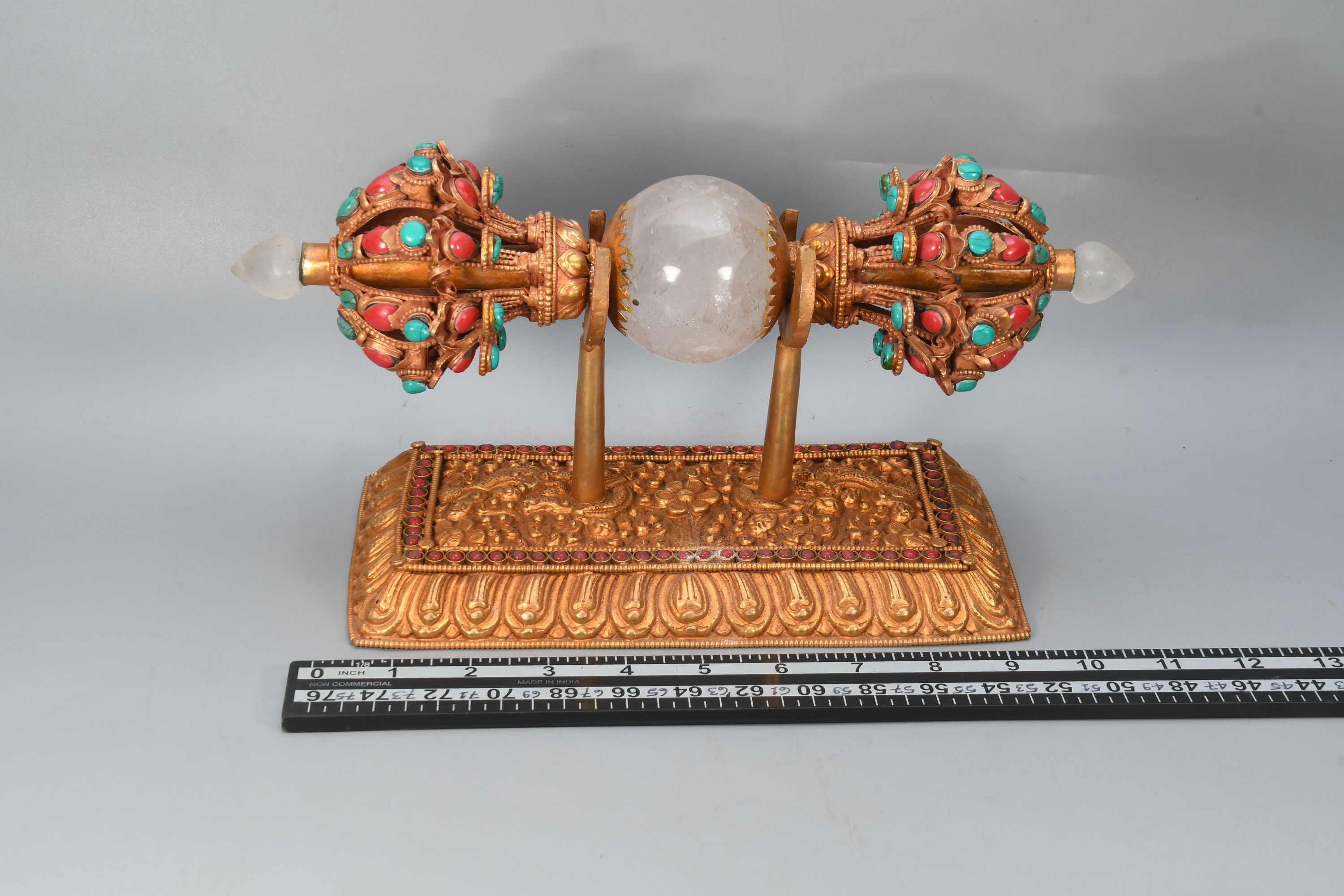 Gold Gilted Crystal Dorje Vajra - Tibetan Amulet, Nepal
