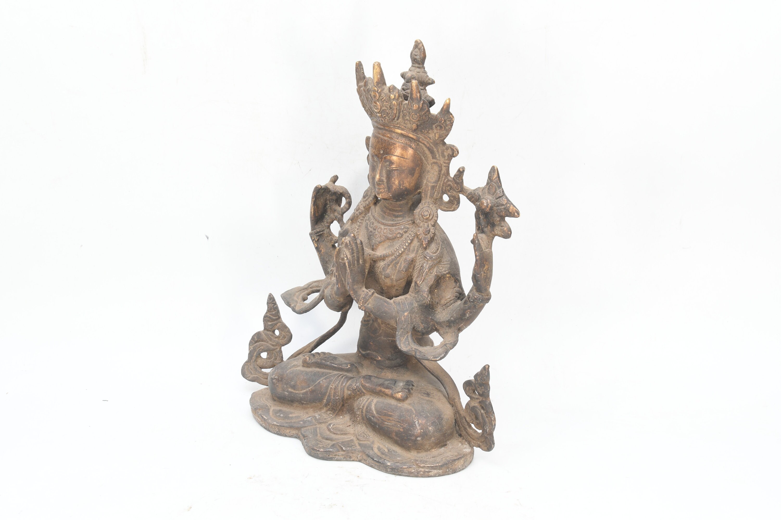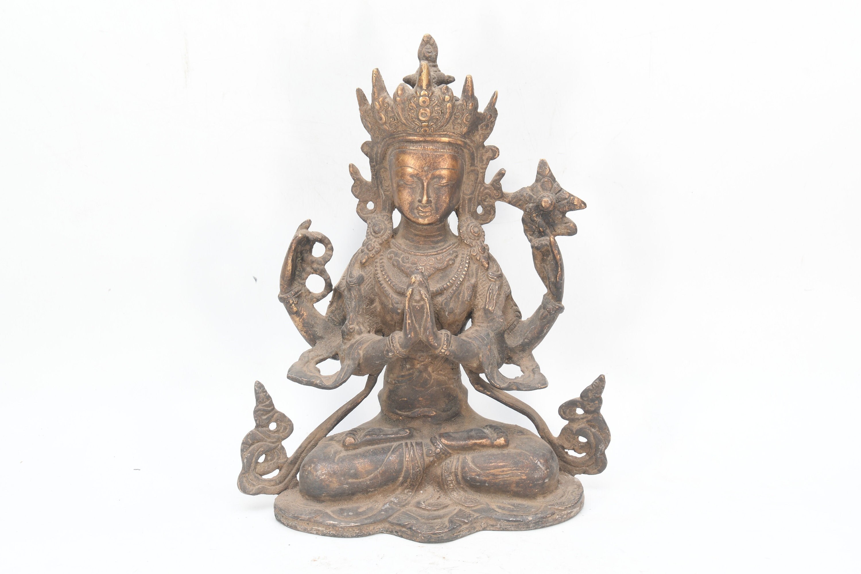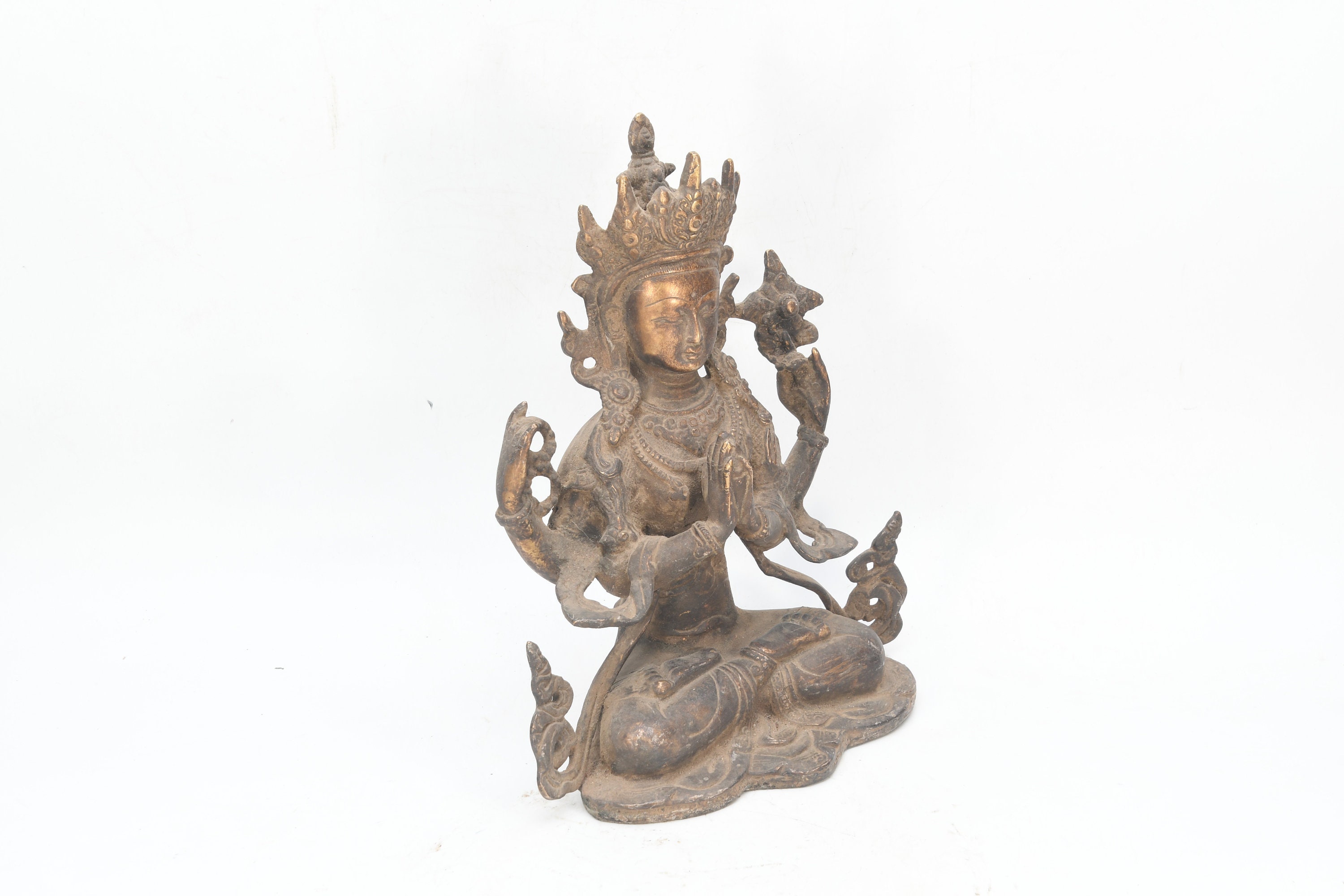 Antique Chenrezig Statue, Himalayan Buddhist Decor, Nepal Handicraft