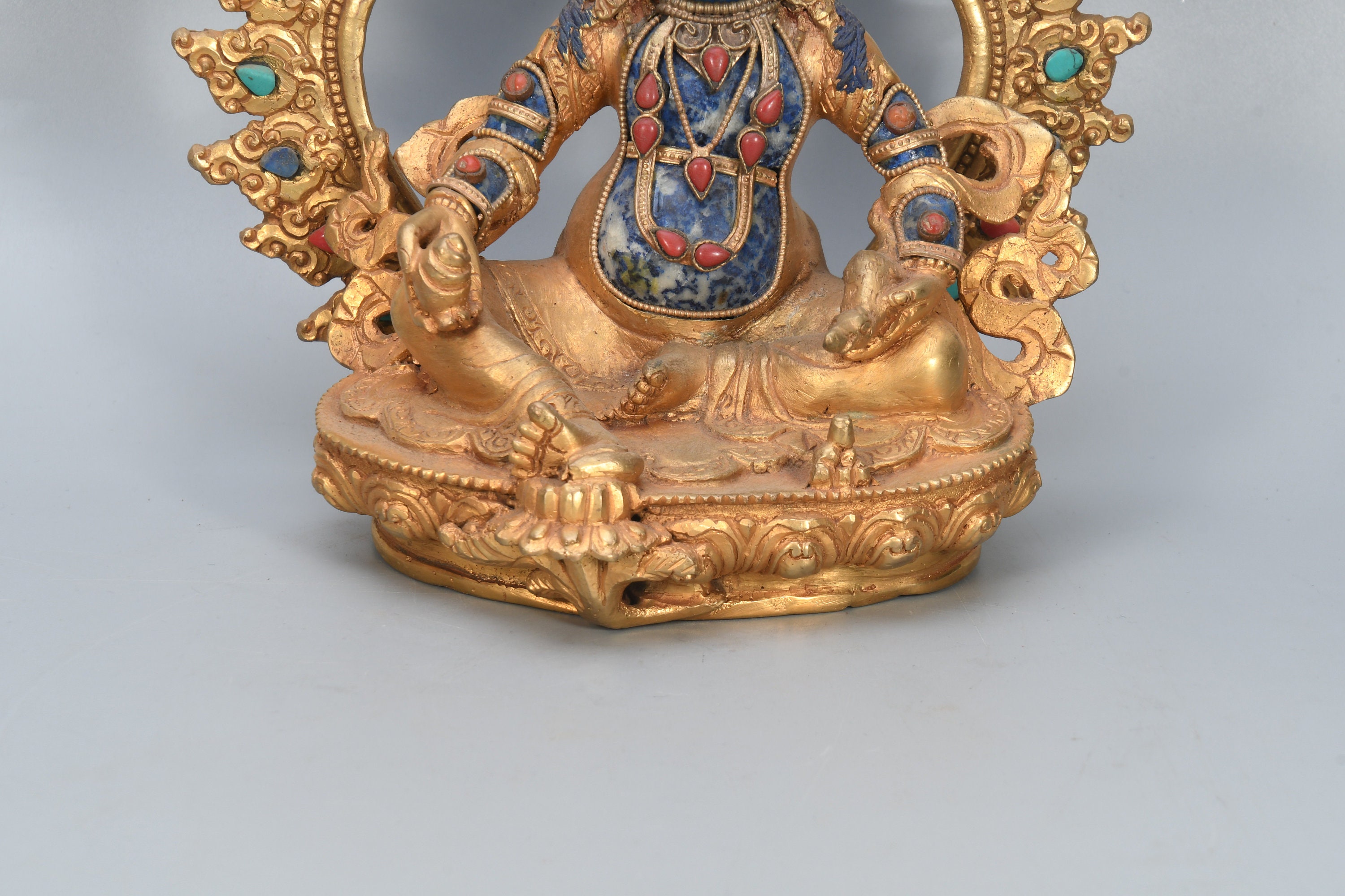 The Yellow Jambhala is considered the most popular and powerful of the Wealth Gods. He is the emanation of Buddha Ratnasambhava. He can remove poverty within the six realms, increasing virtues, life span, and wisdom.