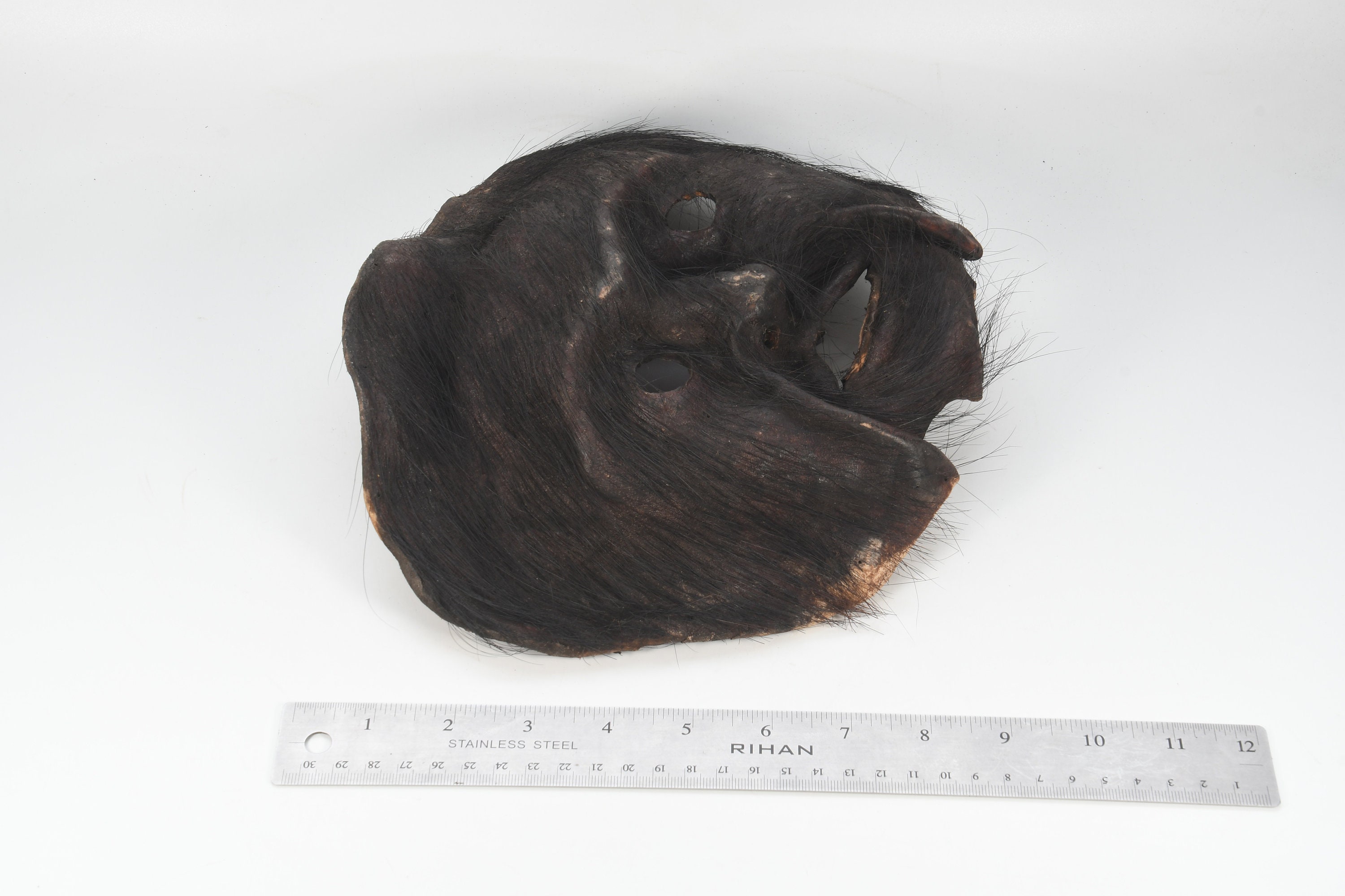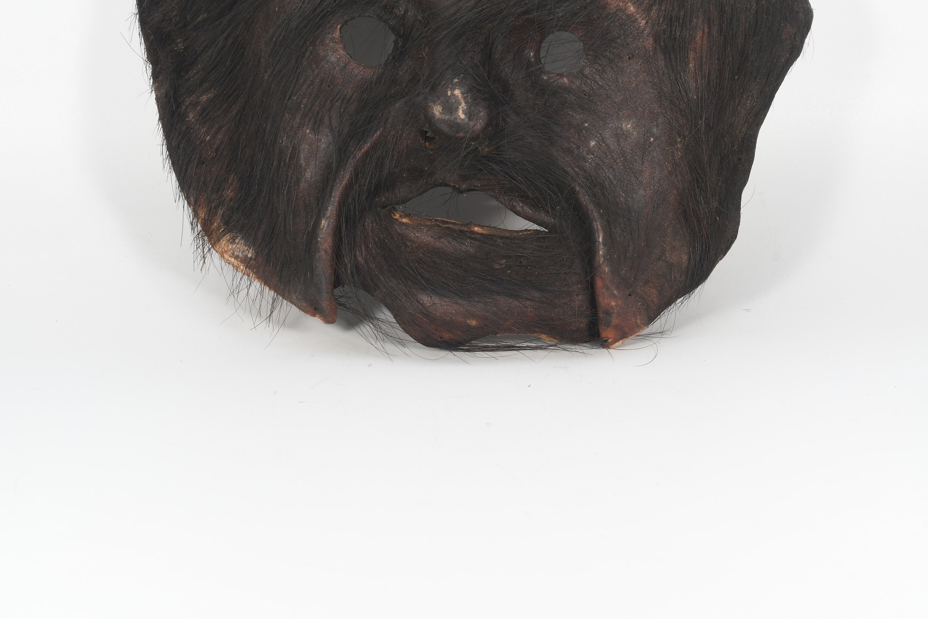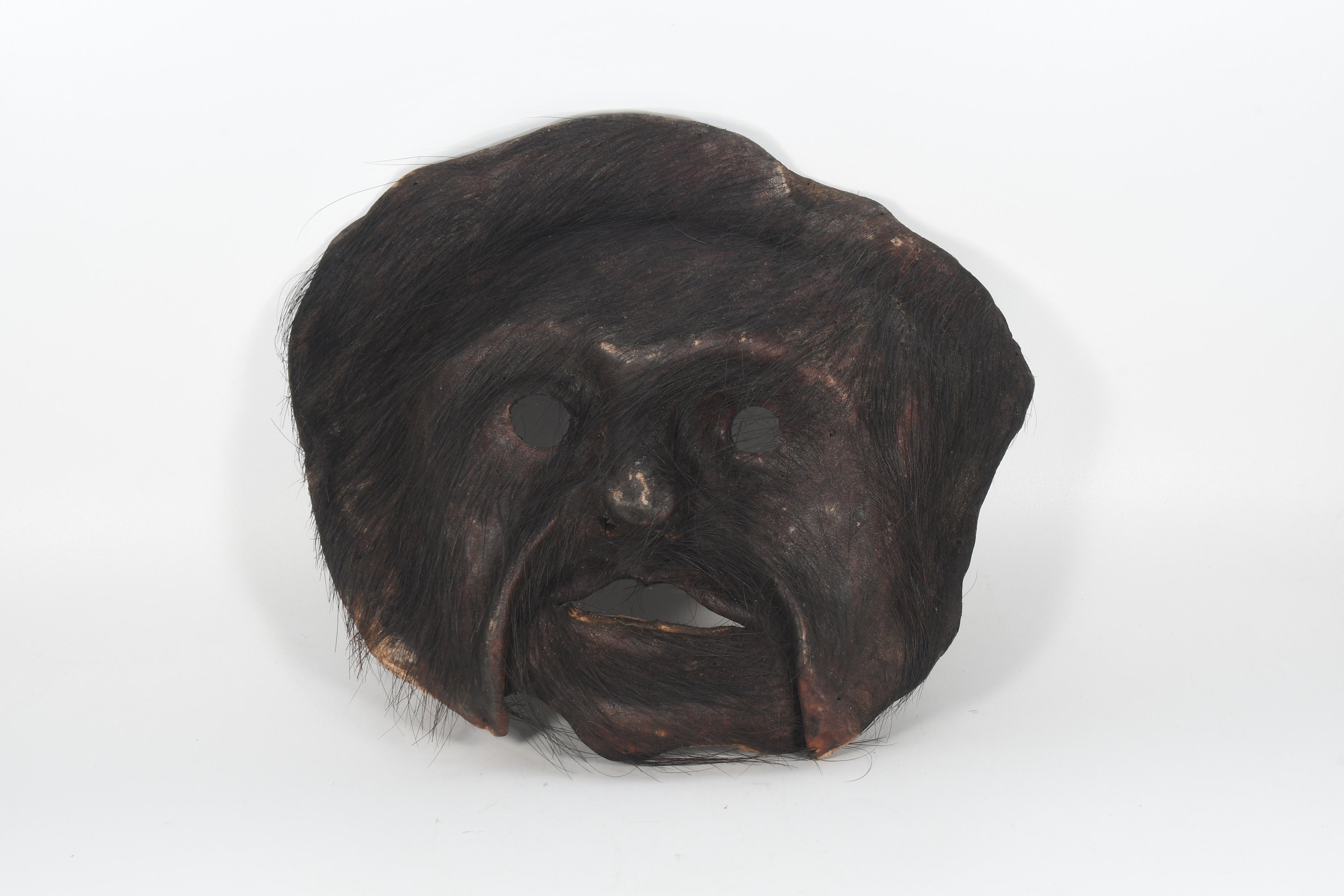 Handmade Antique Leather Haired Himalayan Tribal Shaman Home Decorative Vintage Leather Mask Nepal