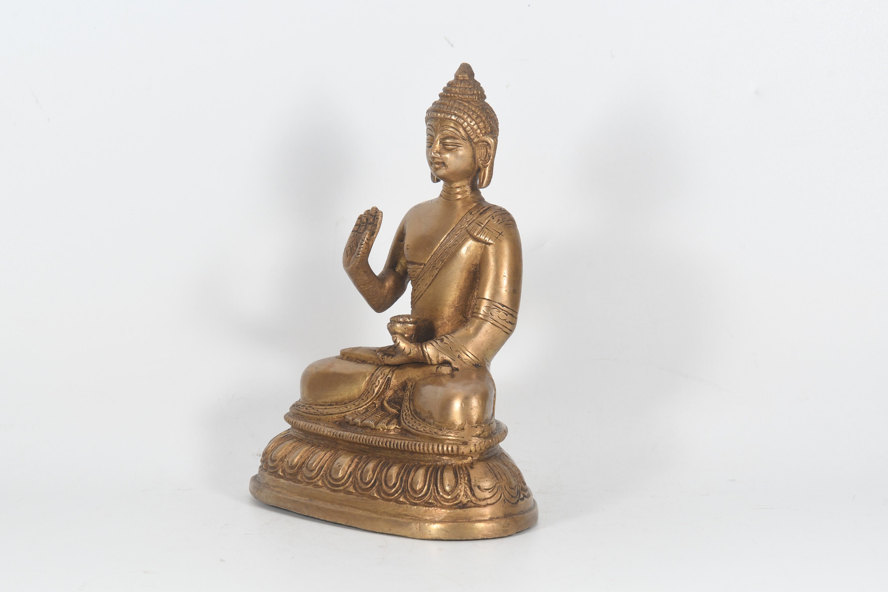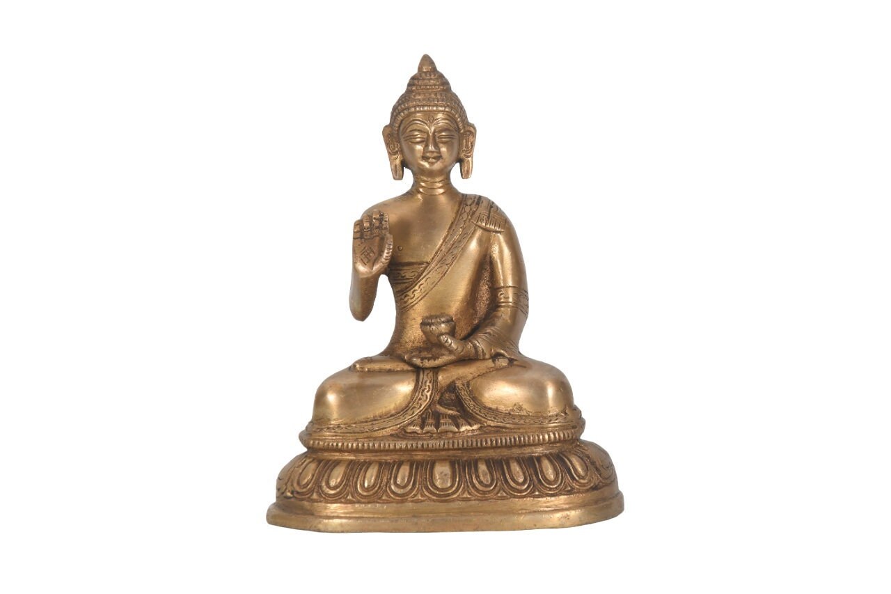 Antique Handmade Brass Shakyamuni Buddha Statue – Nepal Buddhism Figurine