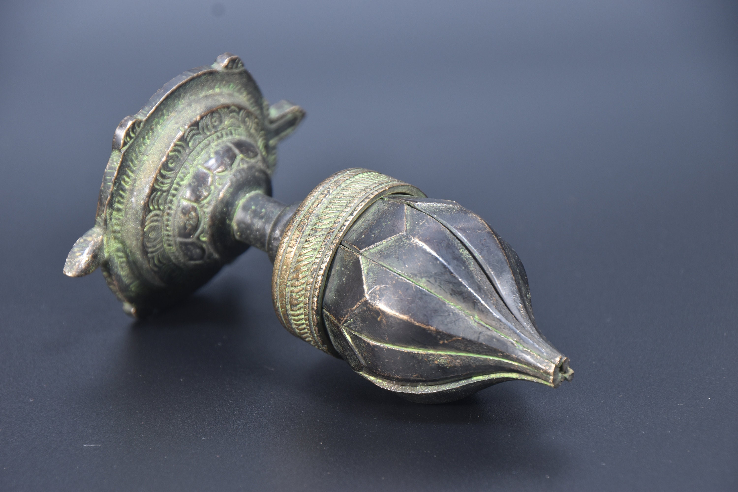 Handcarved Lotus Metal Diya, Bohemian Candle Holder, Nepal