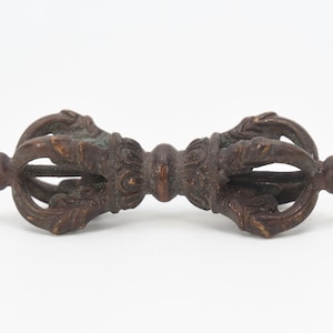 Vajra is a Sanskrit word meaning both thunderbolt and diamond. It is a weapon that is used as a ritual object to symbolize both the properties of a diamond (indestructibility) and a thunderbolt (irresistible force). The five-pronged vajra is the most commonly seen vajra.
