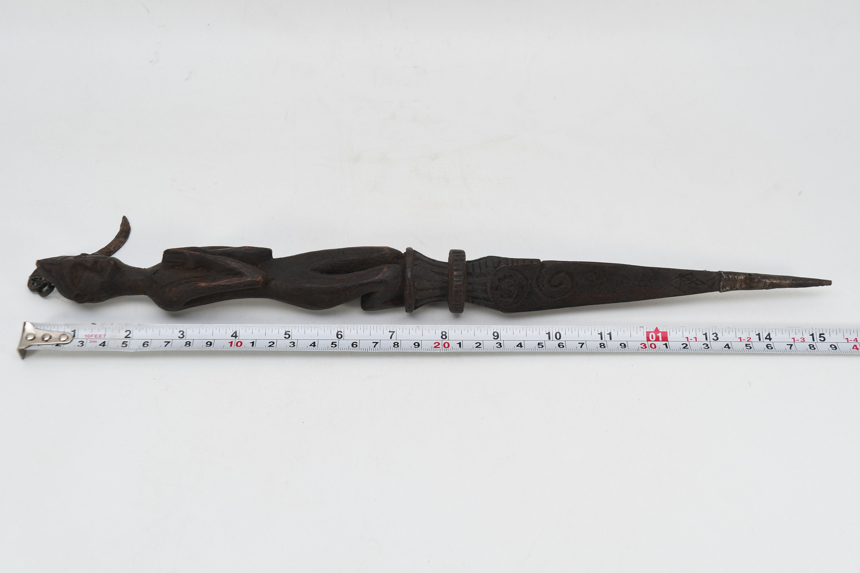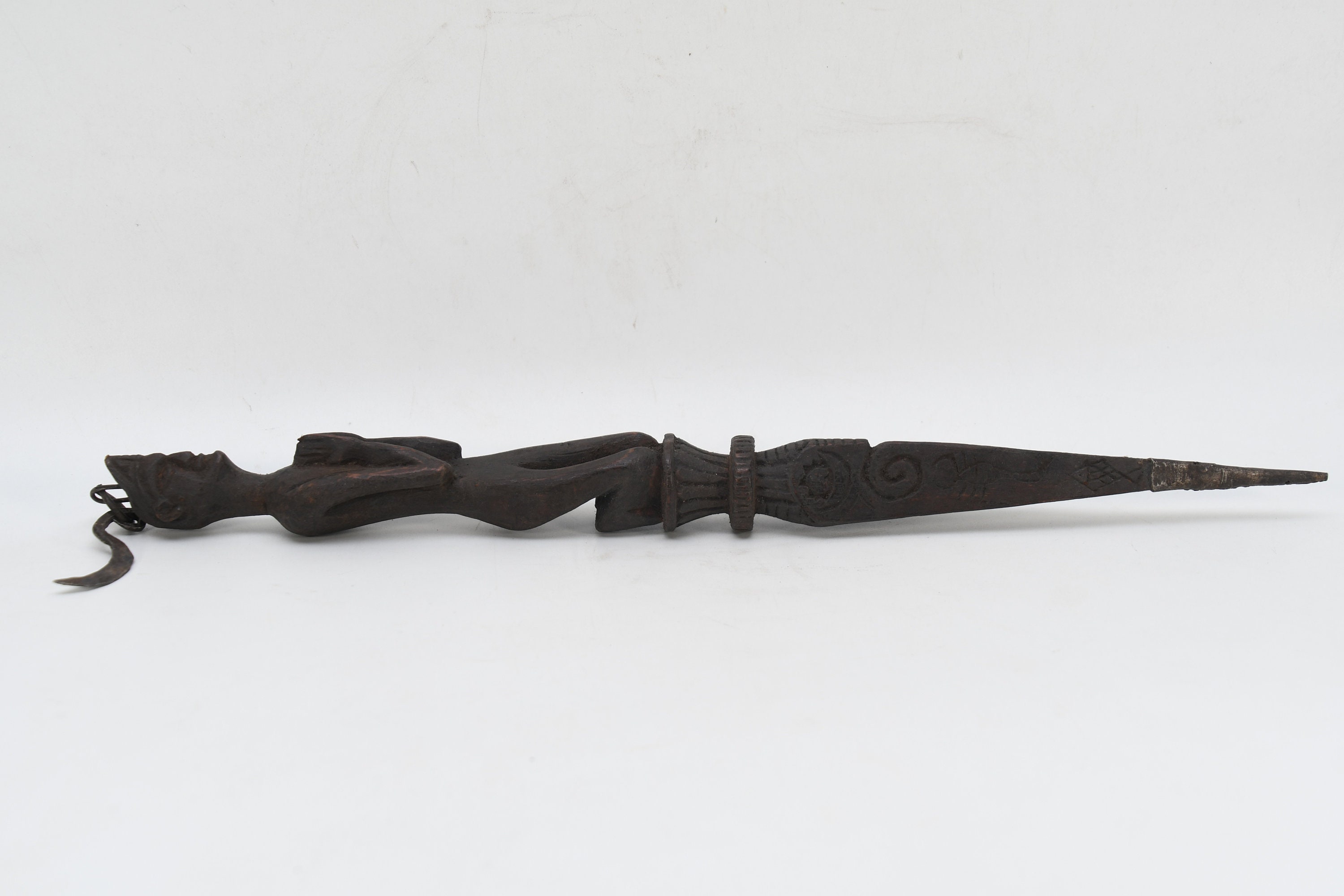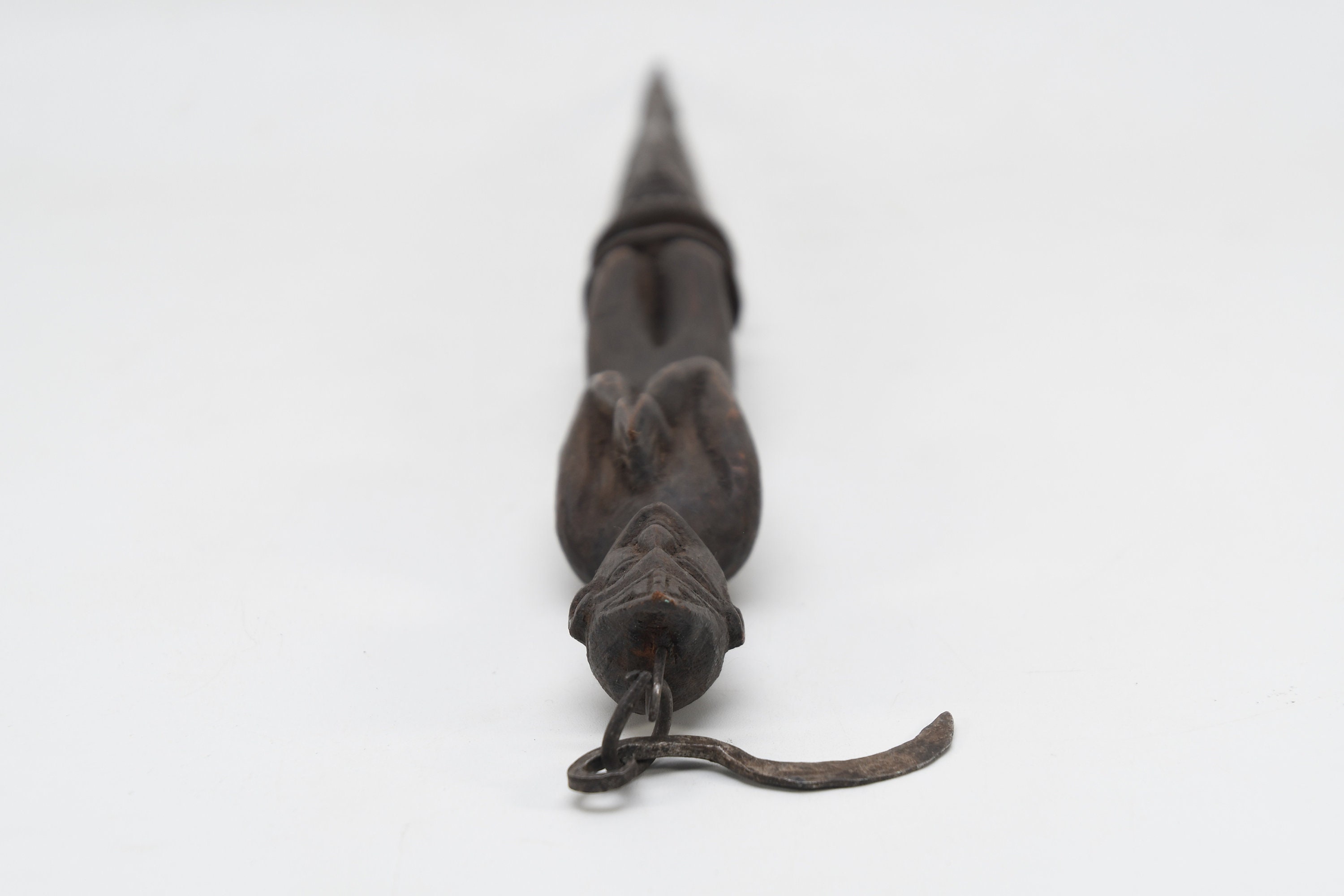 The phurba is also called 'the magic dagger'. 'Phur' is translated from the Sanskrit 'kila' which means peg or nail. The phurba is a three-sided stake that is used in Buddhist rituals.