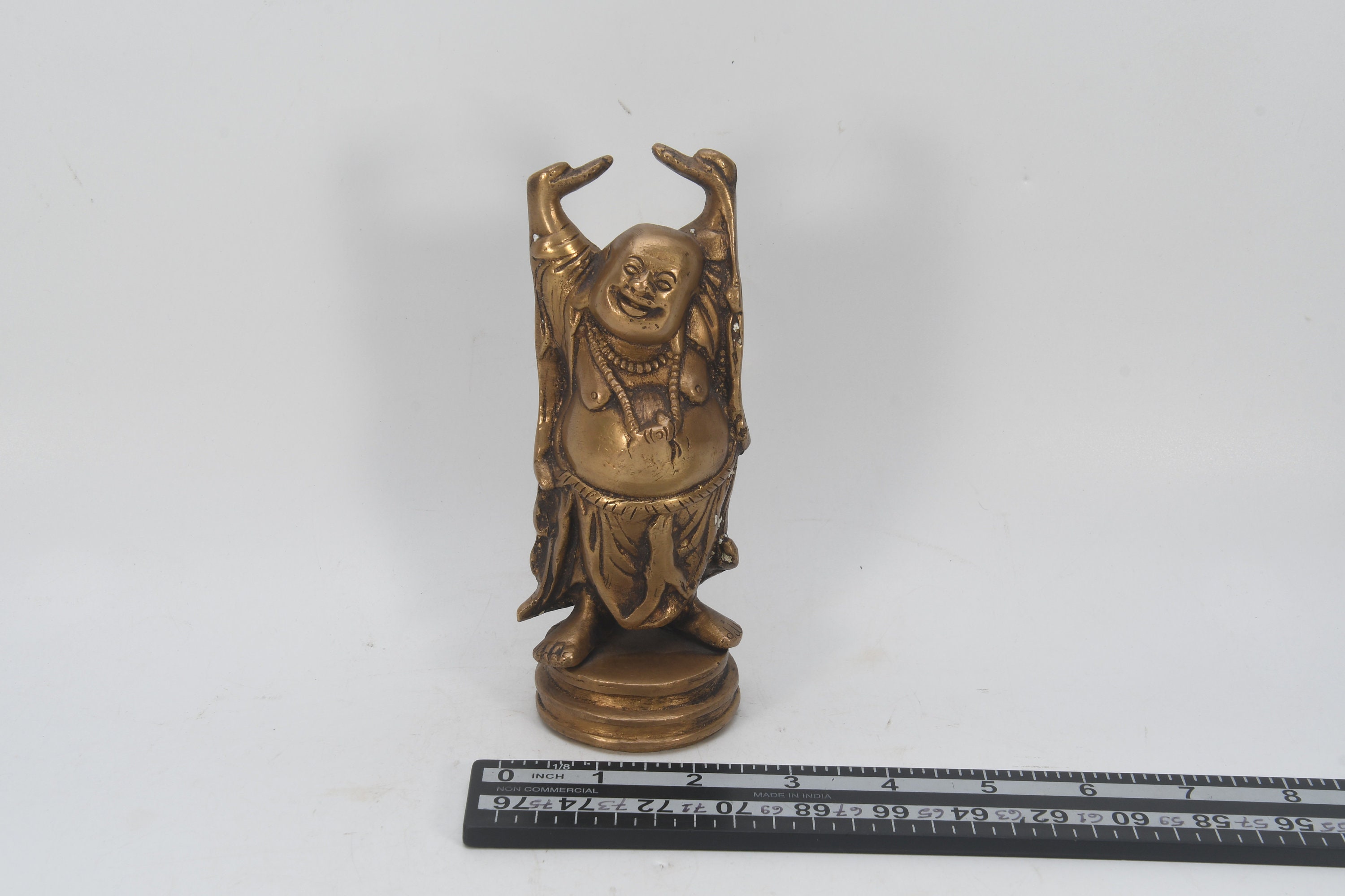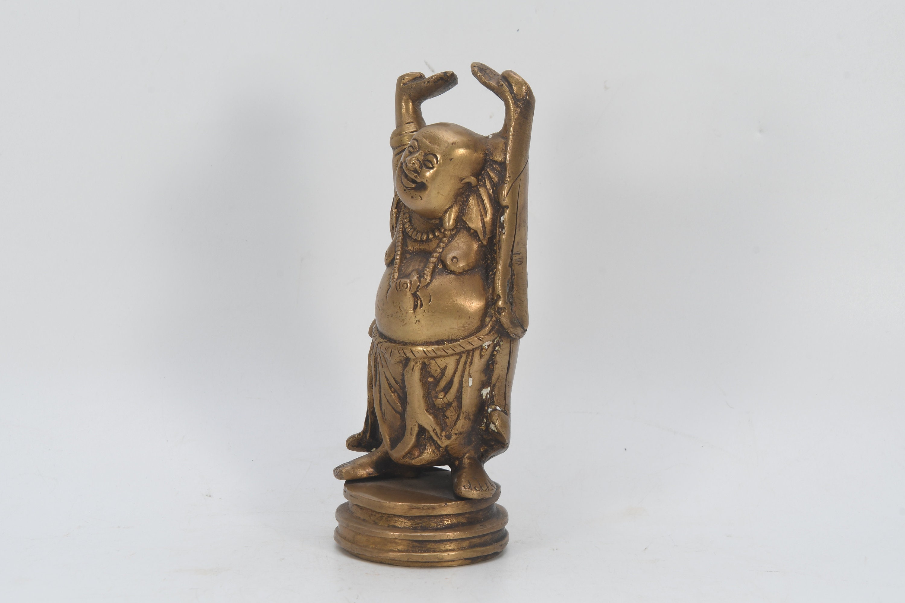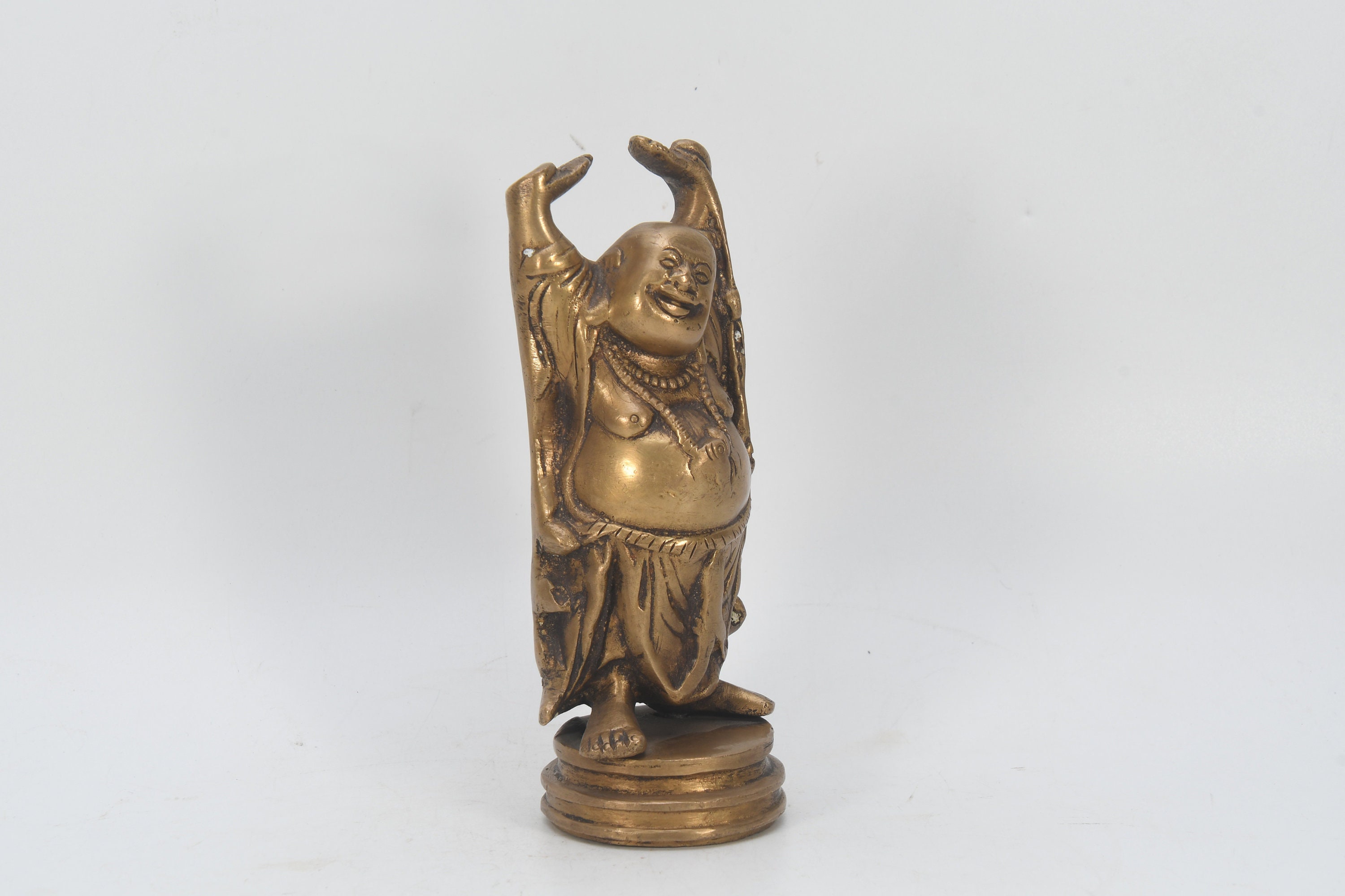 Handcarved Old Chinese Brass Laughing Buddha Statue Vintage Home Decor Nepal