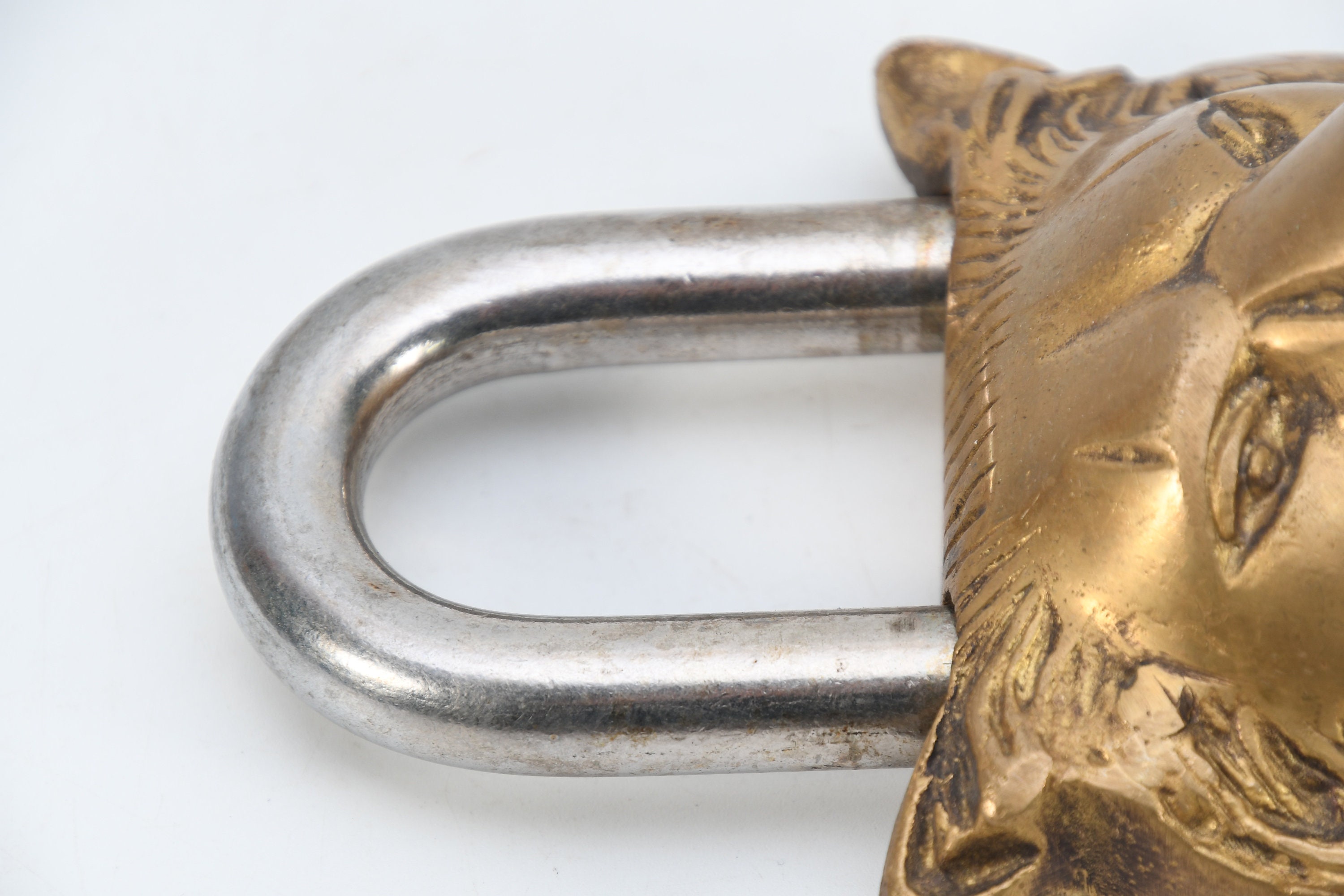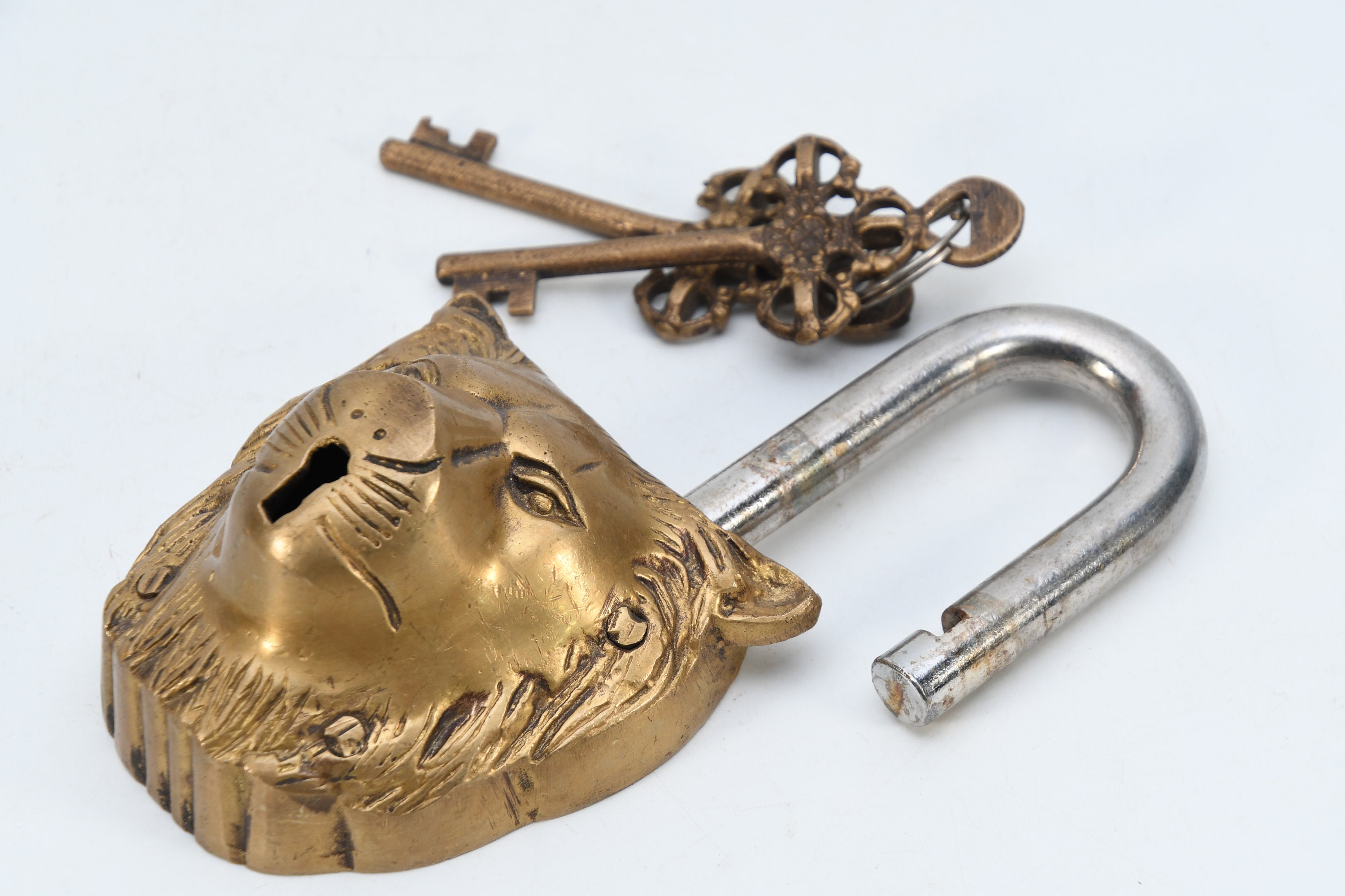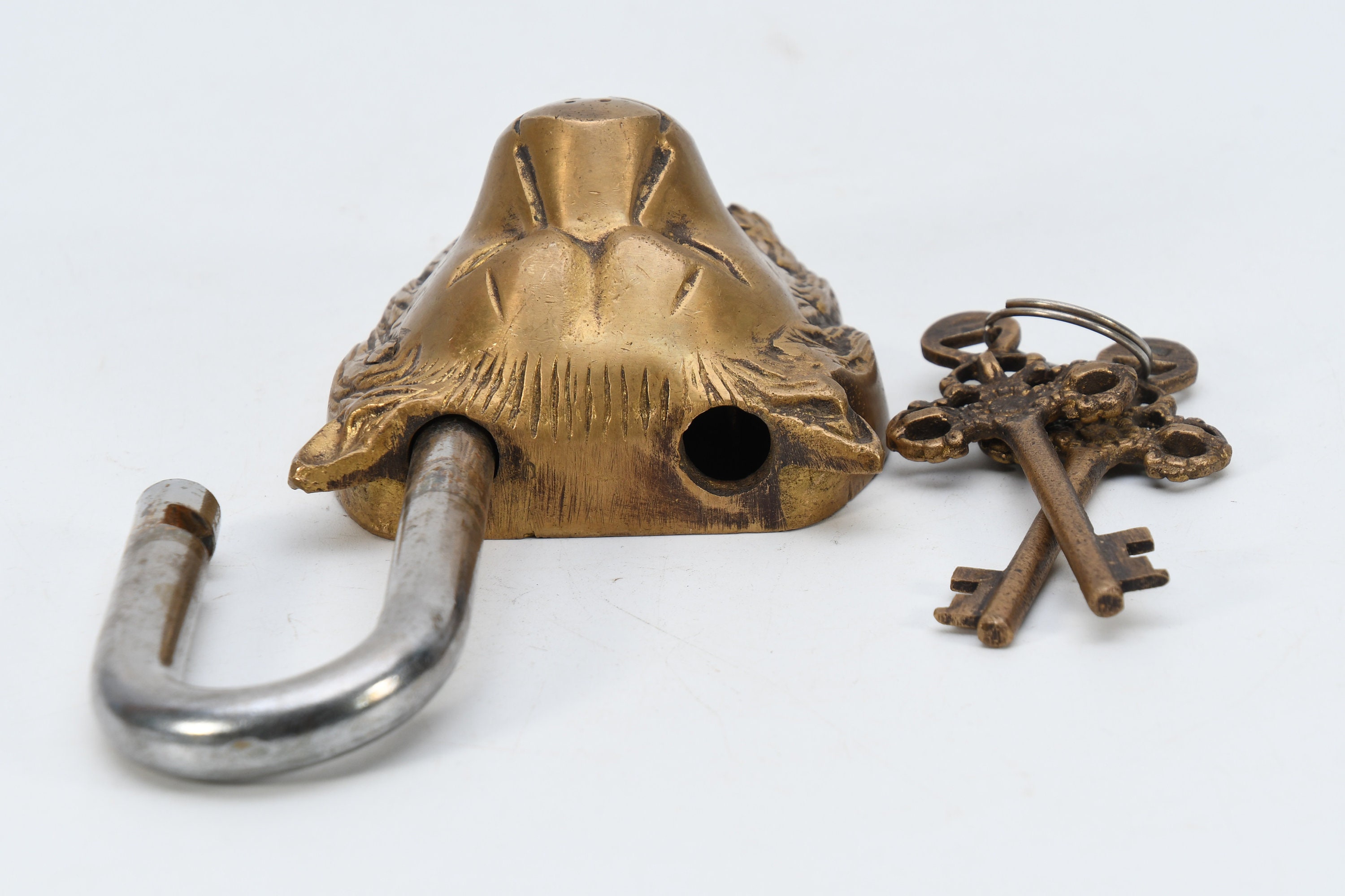 Lion Face Brass Lock with Keys, Vintage Door Decor