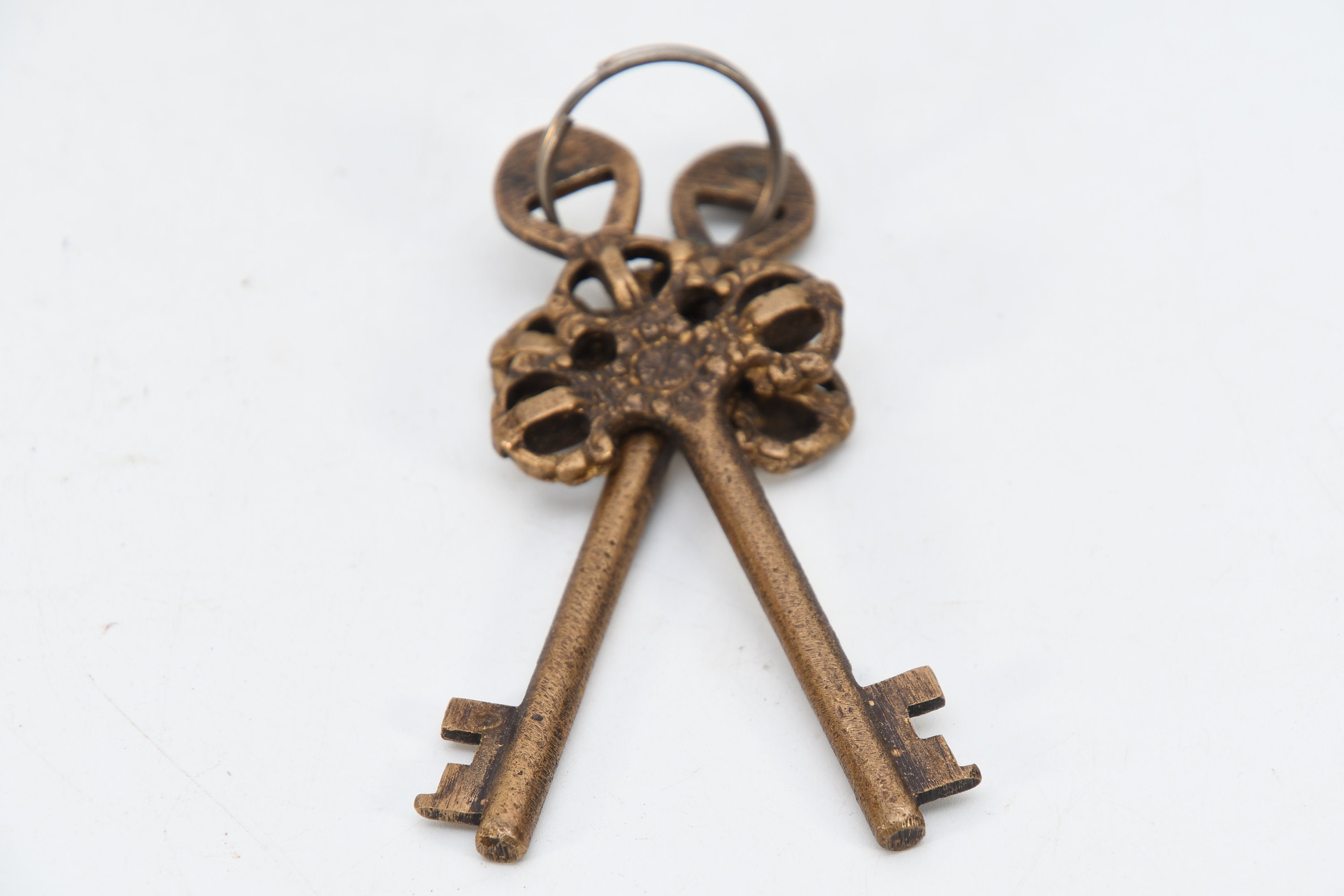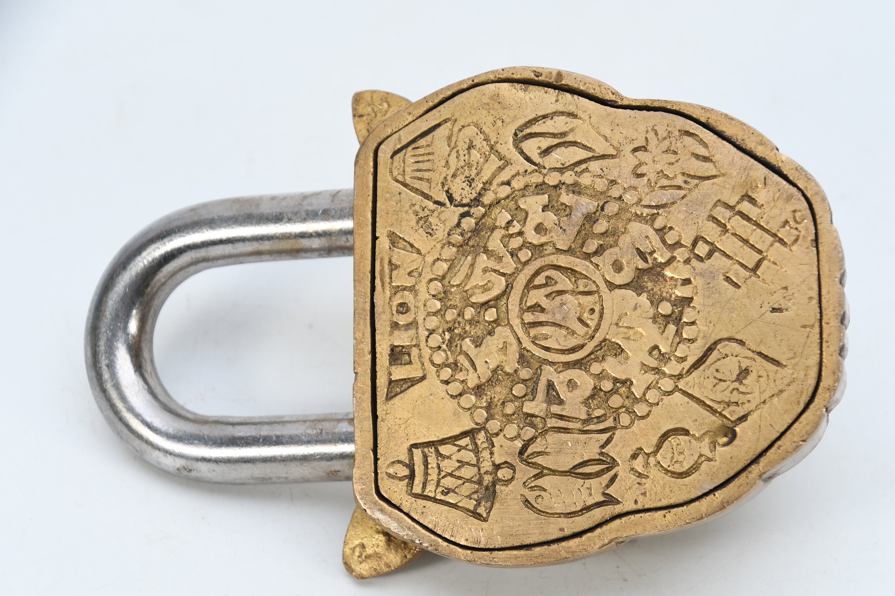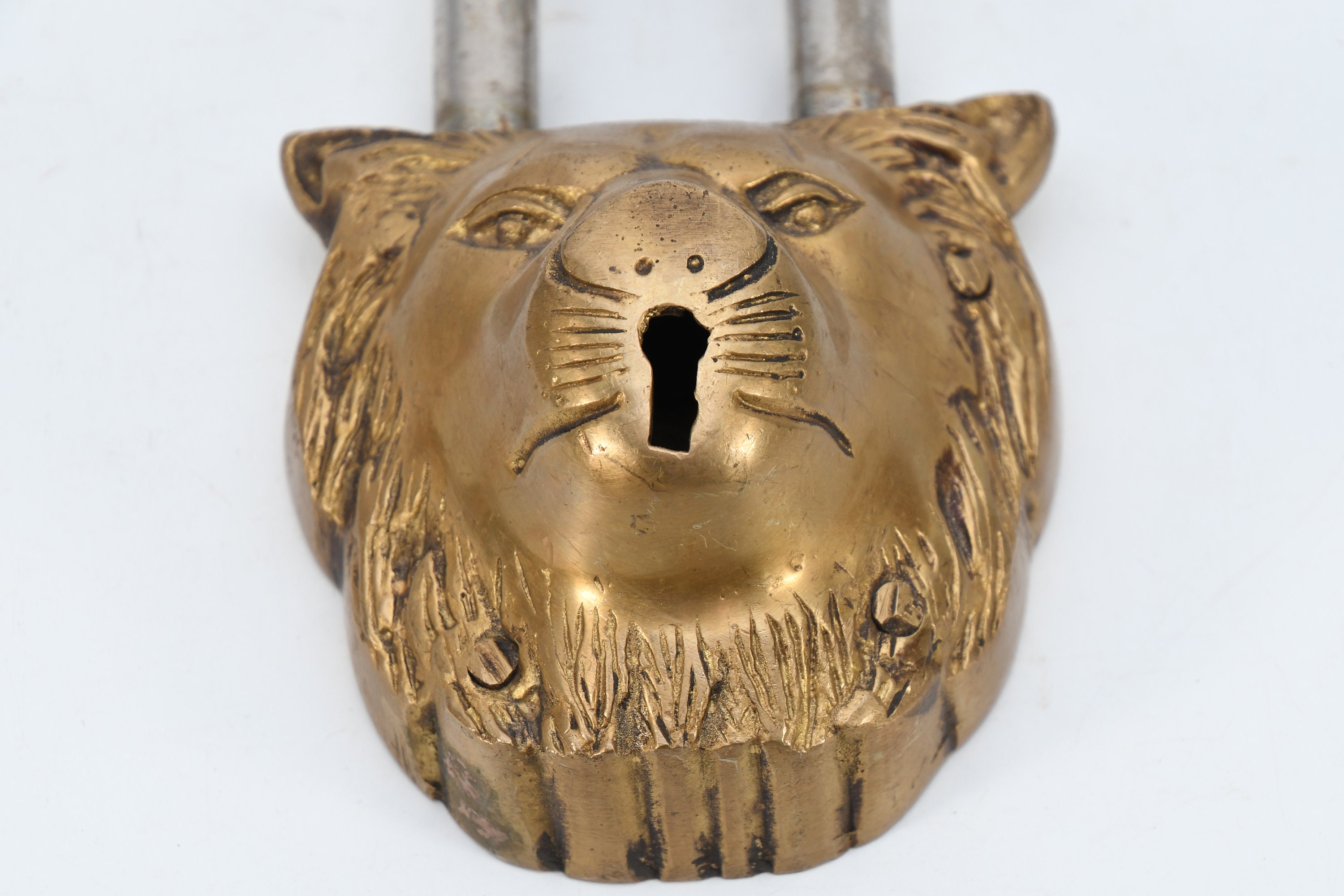 Lion Face Brass Lock with Keys, Vintage Door Decor